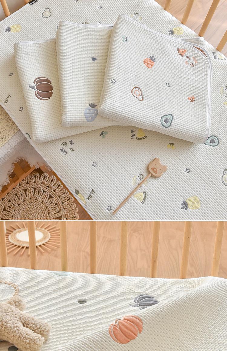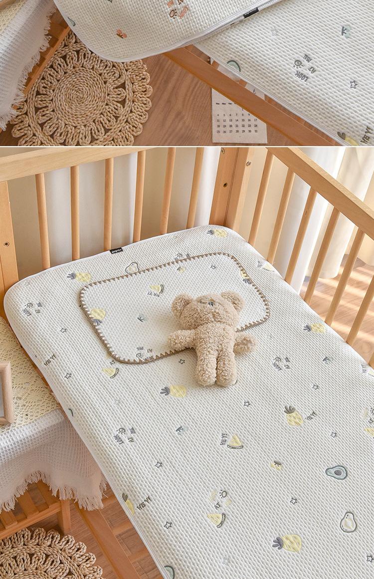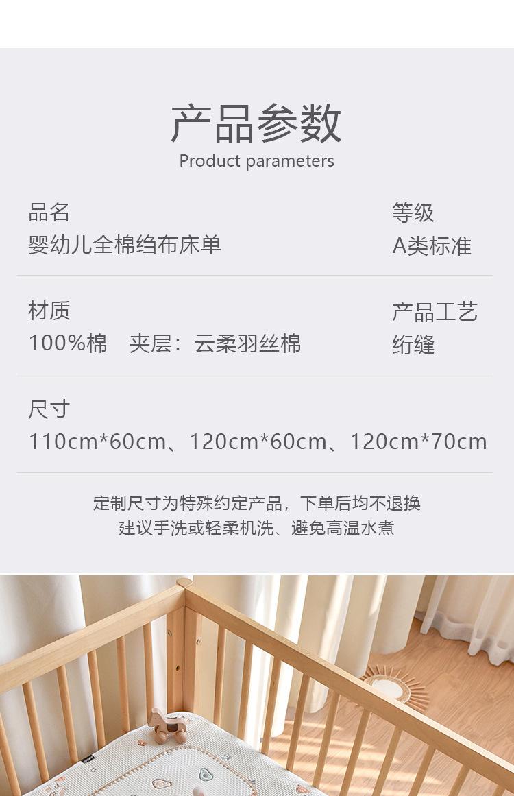 Sábanas de crepé de algodón para bebés y niños pequeños La tela de crepé de algodón seleccionada se siente suave. El exquisito jacquard tiene una sensación general muy texturizada y se puede utilizar en todas las estaciones. Con banda elástica antideslizante, puede enrollarse libremente sin moverse Tejido de algodón, confección en jacquard, suave y transpirable, calidad clase A