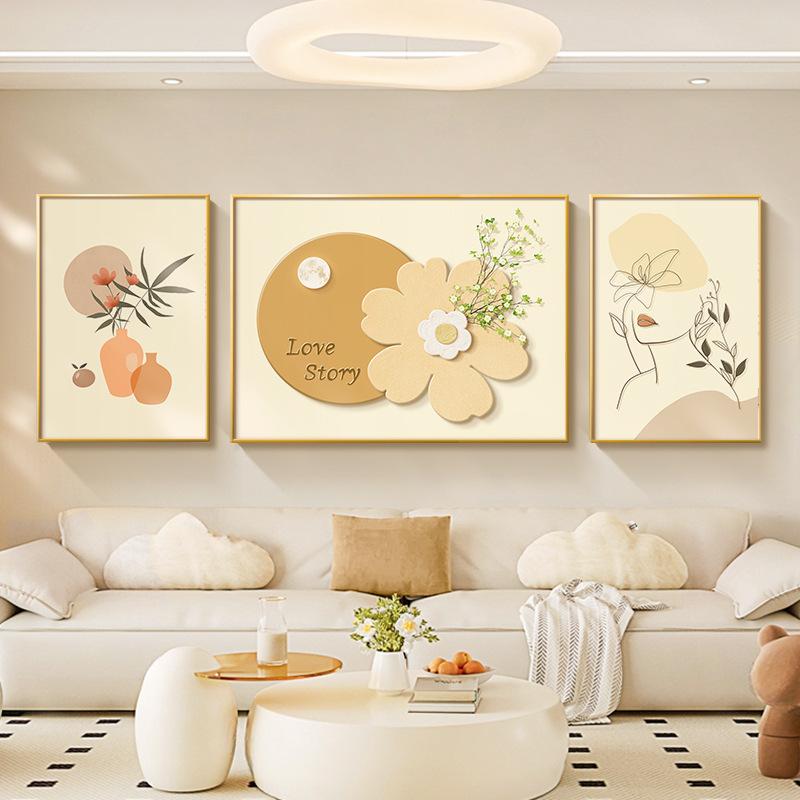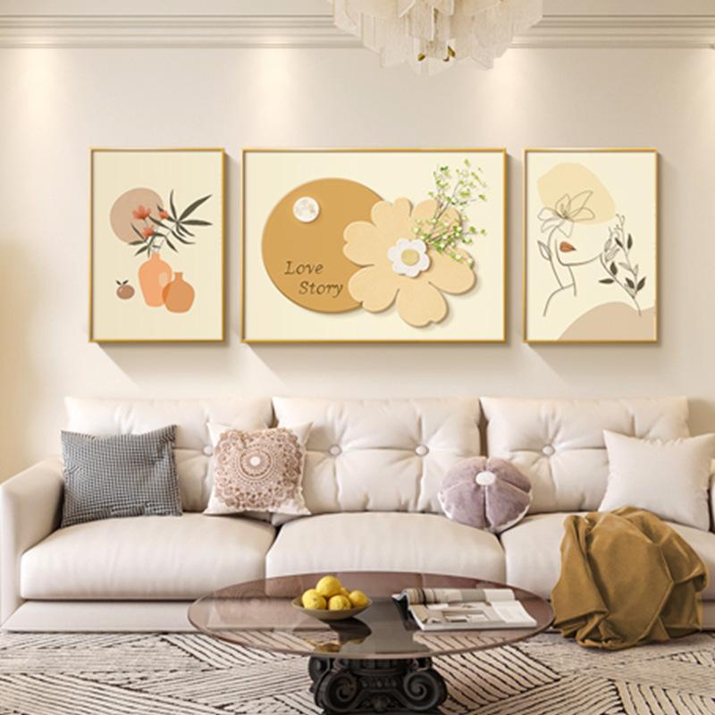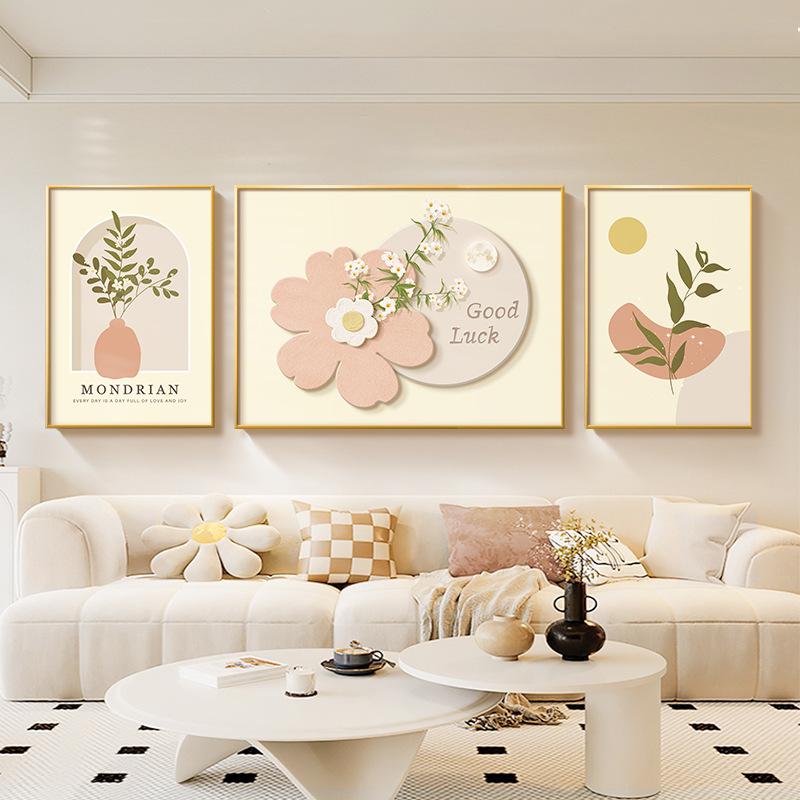 Pintura decorativa nórdica para sala de estar, estilo crema, fondo de sofá fresco, pintura colgante de pared, mural triple de planta verde simple moderna