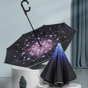 Paraguas invertido de color creativo con mango largo para coche de tercera generación tipo C manos libres paraguas invertido de doble capa al por mayor personalizado paraguas publicitario