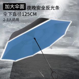Paraguas automático inverso con tira reflectante de seguridad creativa, paraguas para coche, tipo C de manos libres, paraguas recto de negocios para hombre al por mayor