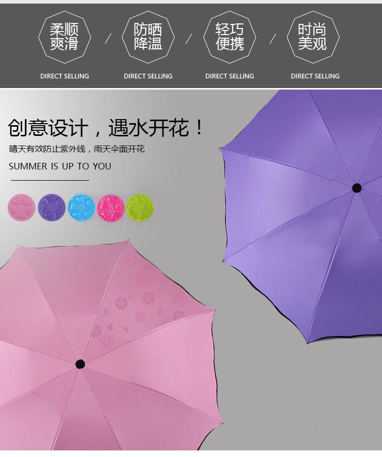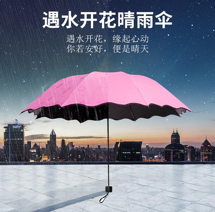Paraguas creativo de tres pliegues con flores acuáticas, paraguas de bolsillo para niñas, paraguas plegable de vinilo antiultravioleta, paraguas al por mayor