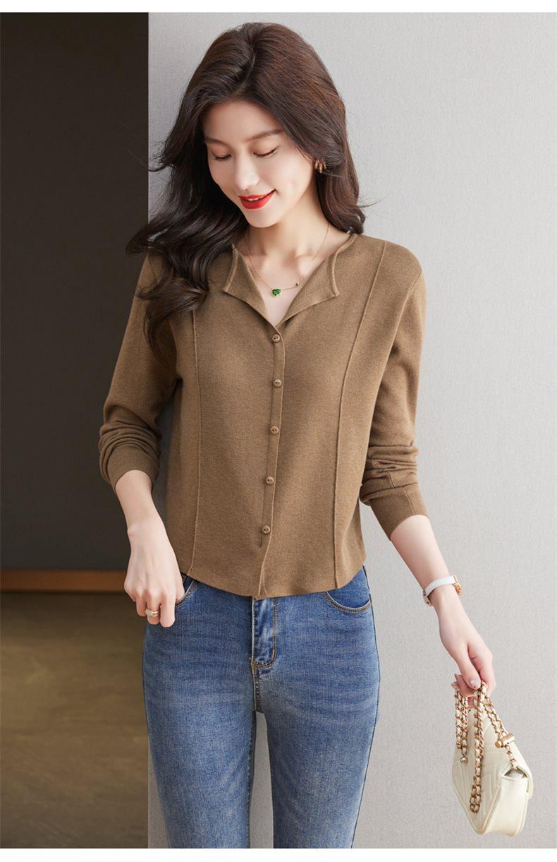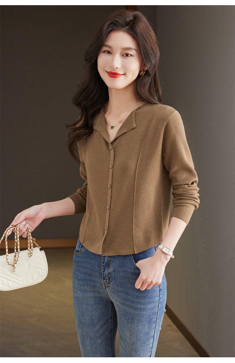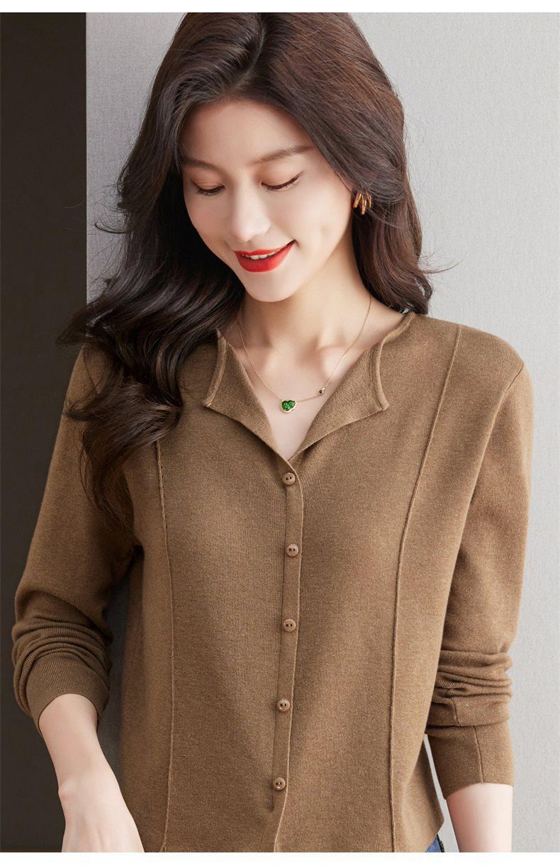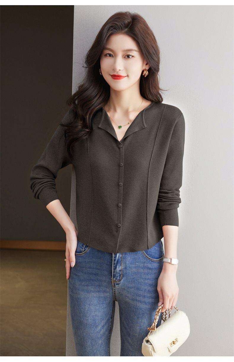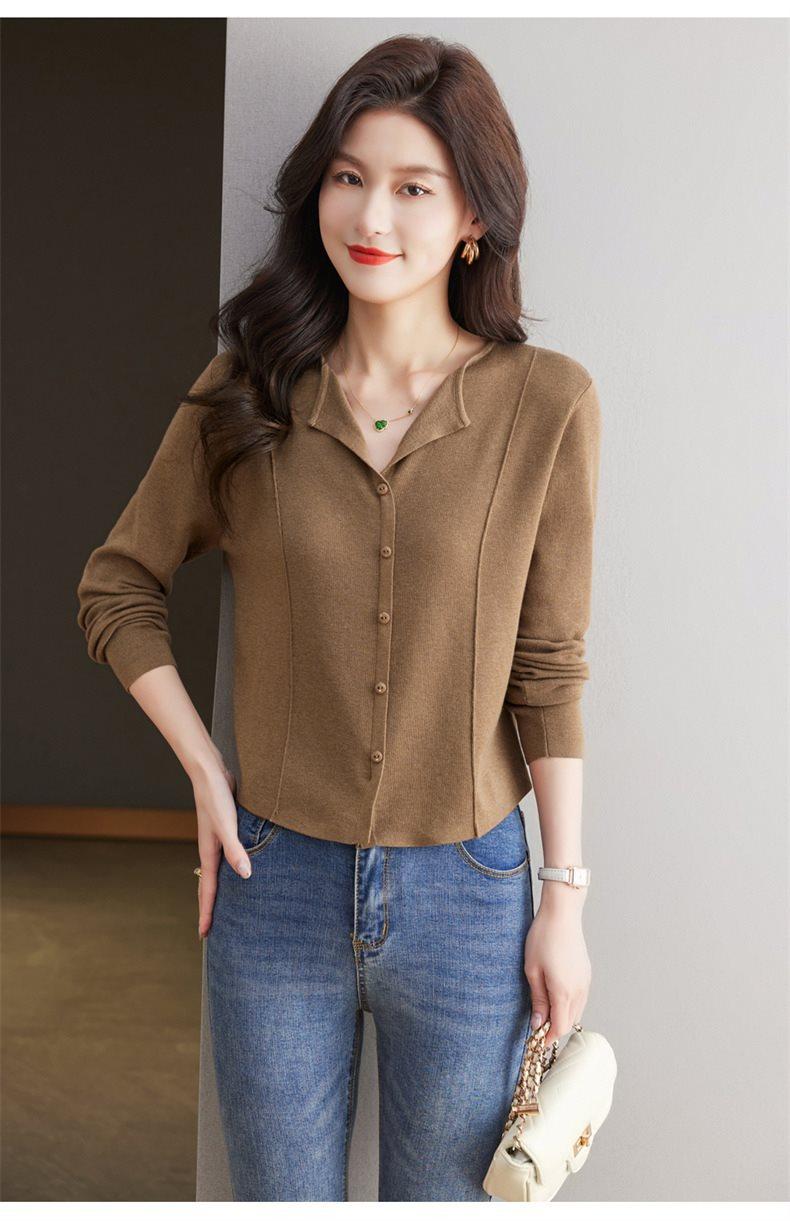 Suéter tipo cárdigan corto de lana fina con solapa para mujer, suéter tipo jersey holgado de primavera y otoño, top básico que combina con todo.