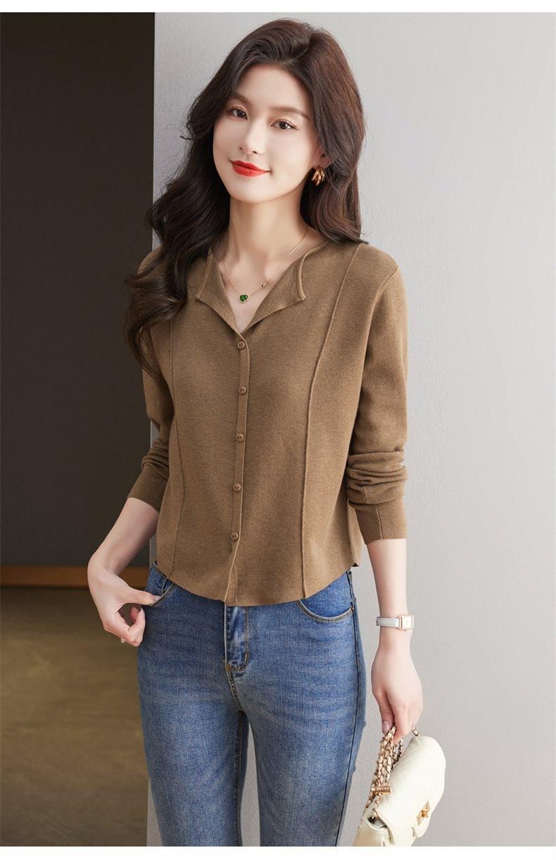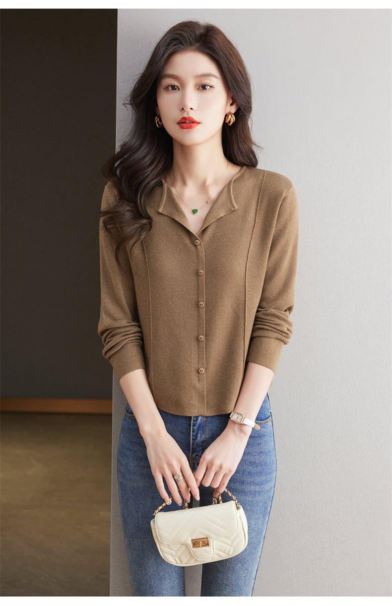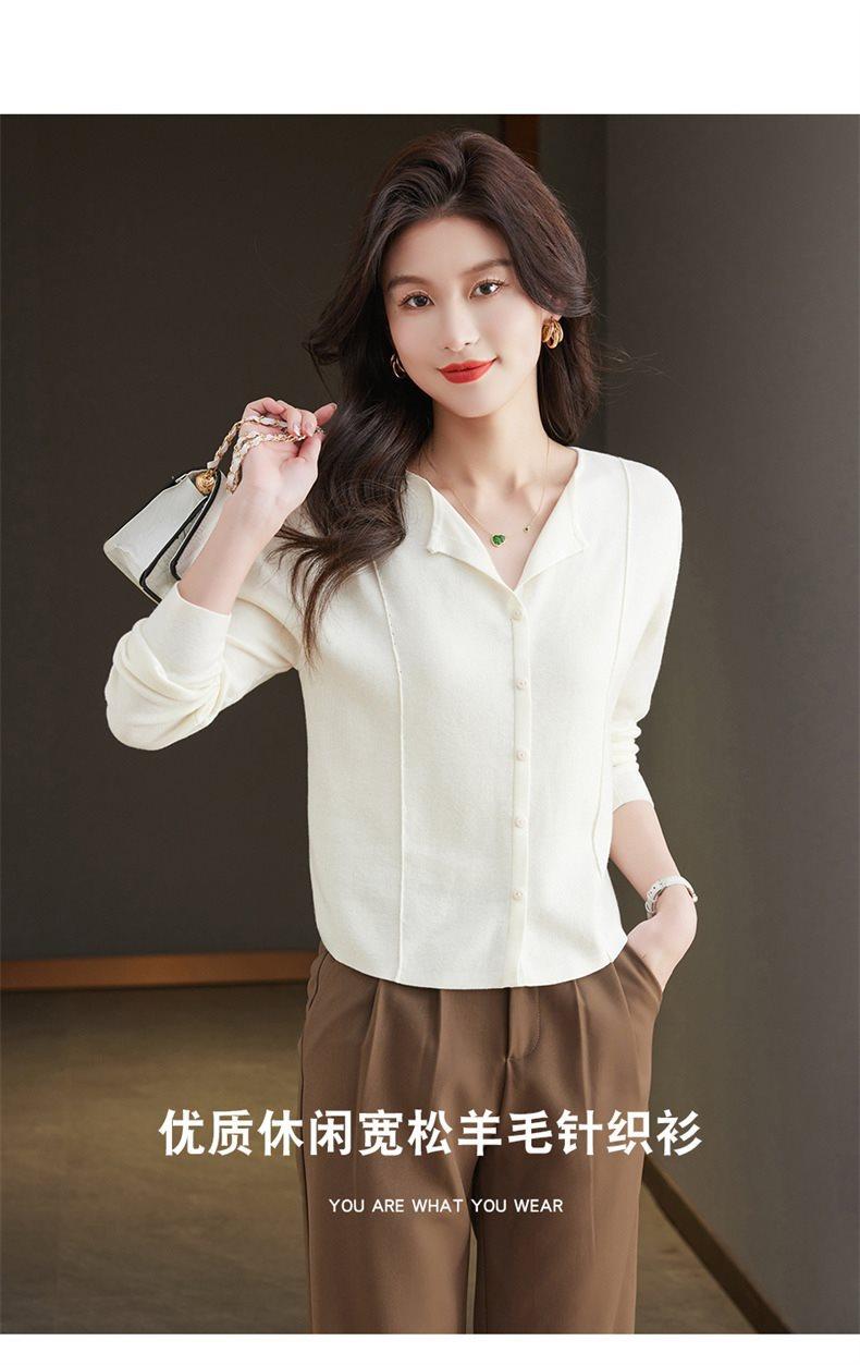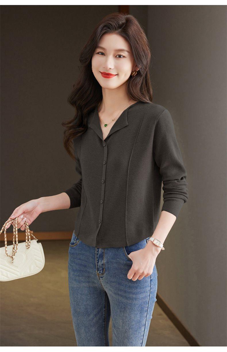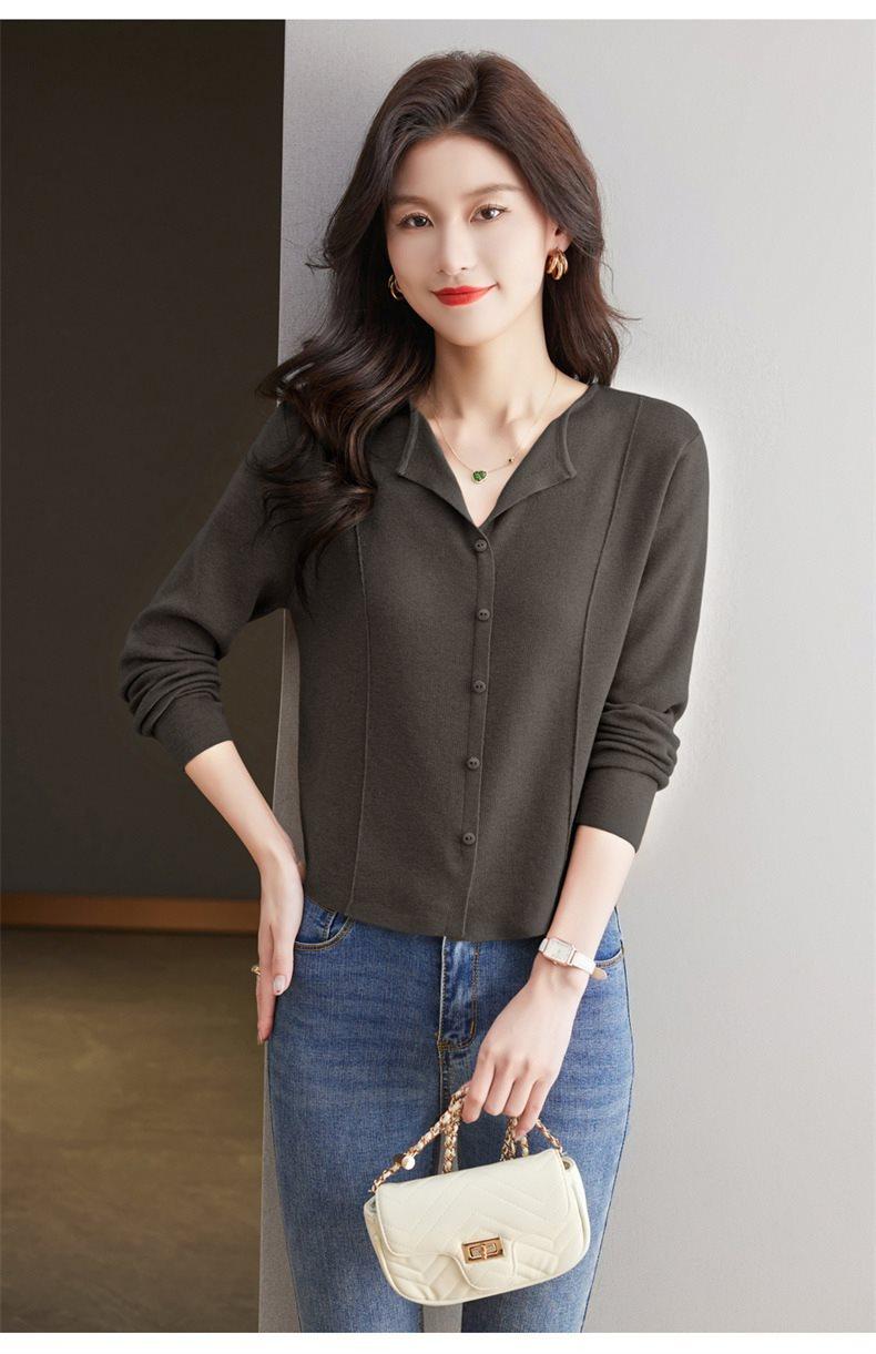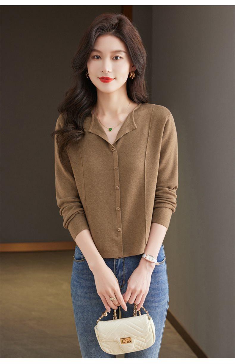 Suéter tipo cárdigan corto de lana fina con solapa para mujer, suéter tipo jersey holgado de primavera y otoño, top básico que combina con todo.