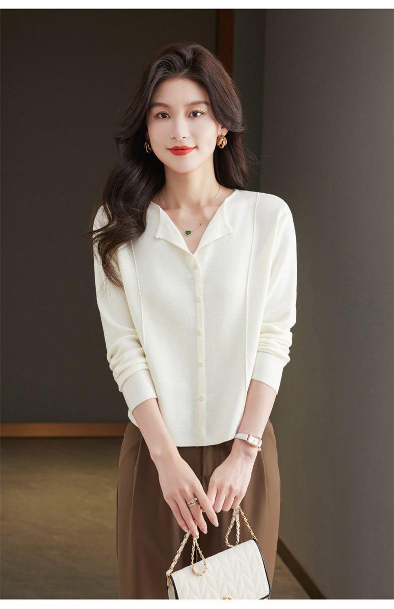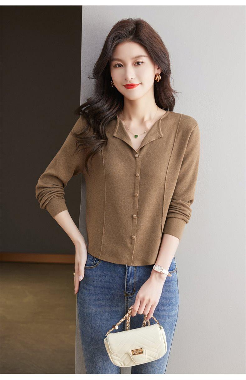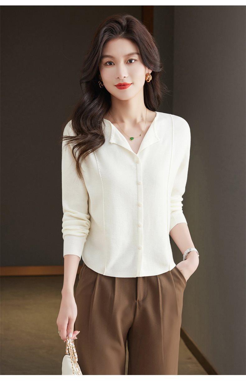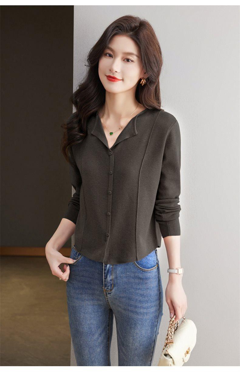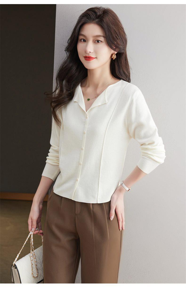Suéter tipo cárdigan corto de lana fina con solapa para mujer, suéter tipo jersey holgado de primavera y otoño, top básico que combina con todo.
