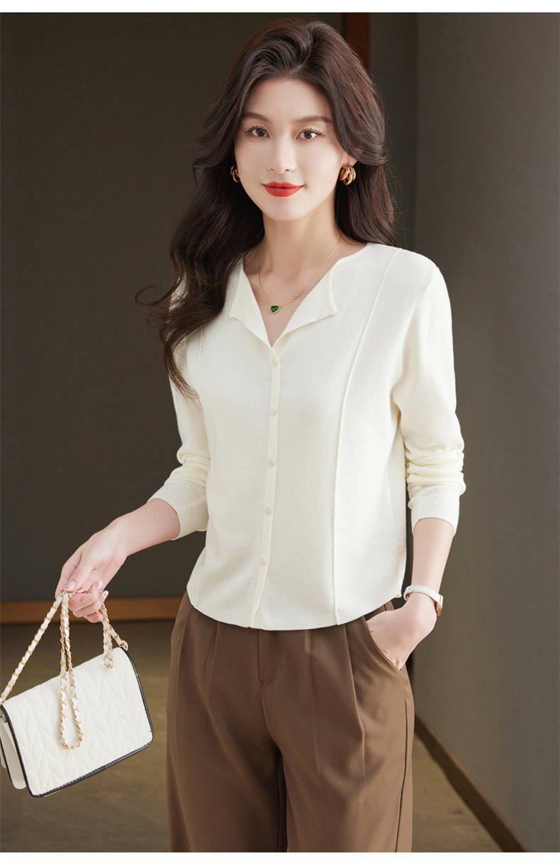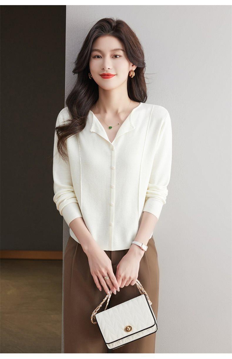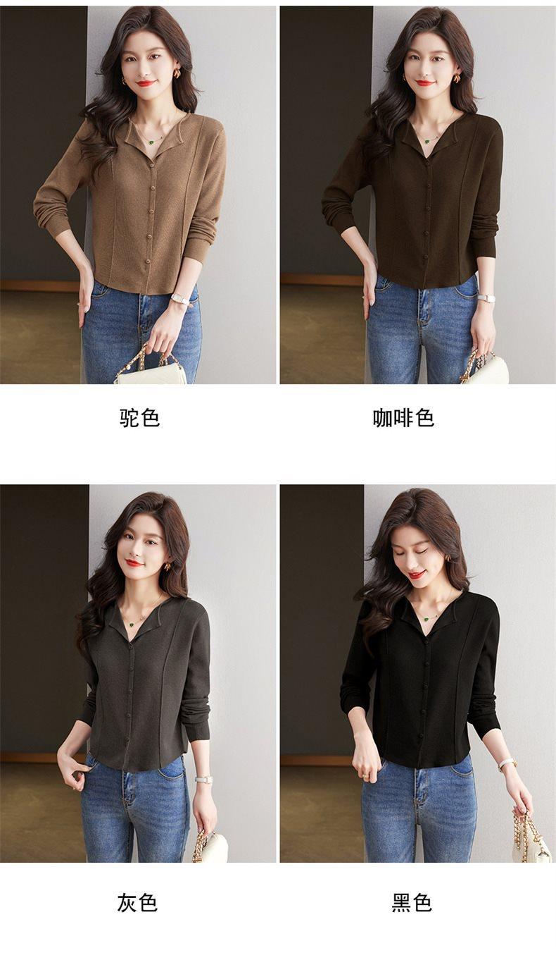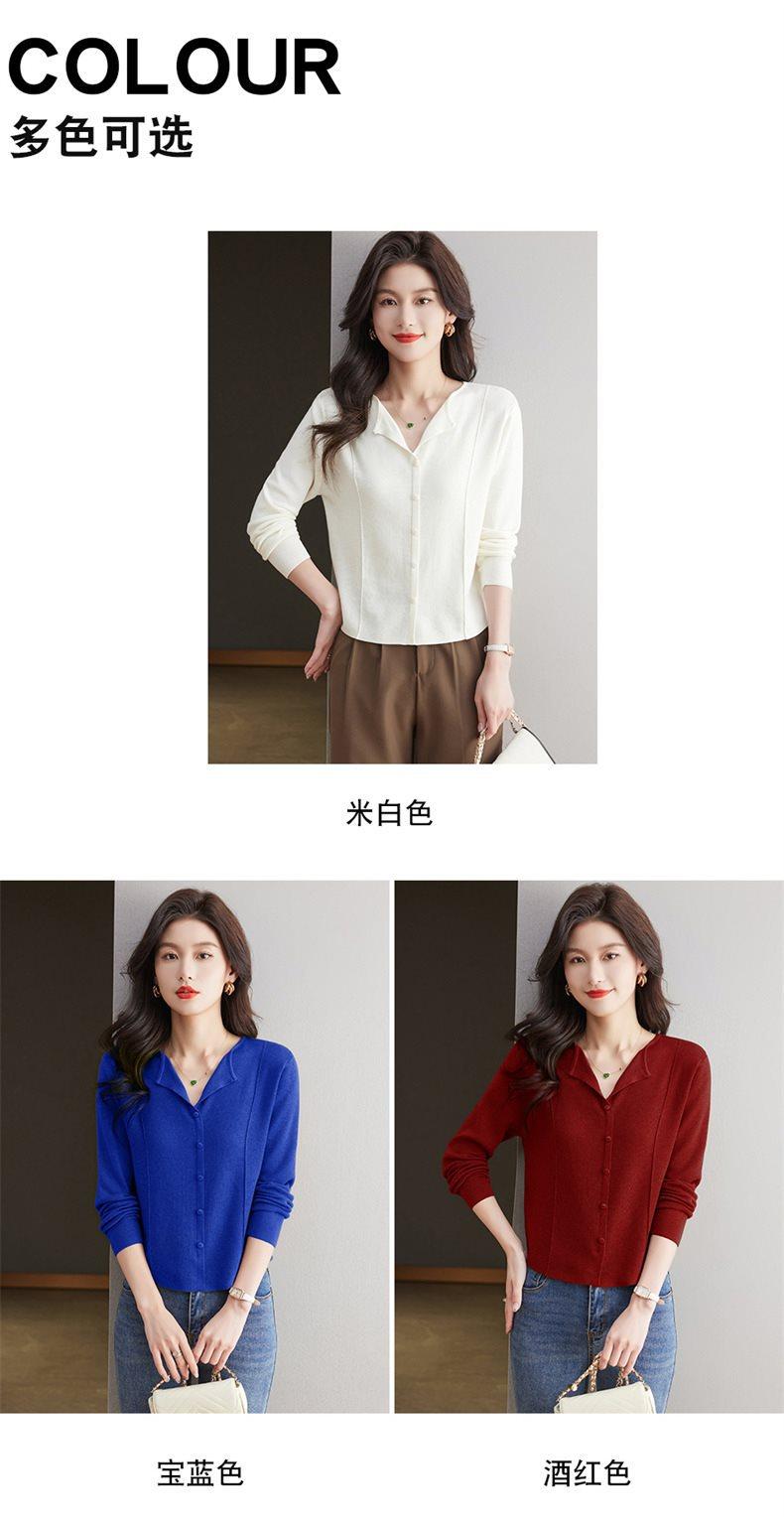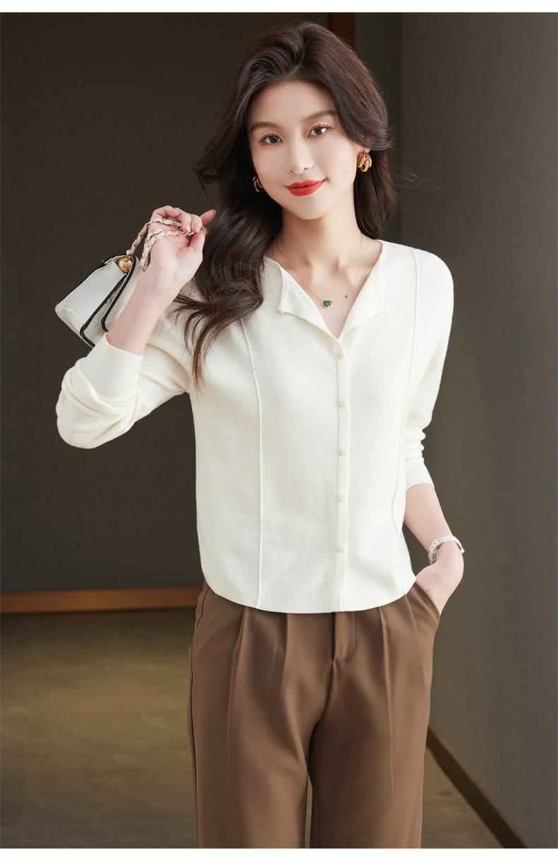 Suéter tipo cárdigan corto de lana fina con solapa para mujer, suéter tipo jersey holgado de primavera y otoño, top básico que combina con todo.