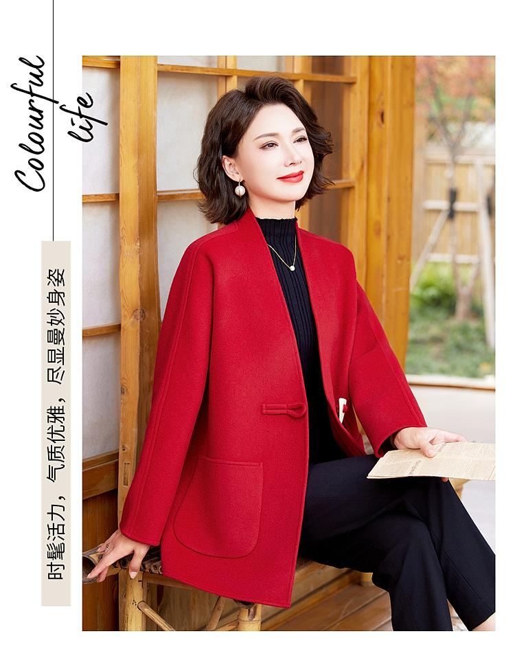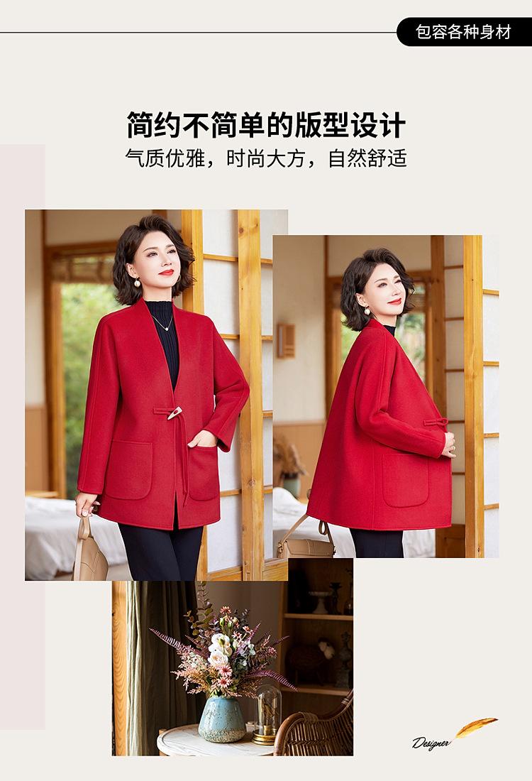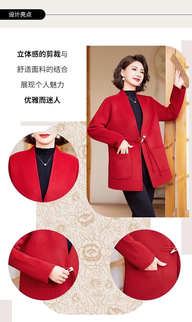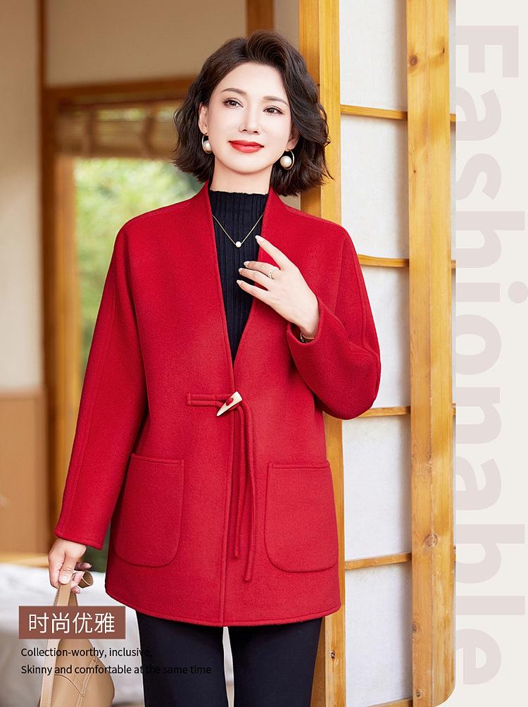 Abrigo de Lana de Otoño para Madre Estilo Noble Occidental 2024 Nuevo Abrigo de Lana Rojo de Primavera y Otoño para Mujeres de Mediana Edad y Mayores