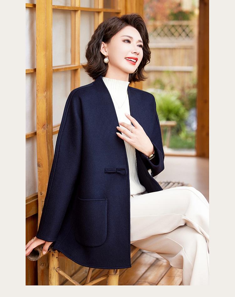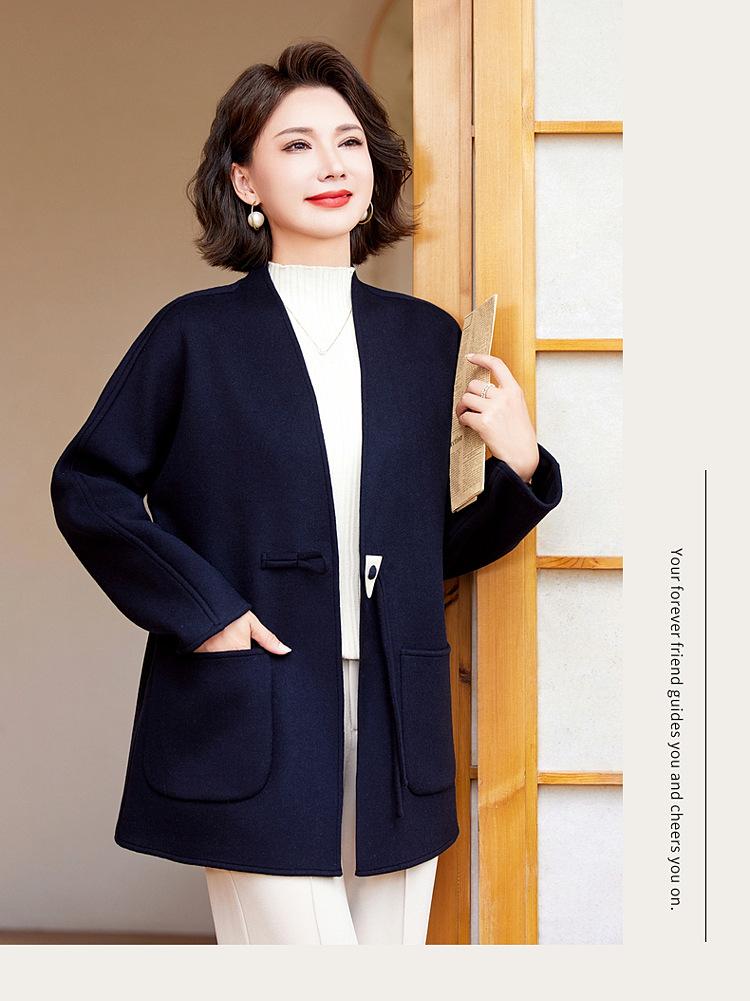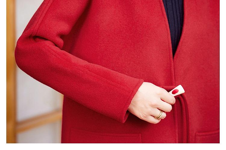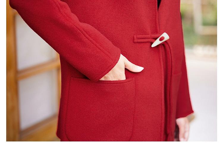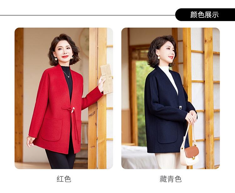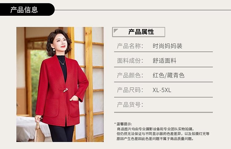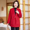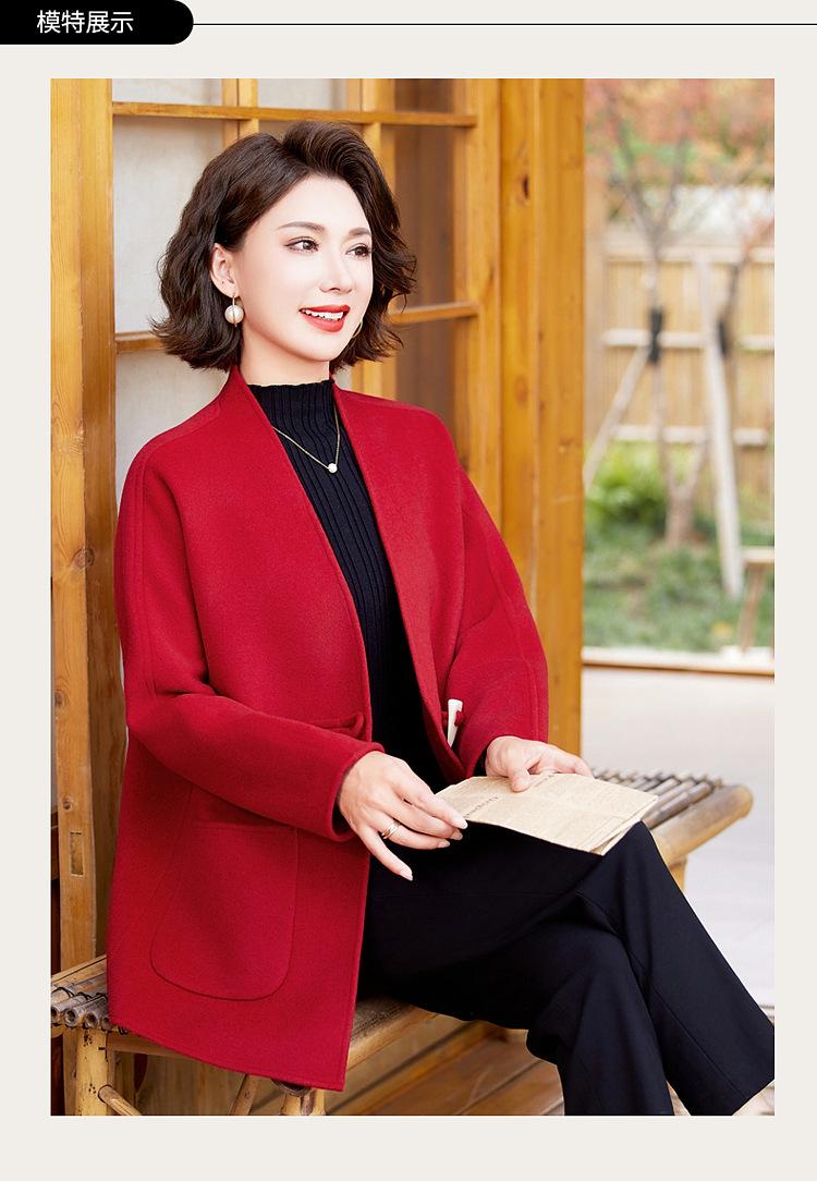 Abrigo de Lana de Otoño para Madre Estilo Noble Occidental 2024 Nuevo Abrigo de Lana Rojo de Primavera y Otoño para Mujeres de Mediana Edad y Mayores