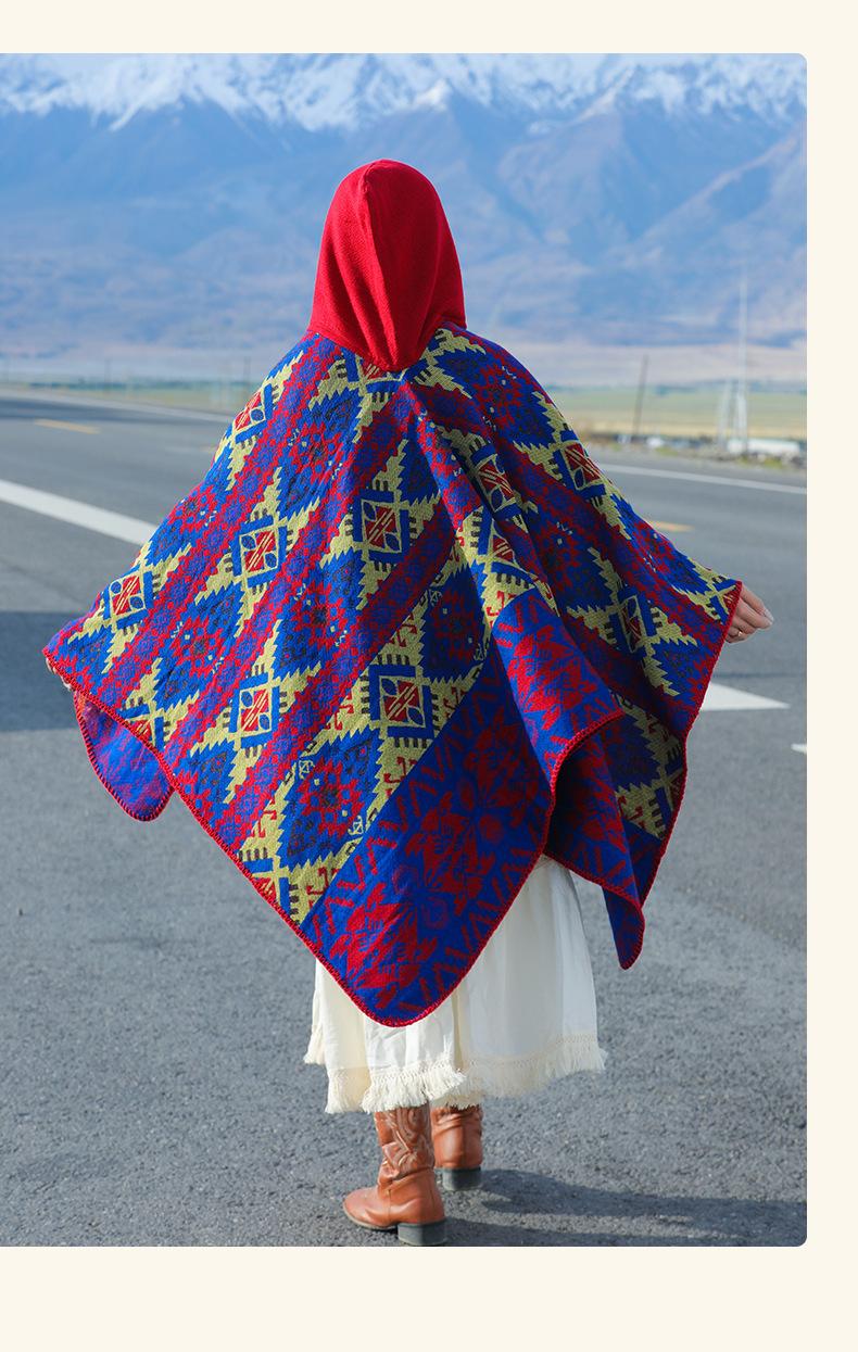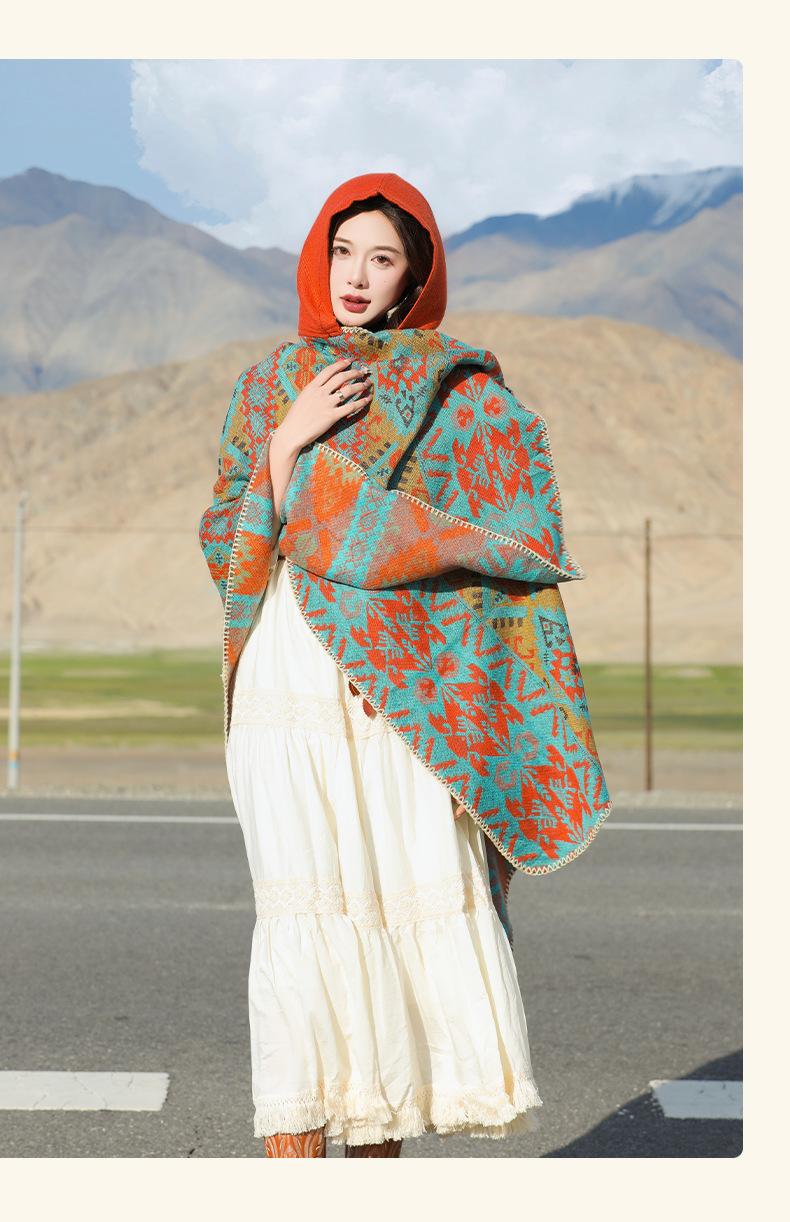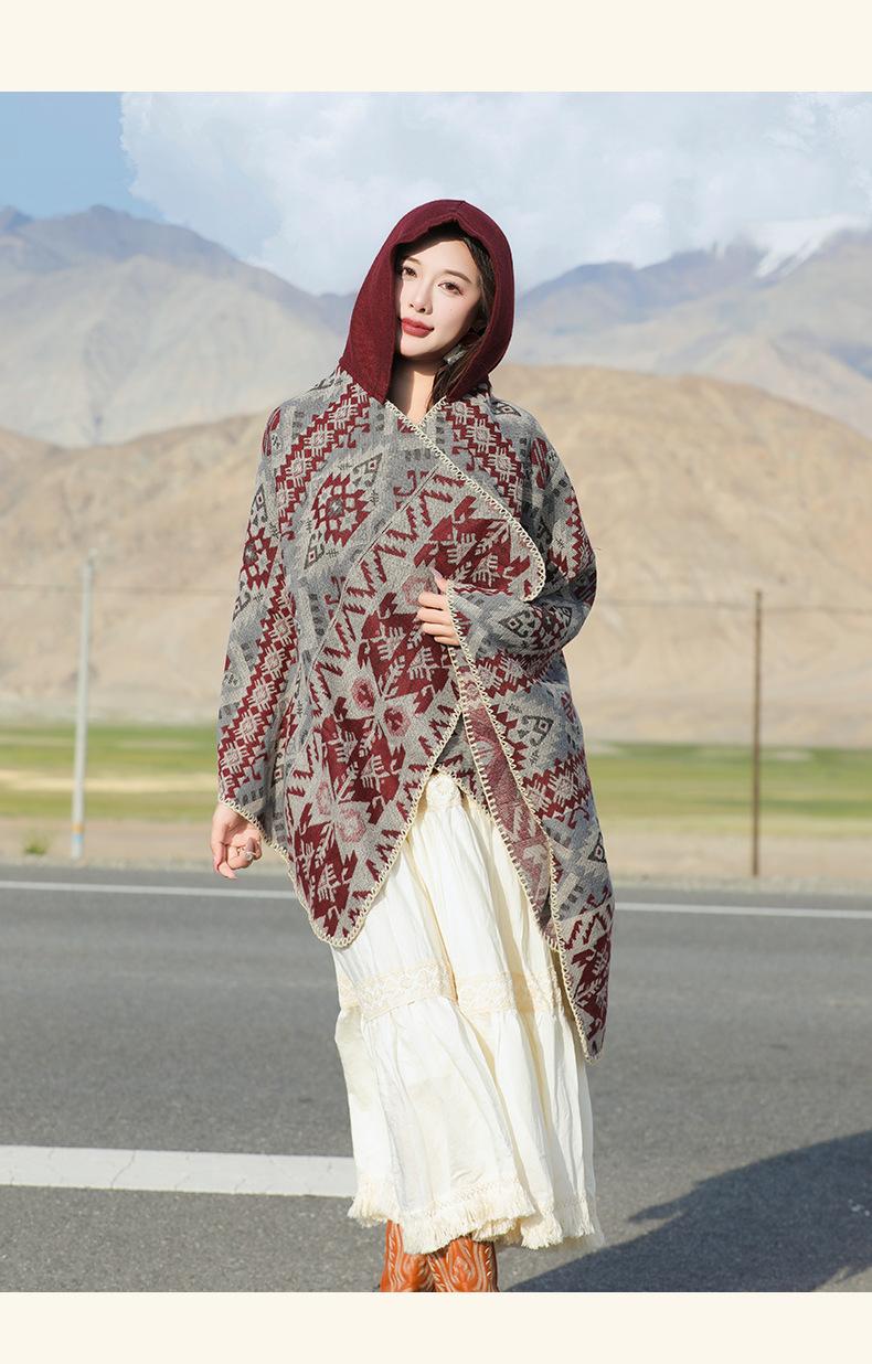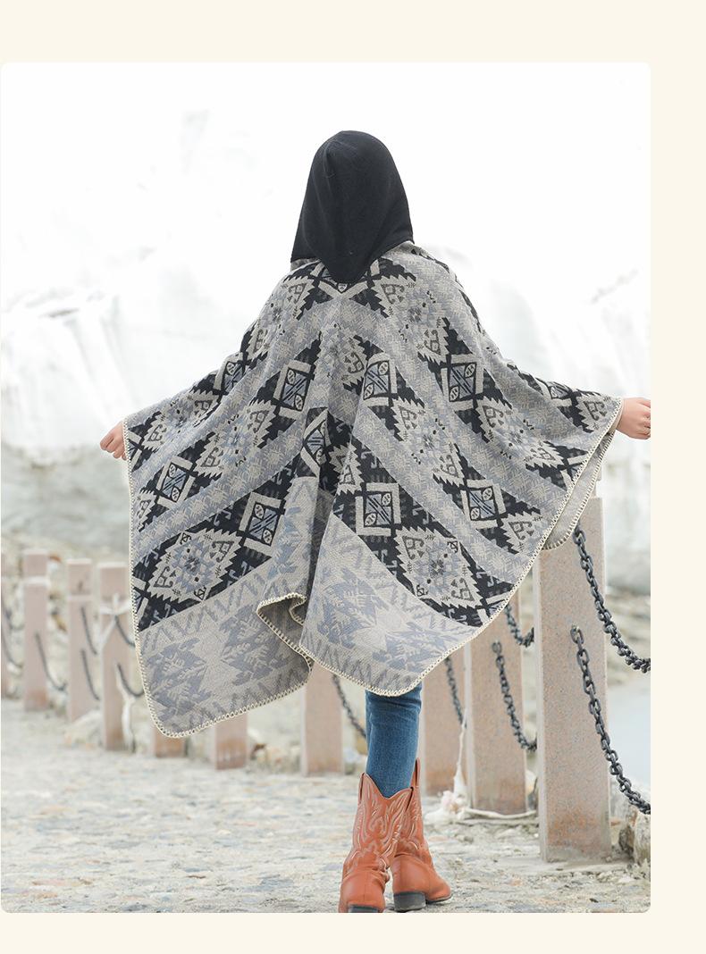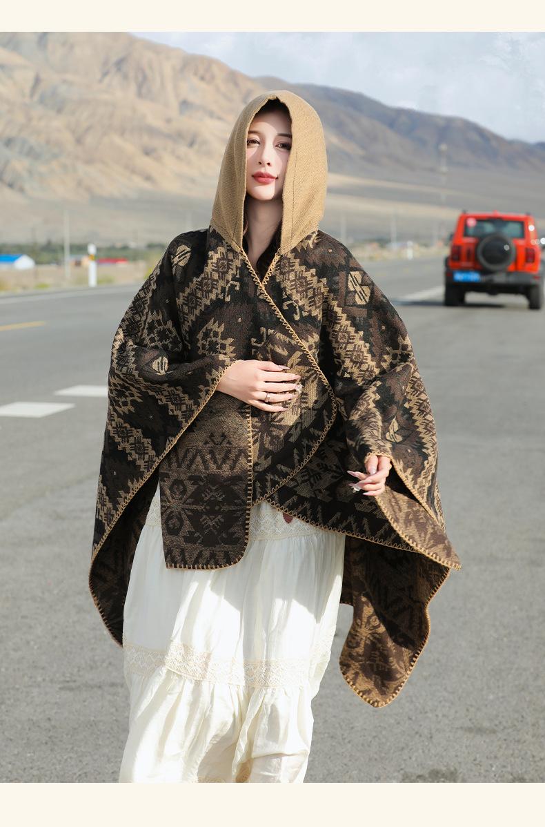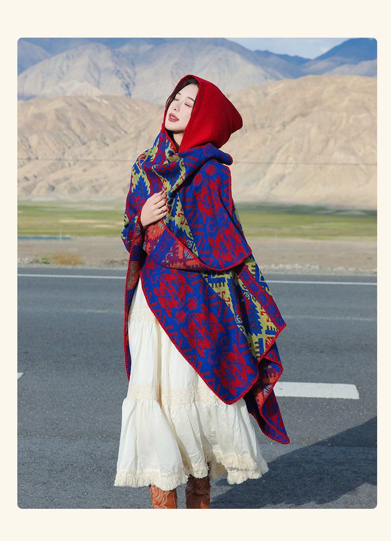 Chal Mujer Nuevo Otoño e Invierno Estilo Étnico Xinjiang Xizang Capa Grande Capa Moda con Capucha Viaje Foto