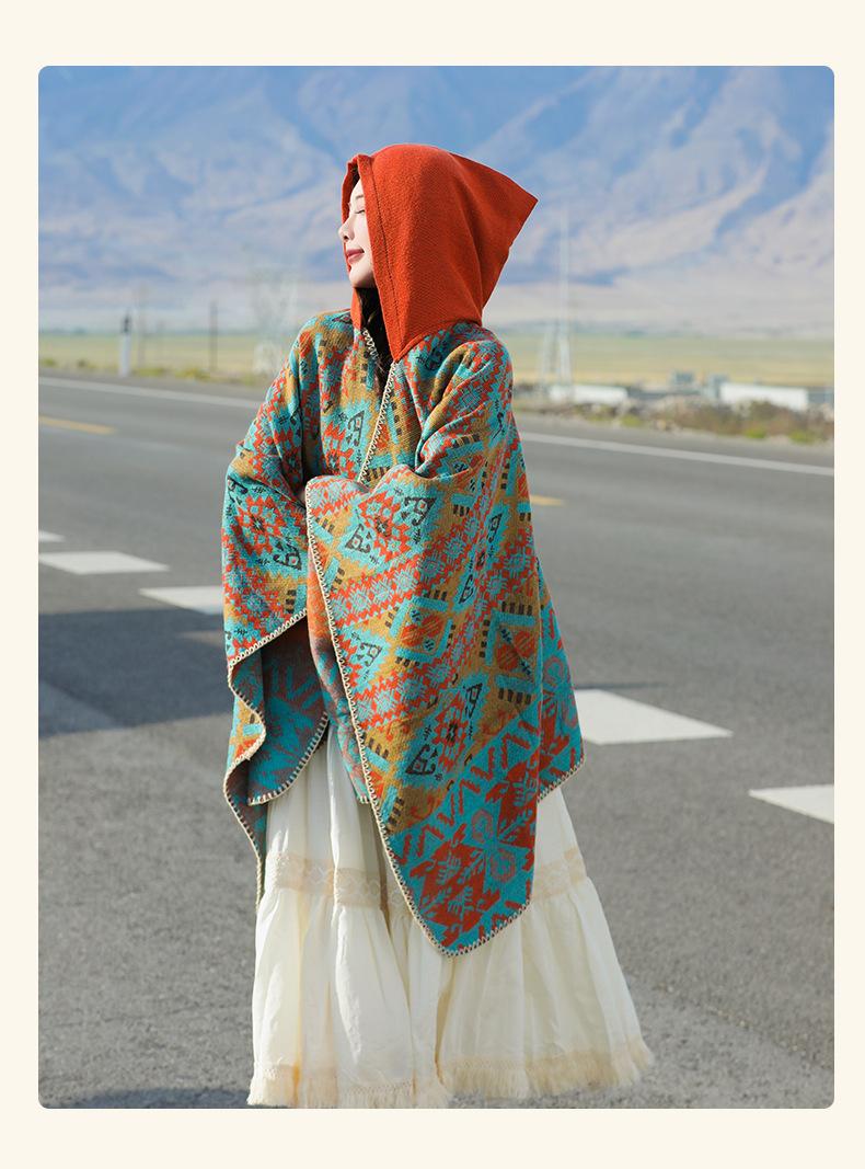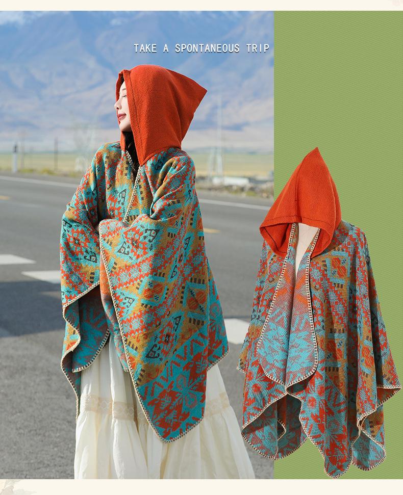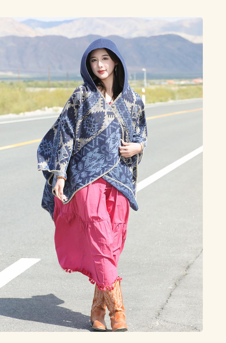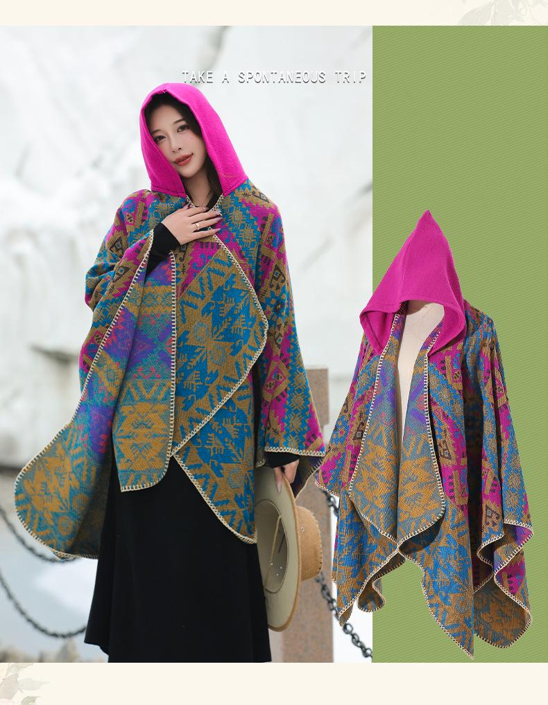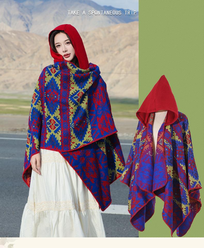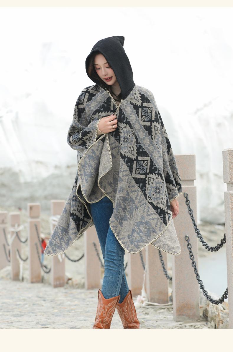 Chal Mujer Nuevo Otoño e Invierno Estilo Étnico Xinjiang Xizang Capa Grande Capa Moda con Capucha Viaje Foto