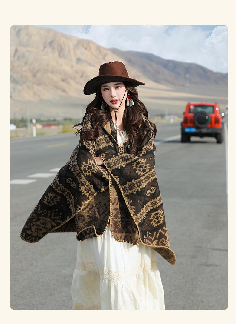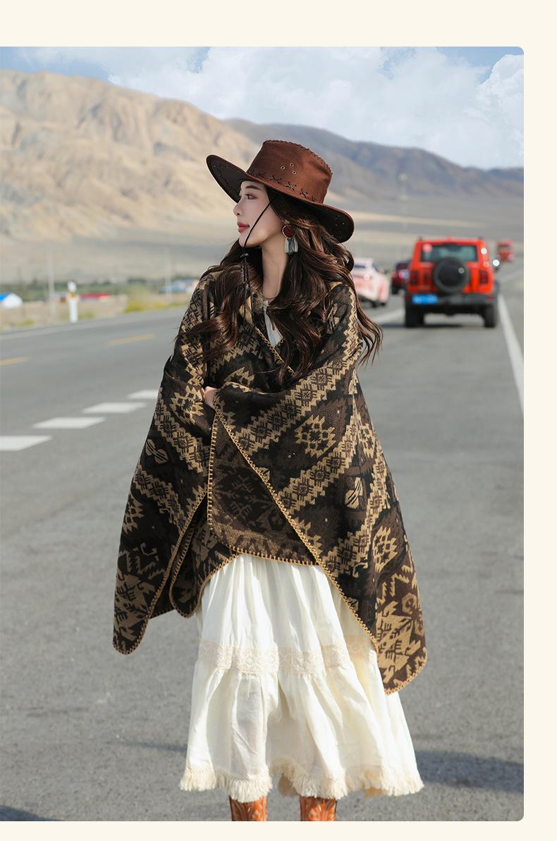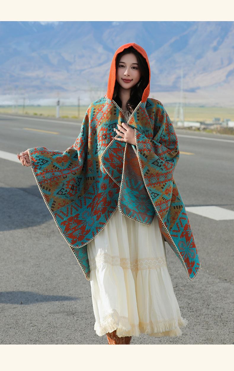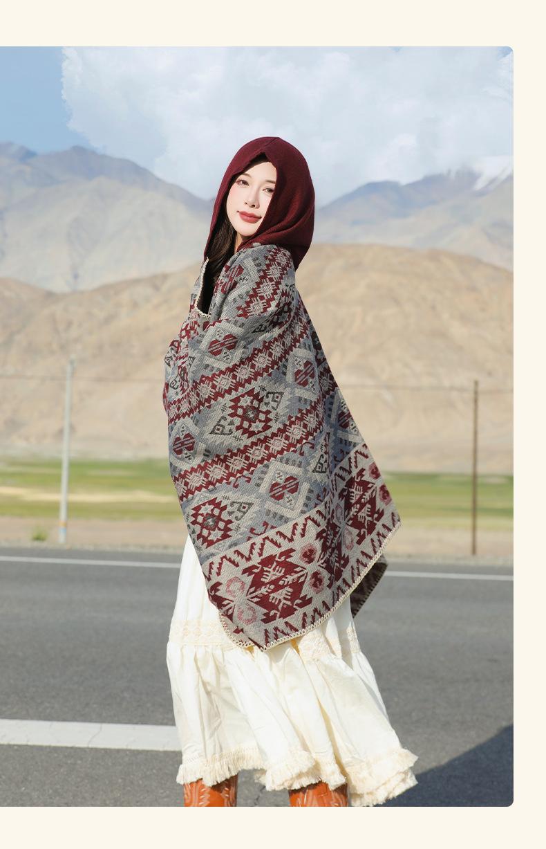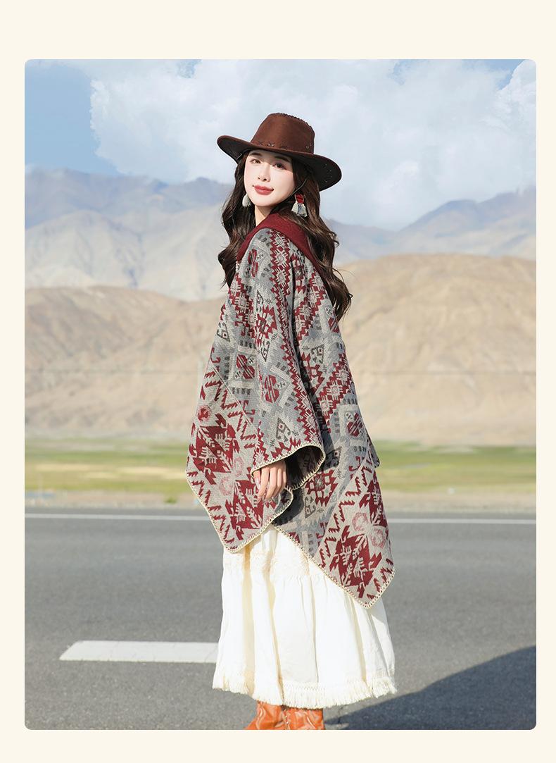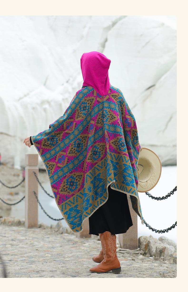 Chal Mujer Nuevo Otoño e Invierno Estilo Étnico Xinjiang Xizang Capa Grande Capa Moda con Capucha Viaje Foto