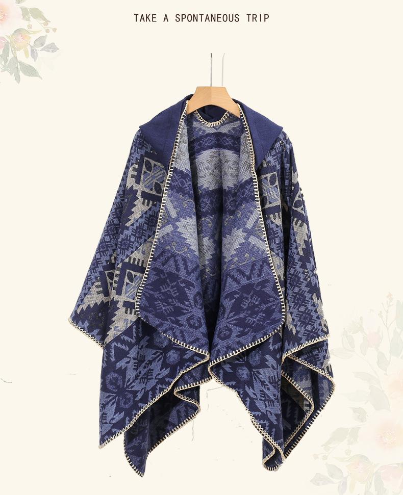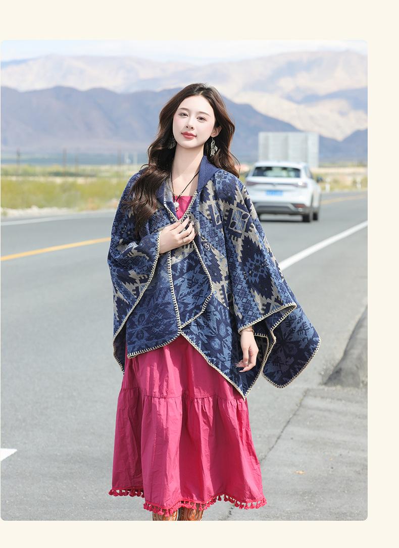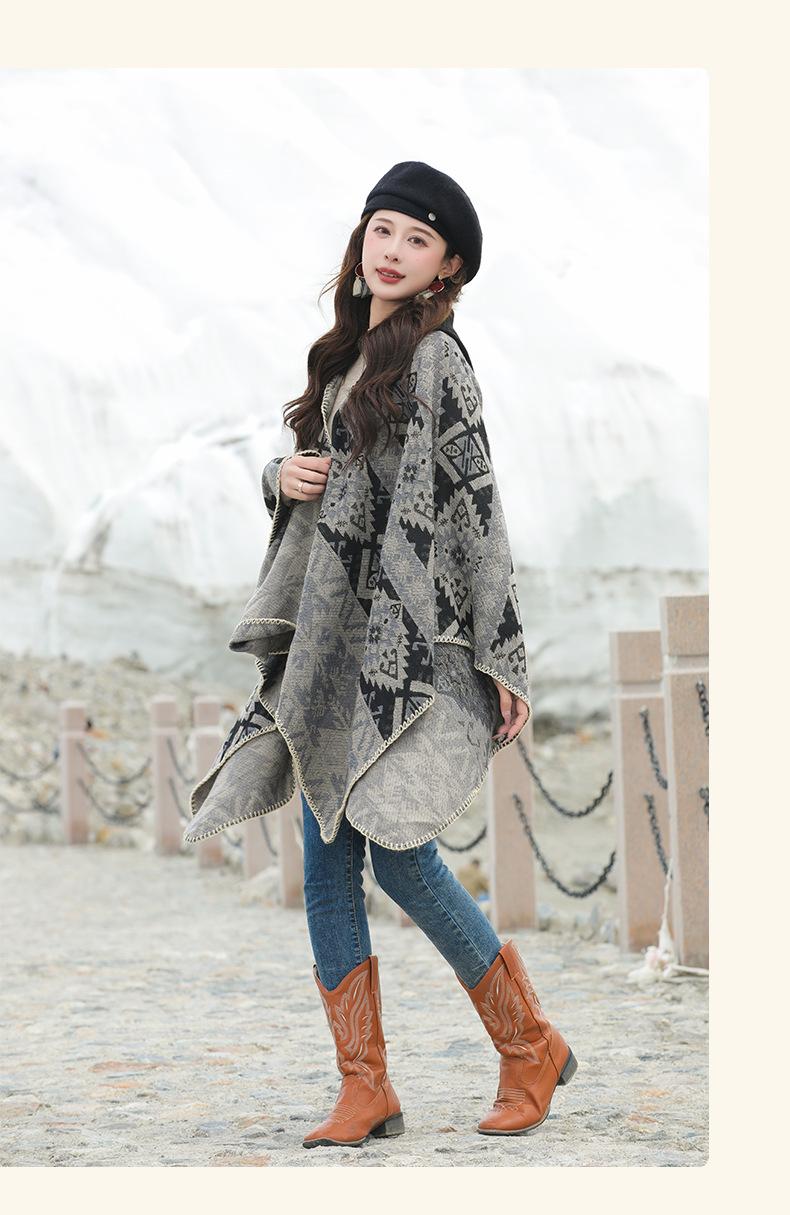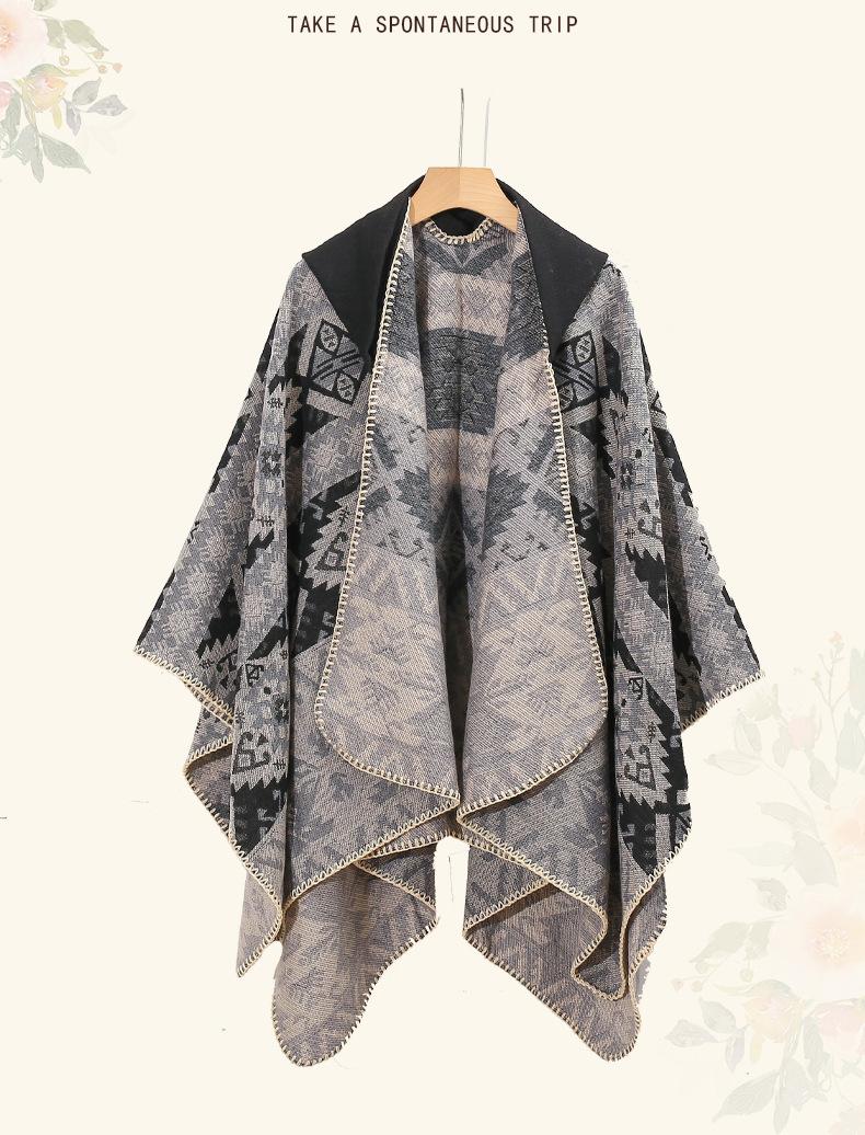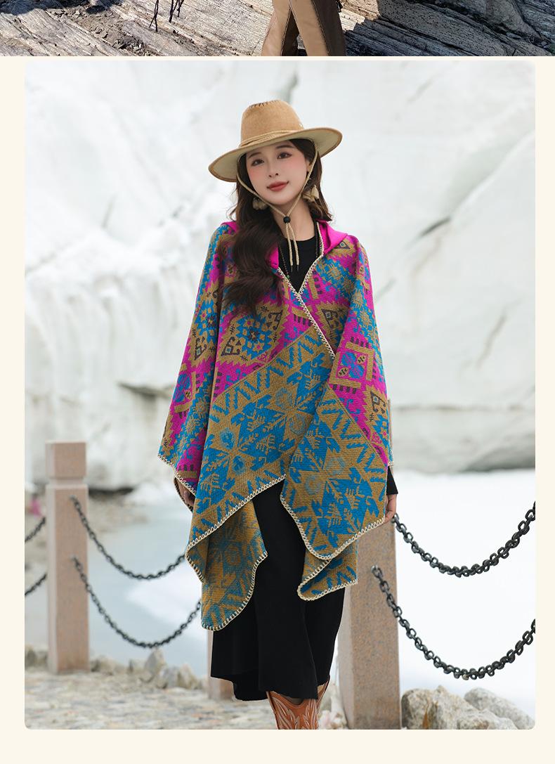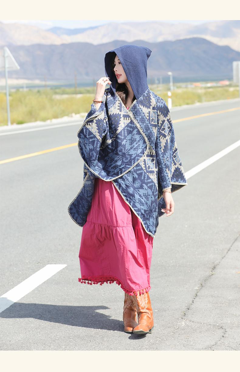 Chal Mujer Nuevo Otoño e Invierno Estilo Étnico Xinjiang Xizang Capa Grande Capa Moda con Capucha Viaje Foto