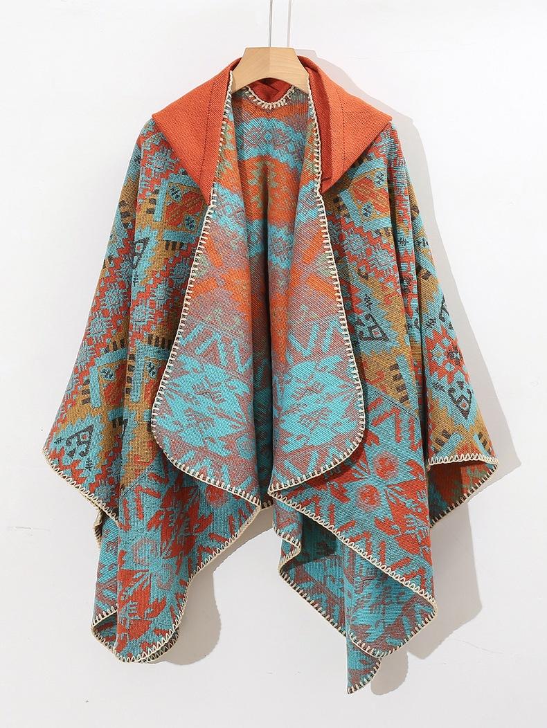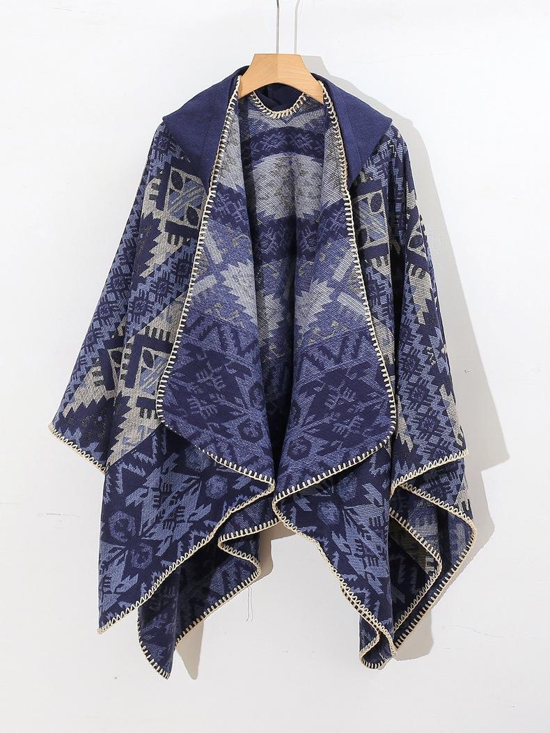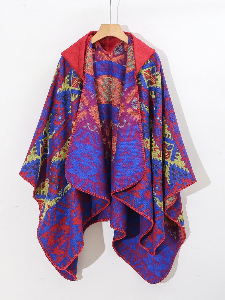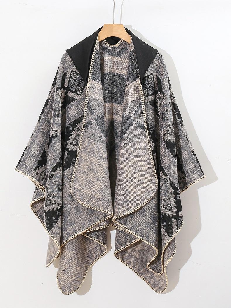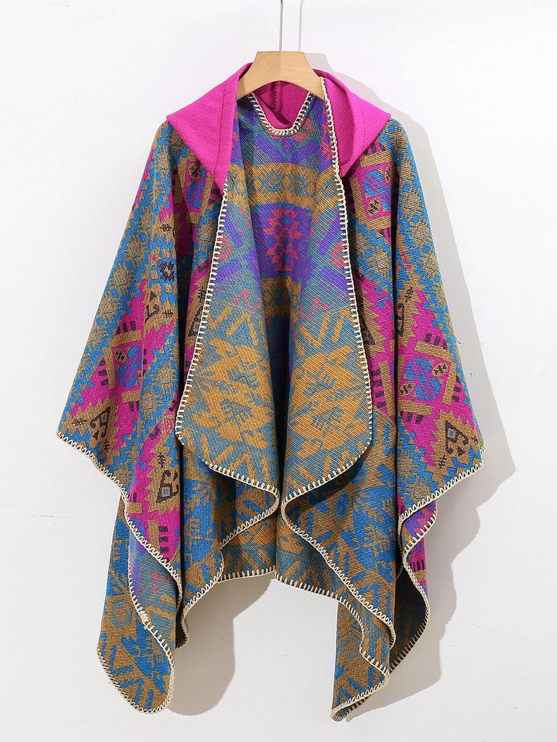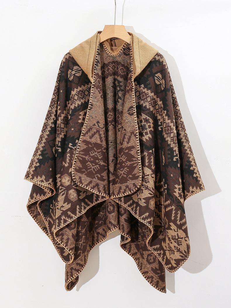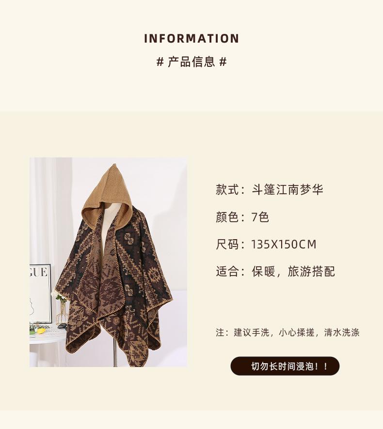 Chal Mujer Nuevo Otoño e Invierno Estilo Étnico Xinjiang Xizang Capa Grande Capa Moda con Capucha Viaje Foto