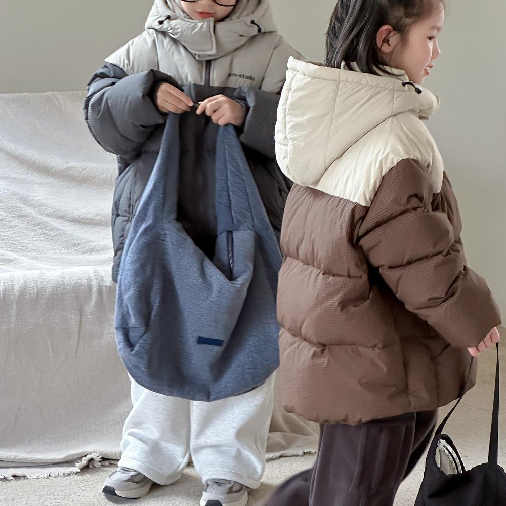 Chamarra de Plumas 2025 Invierno Estilo Coreano con Capucha Acolchada Corta para Niños y Niñas, Chaqueta de Pan Cálida Holgada para Niños