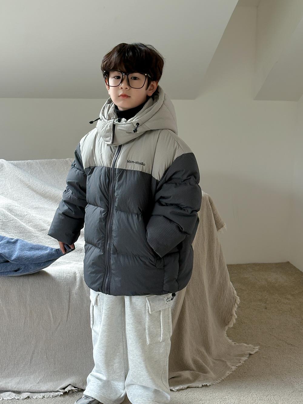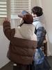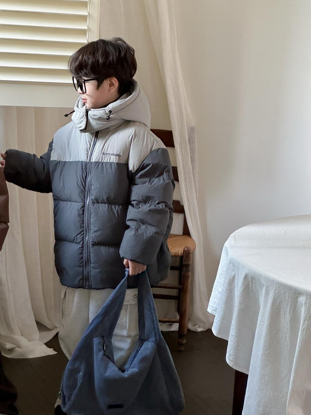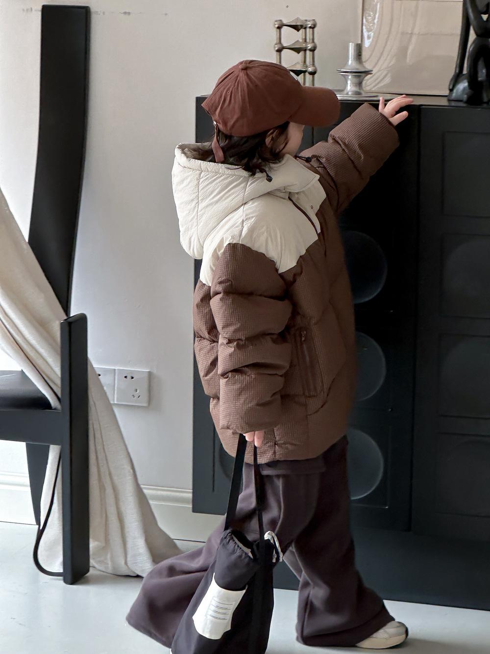 Hooded contrasting color down jacket apricot brown, Hooded contrasting down jacket gray blue