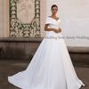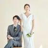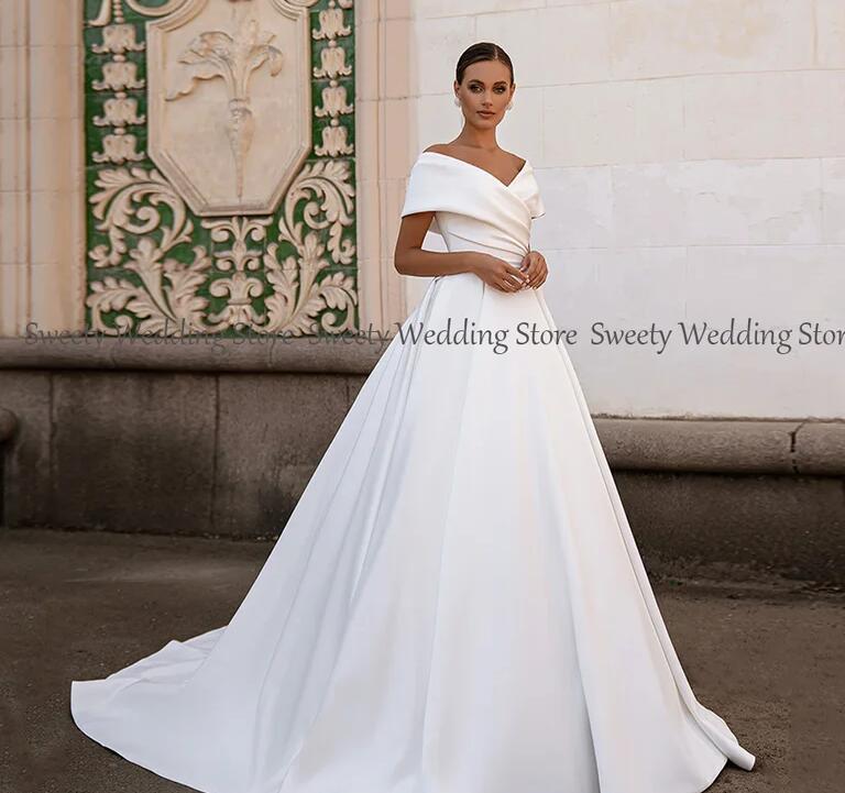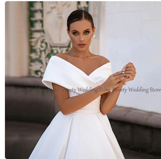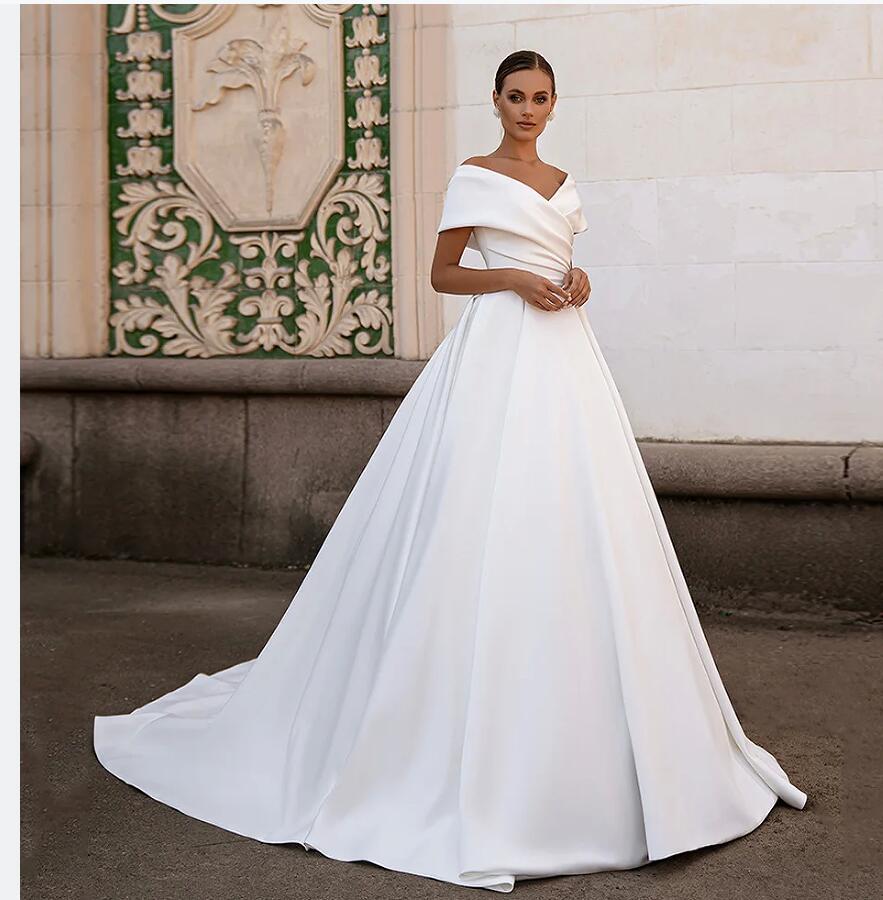 Vestido de novia europeo y americano nuevo con hombros descubiertos nuevo fotografía de viaje Mori simple nupcial pequeña cola hilo de boda