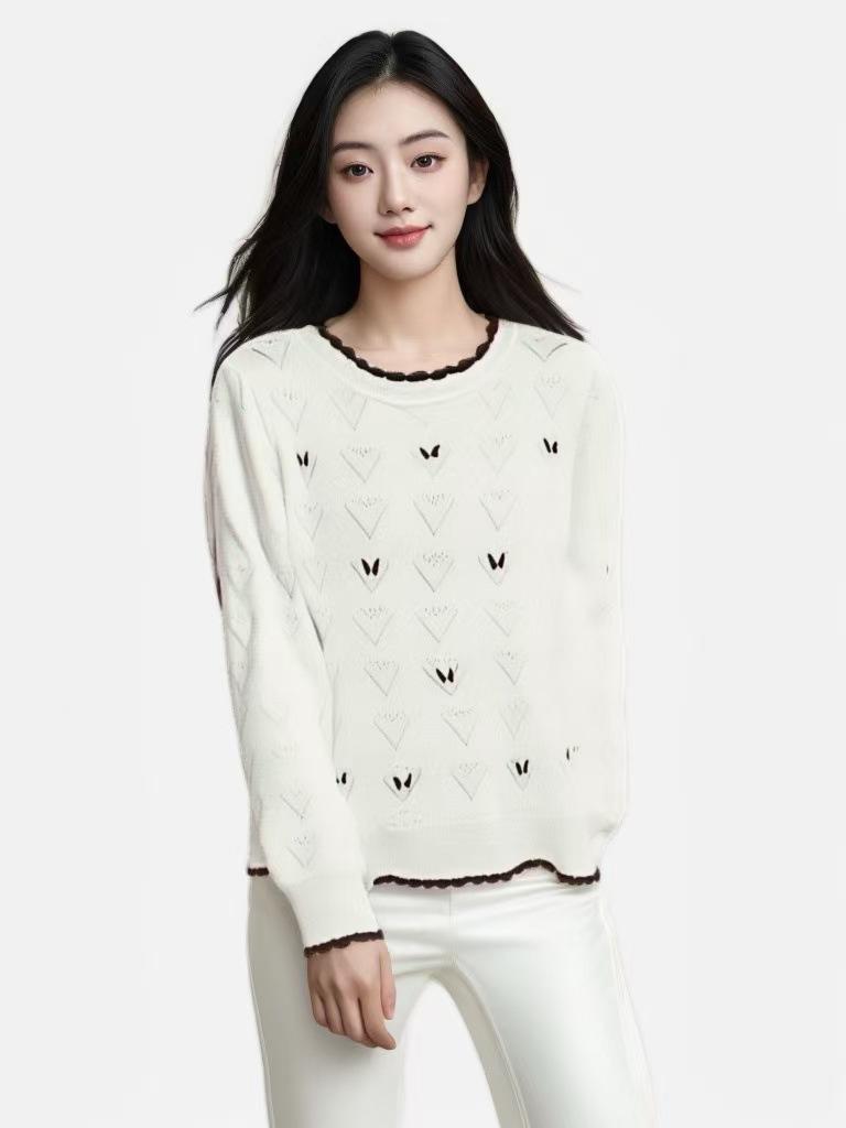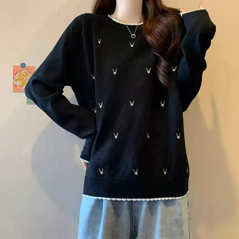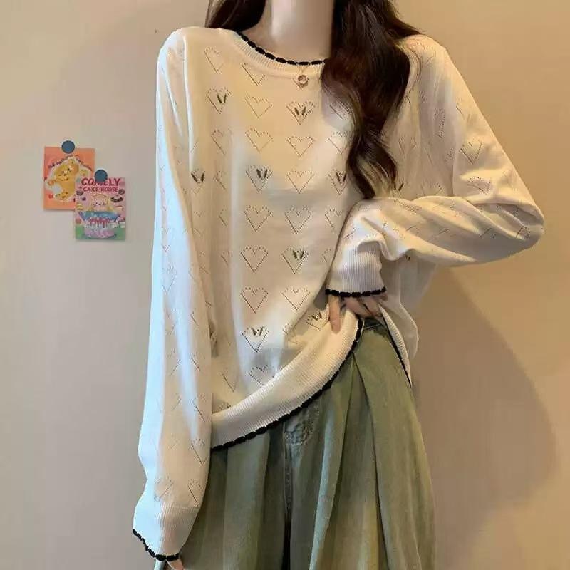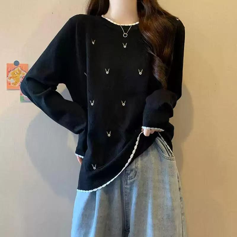 Camiseta de manga larga con bordado de amor para otoño e invierno, suéter interior nuevo, camisa de punto holgada y ajustada para mujer
