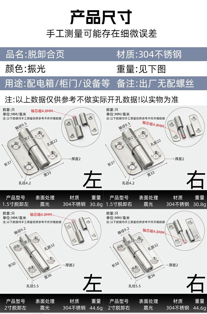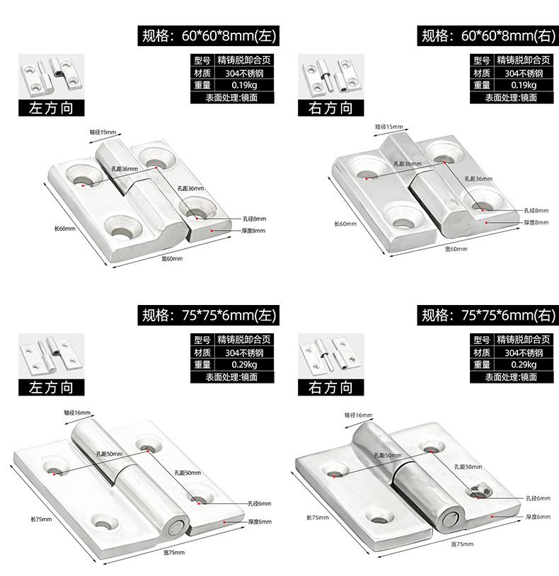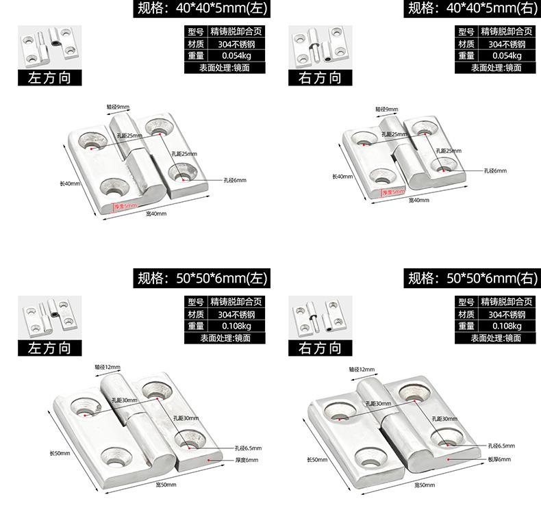 1.5inch detachable hinge (304 steel) left, 1.5inch detachable hinge (304 steel) right, 2inch detachable hinge ...