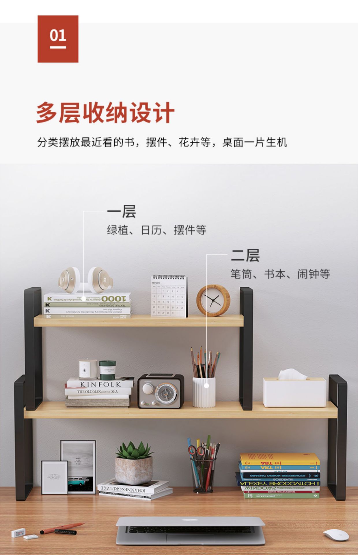Estante de Almacenamiento Estante de Libros de Escritorio de Múltiples Capas Estante de Almacenamiento para Escritorio de Estudiante Estante de Almacenamiento para Gabinete en Capas para Escritorio de Computadora de Oficina