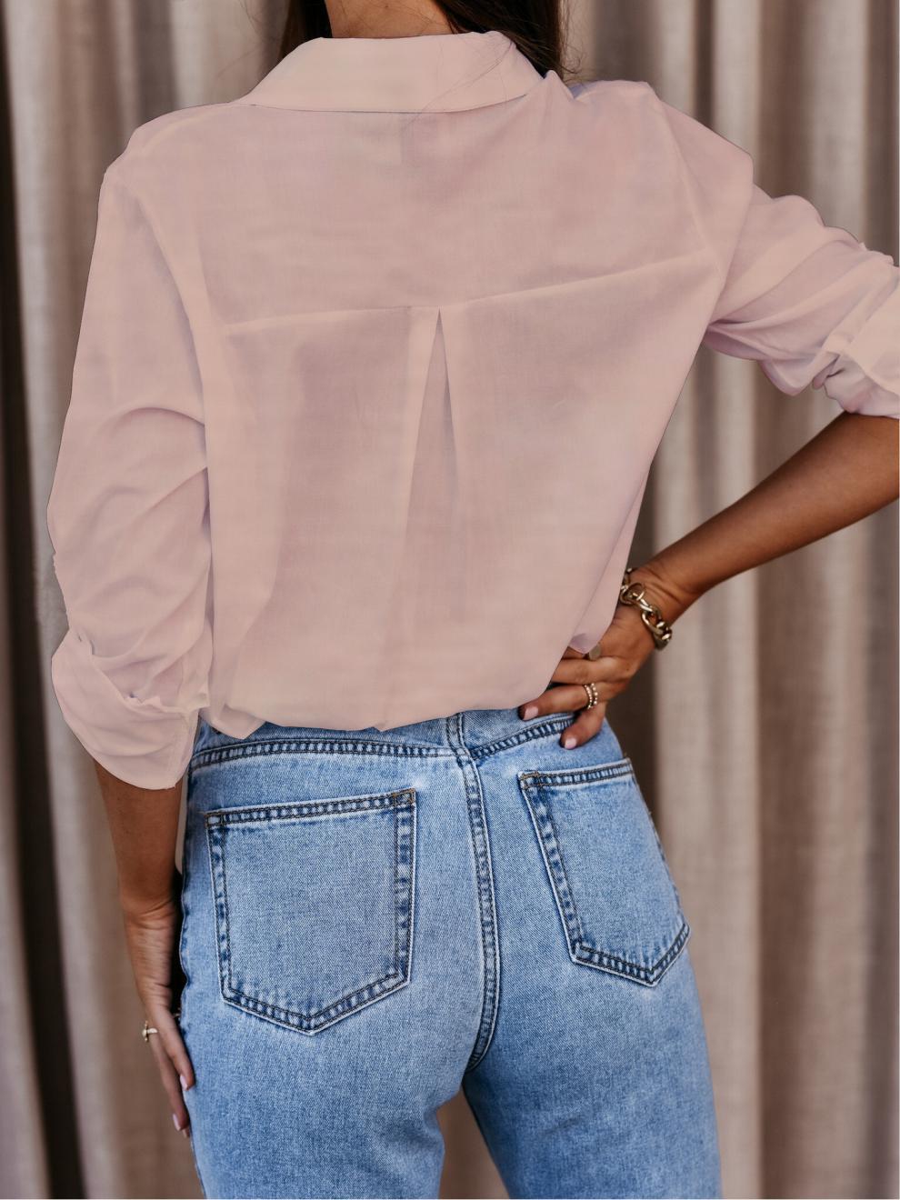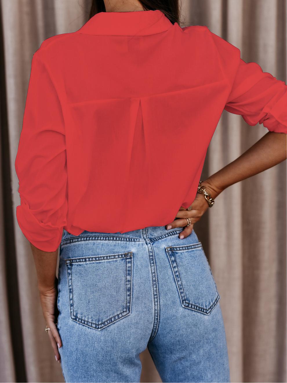 Camisa sencilla de manga larga con cuello en V y botones para mujer de AliExpress Wish Amazon Otoño 2023