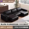Sofá eléctrico de pared cero, estilo minimalista italiano, grande, de cuero de vaca negro, para sala de estar, apartamento pequeño, sofá bloque de tofu