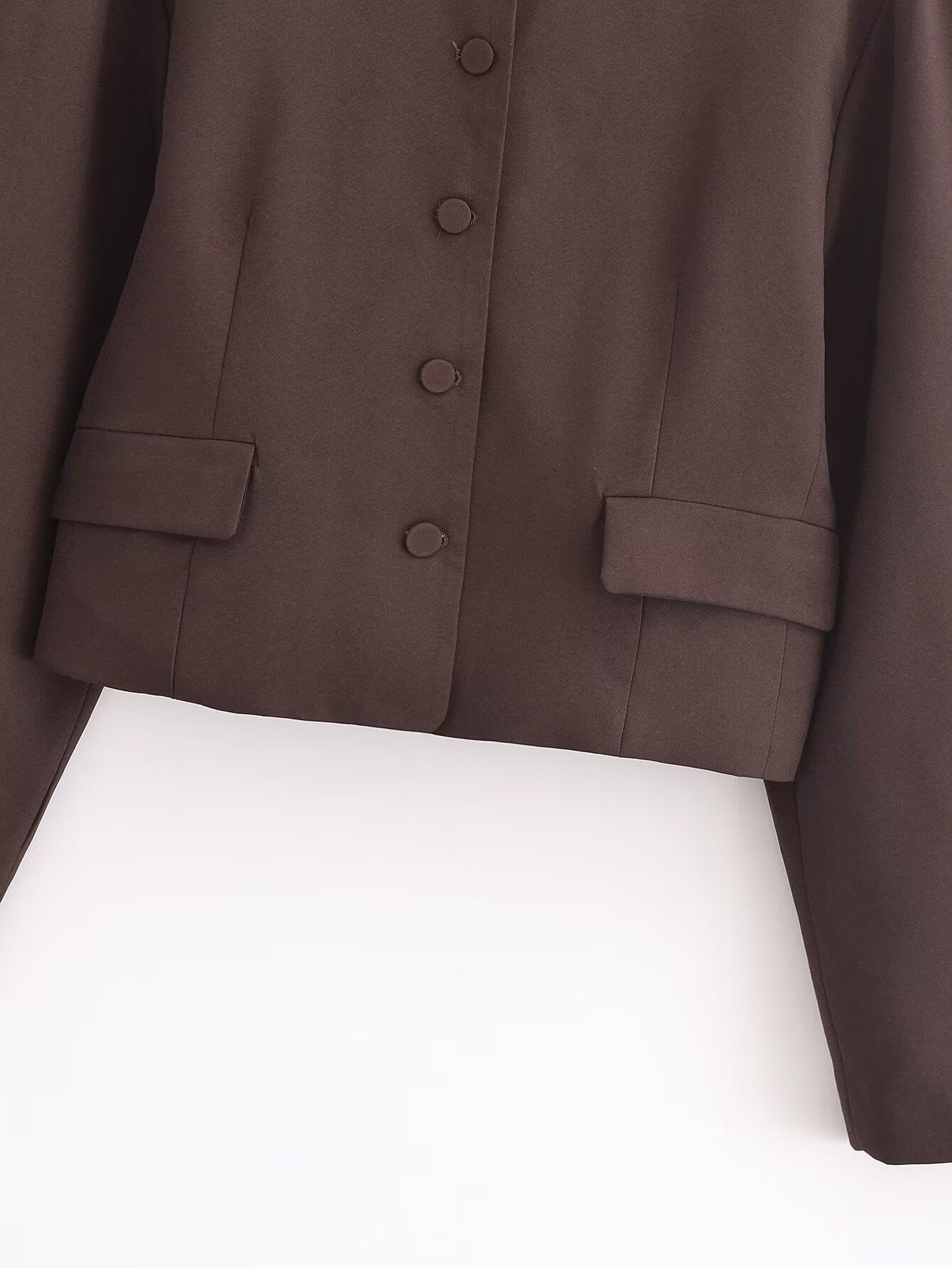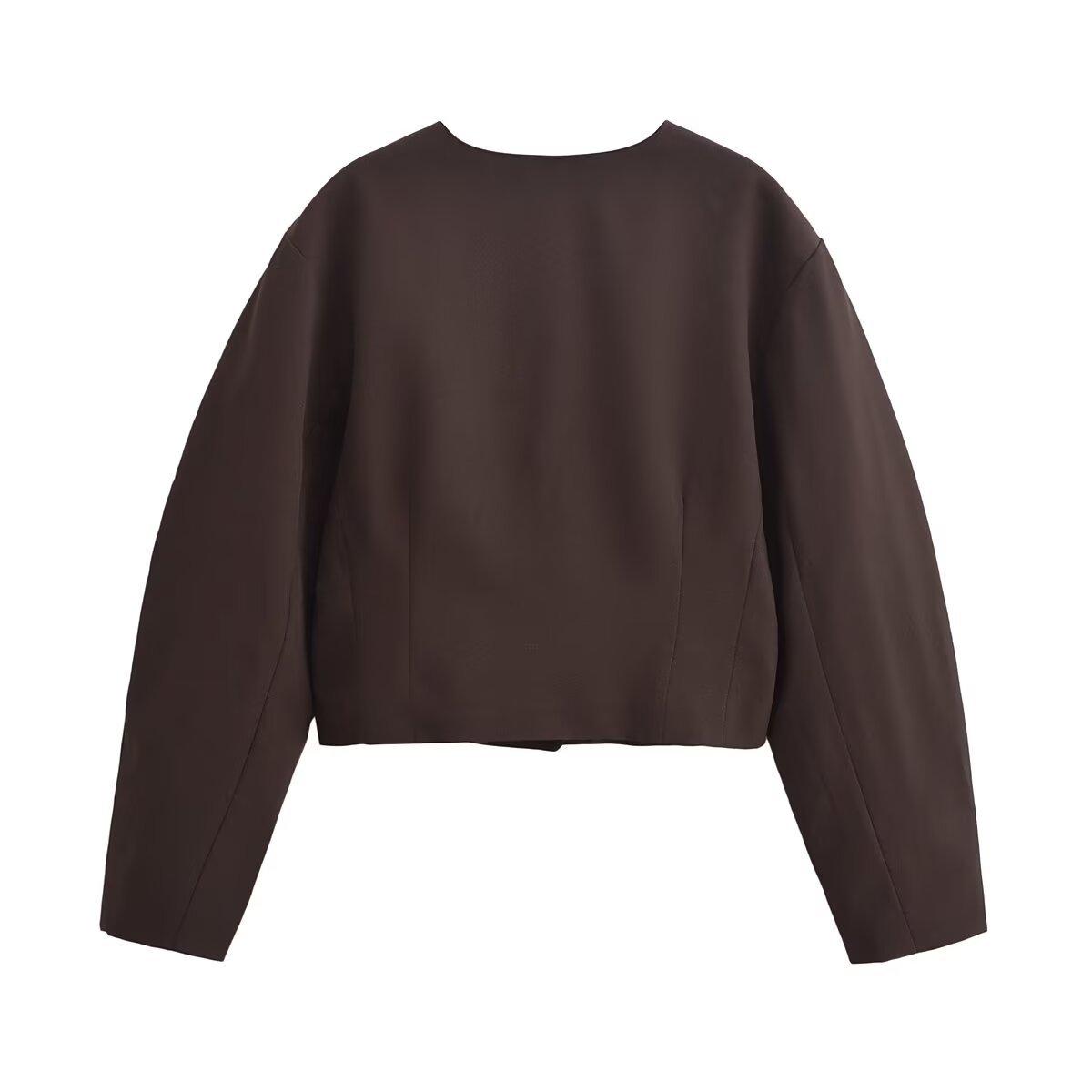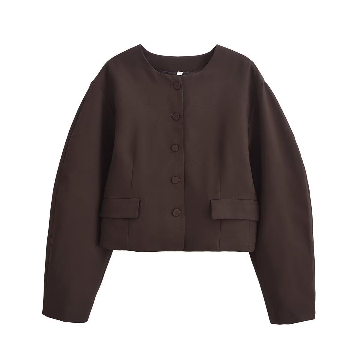 Otoño 2024 Nueva chaqueta corta de traje de manga larga con diseño de globo marrón para mujer transfronteriza europea y americana