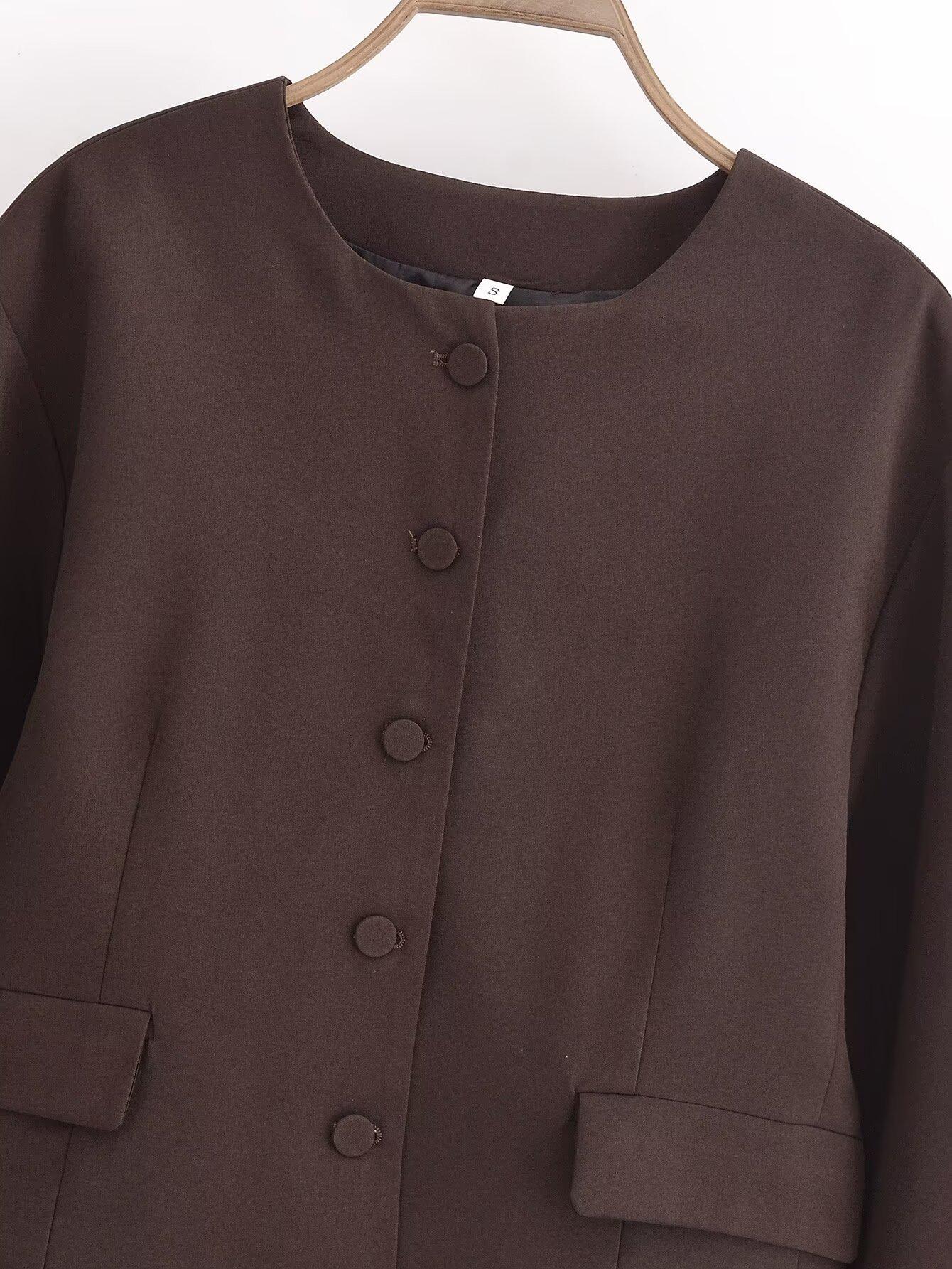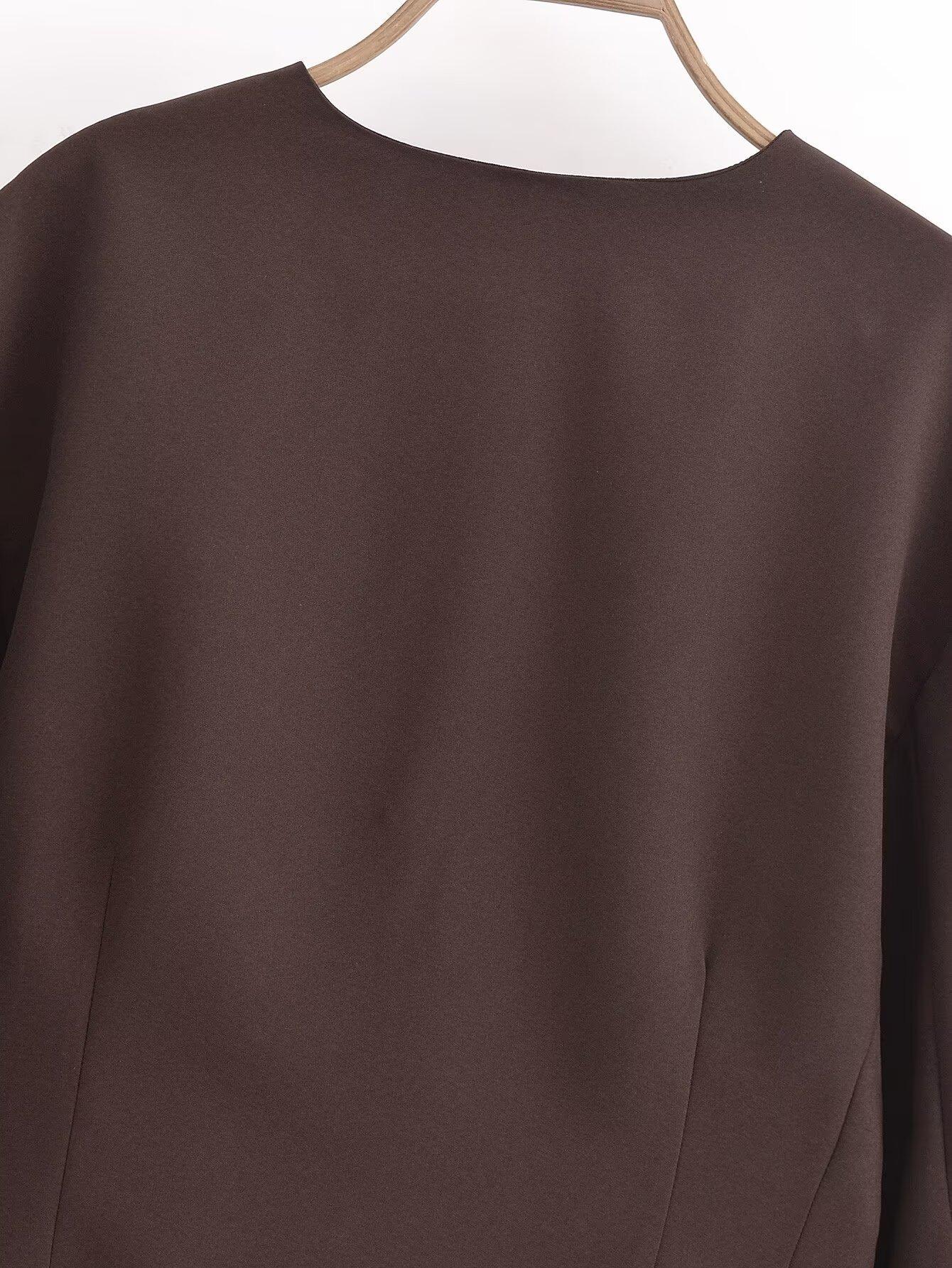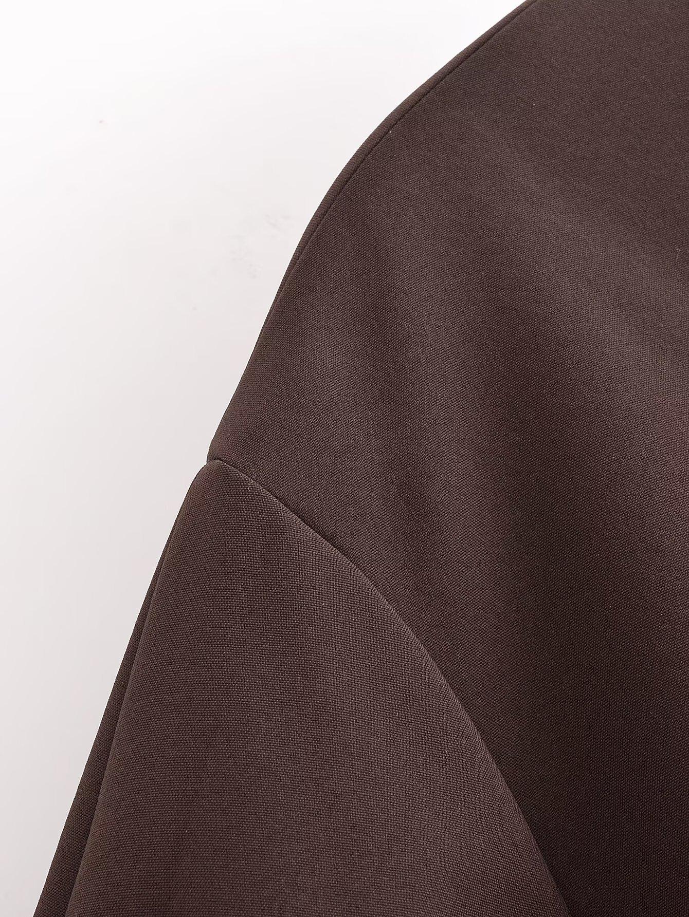 Otoño 2024 Nueva chaqueta corta de traje de manga larga con diseño de globo marrón para mujer transfronteriza europea y americana