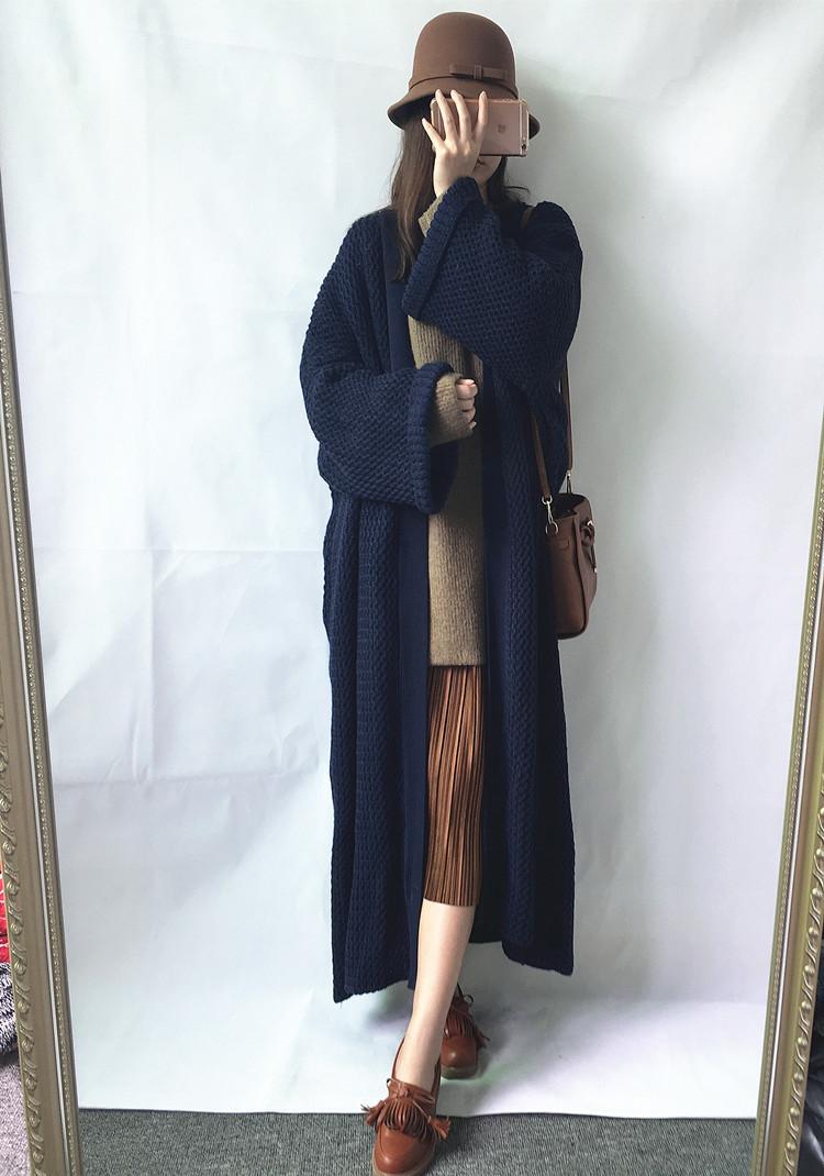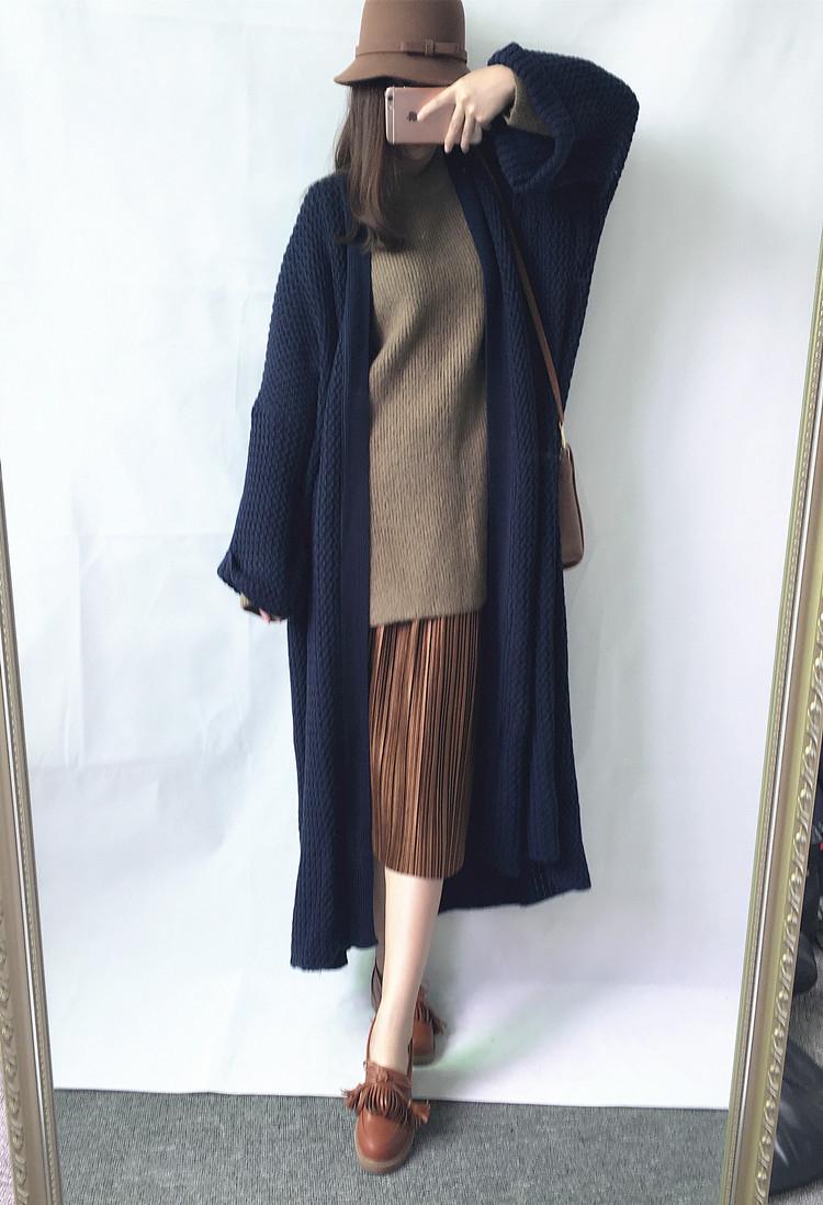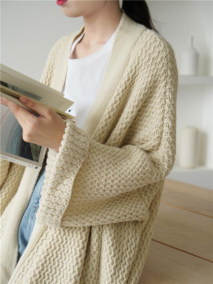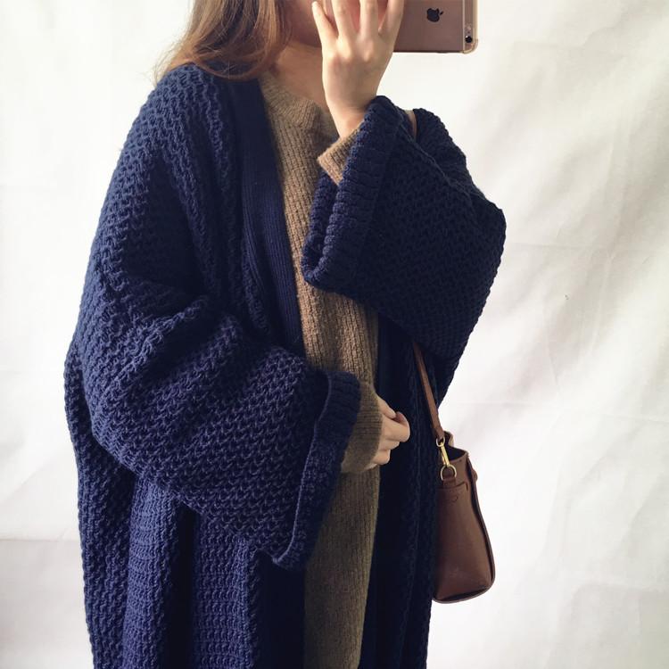 Chaqueta Suéter Larga de Otoño e Invierno 2024 para Mujer, Cárdigan Tejido Casual con Temperamento, Holgado, Espesado, Largo Medio, Suelto y a la Moda