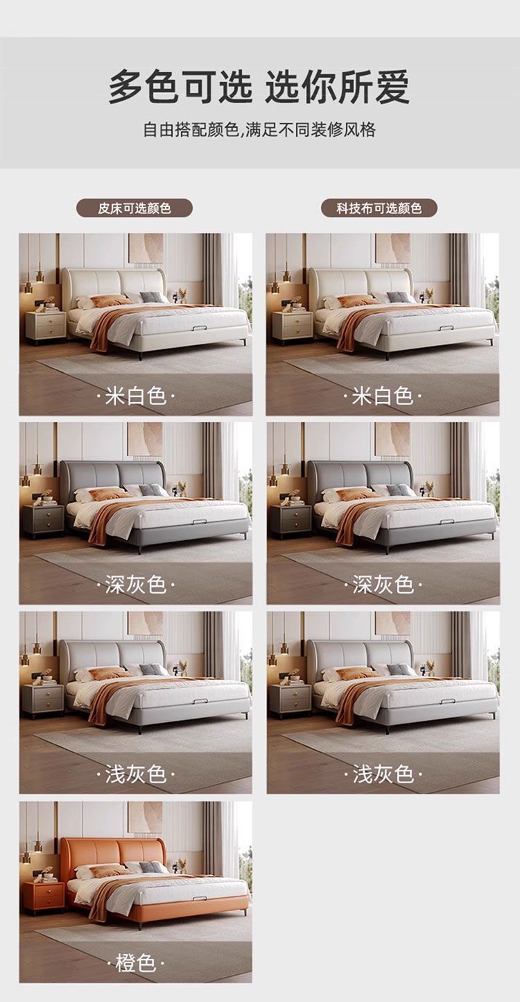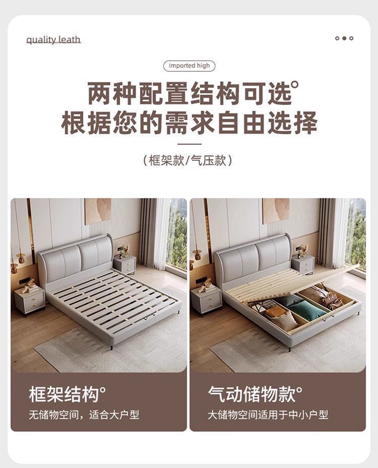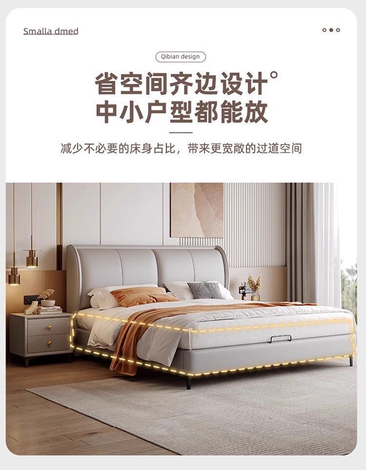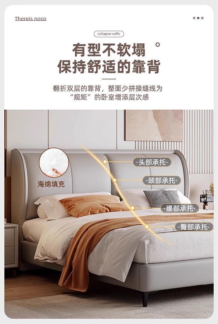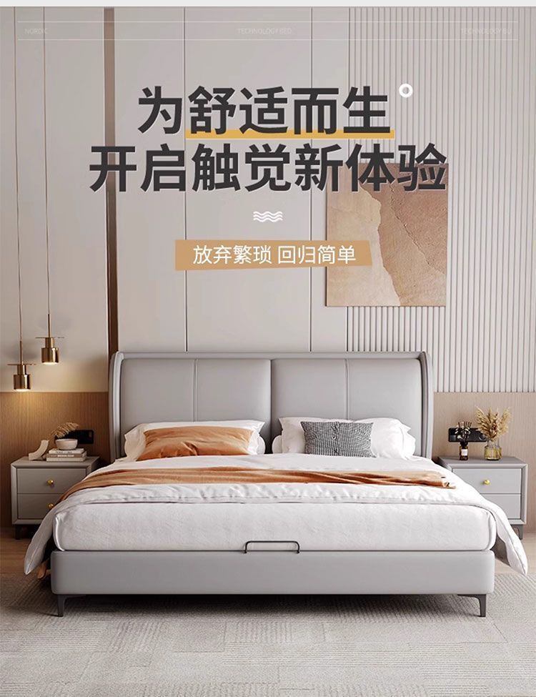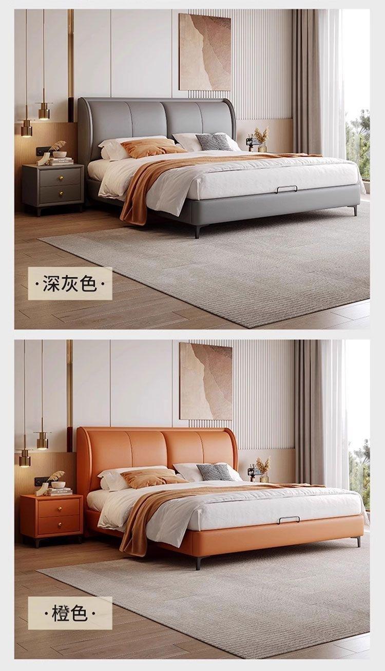 Cama de cuero estilo italiano, ligera, lujosa, moderna y sencilla, cama doble de cuero, 1,5 m, para casa, 1,8 m, para dormitorio principal, cama de madera maciza.
