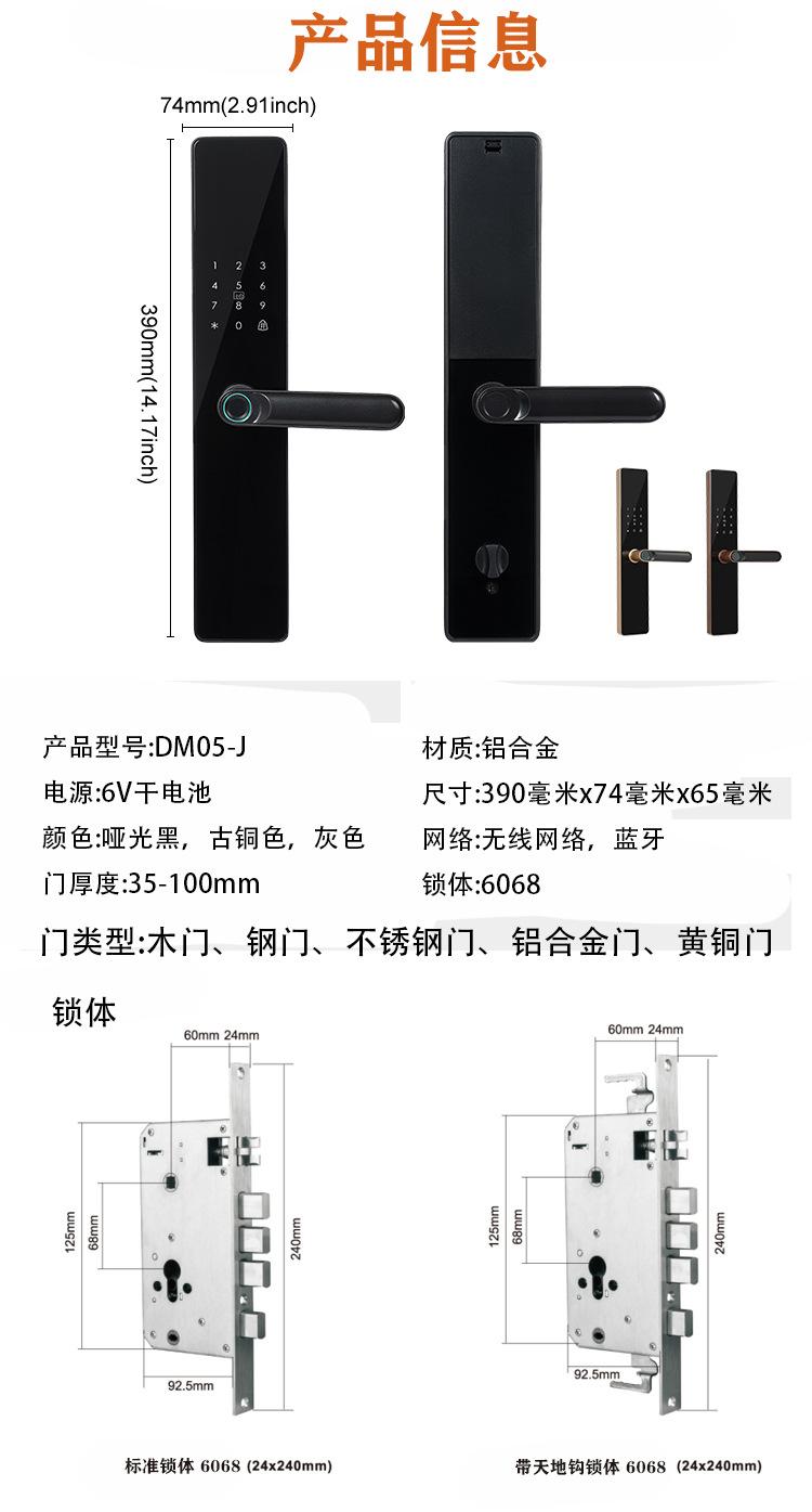 Matt black networking version (lock body + password, card, fingerprint, TUYAWIFI), Gold networking version (lo...