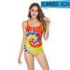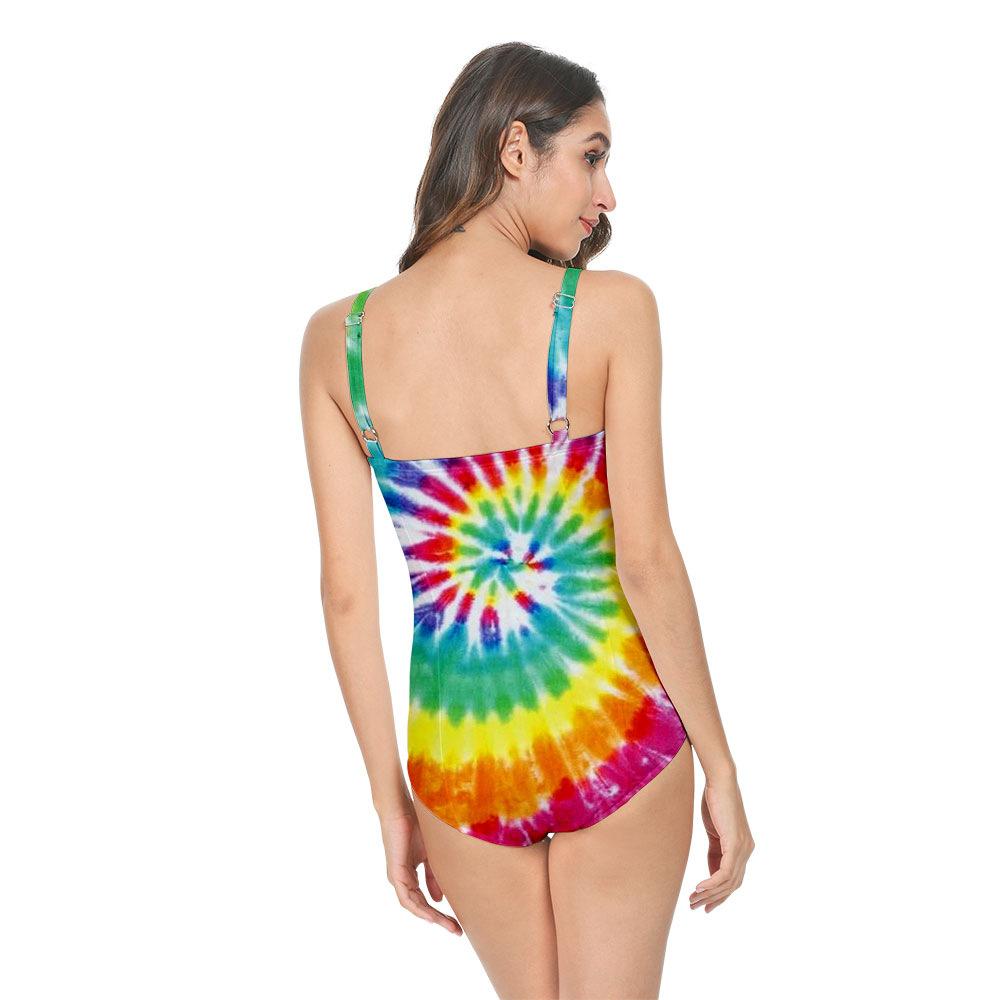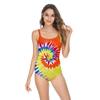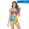 Nuevo traje de baño de una pieza sin espalda para mujer con estampado tie-dye de Amazon transfronterizo, estilo europeo y americano, sexy, con tirantes