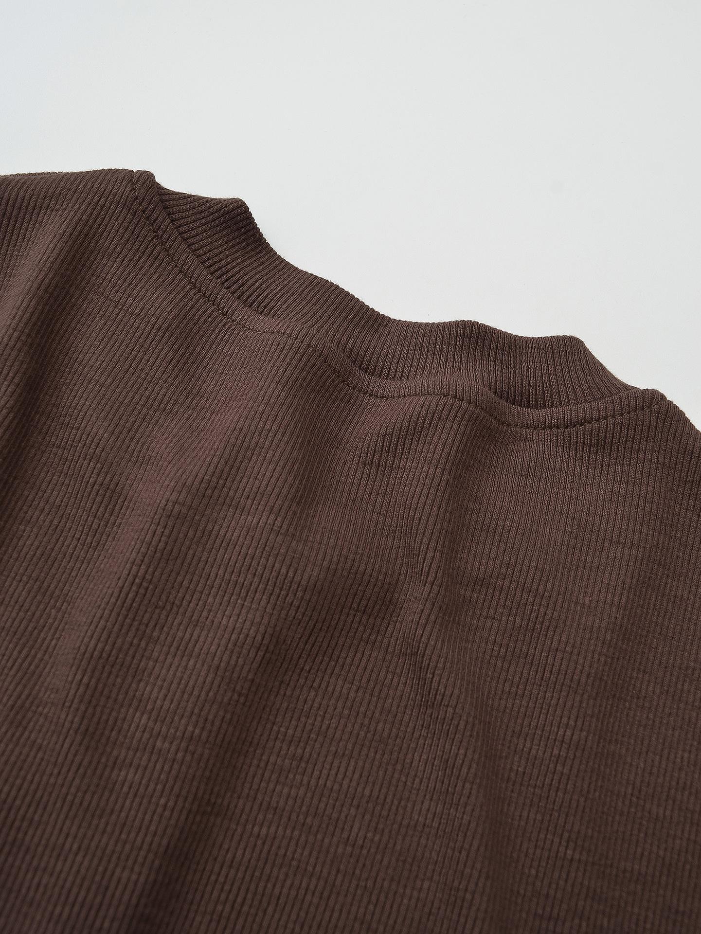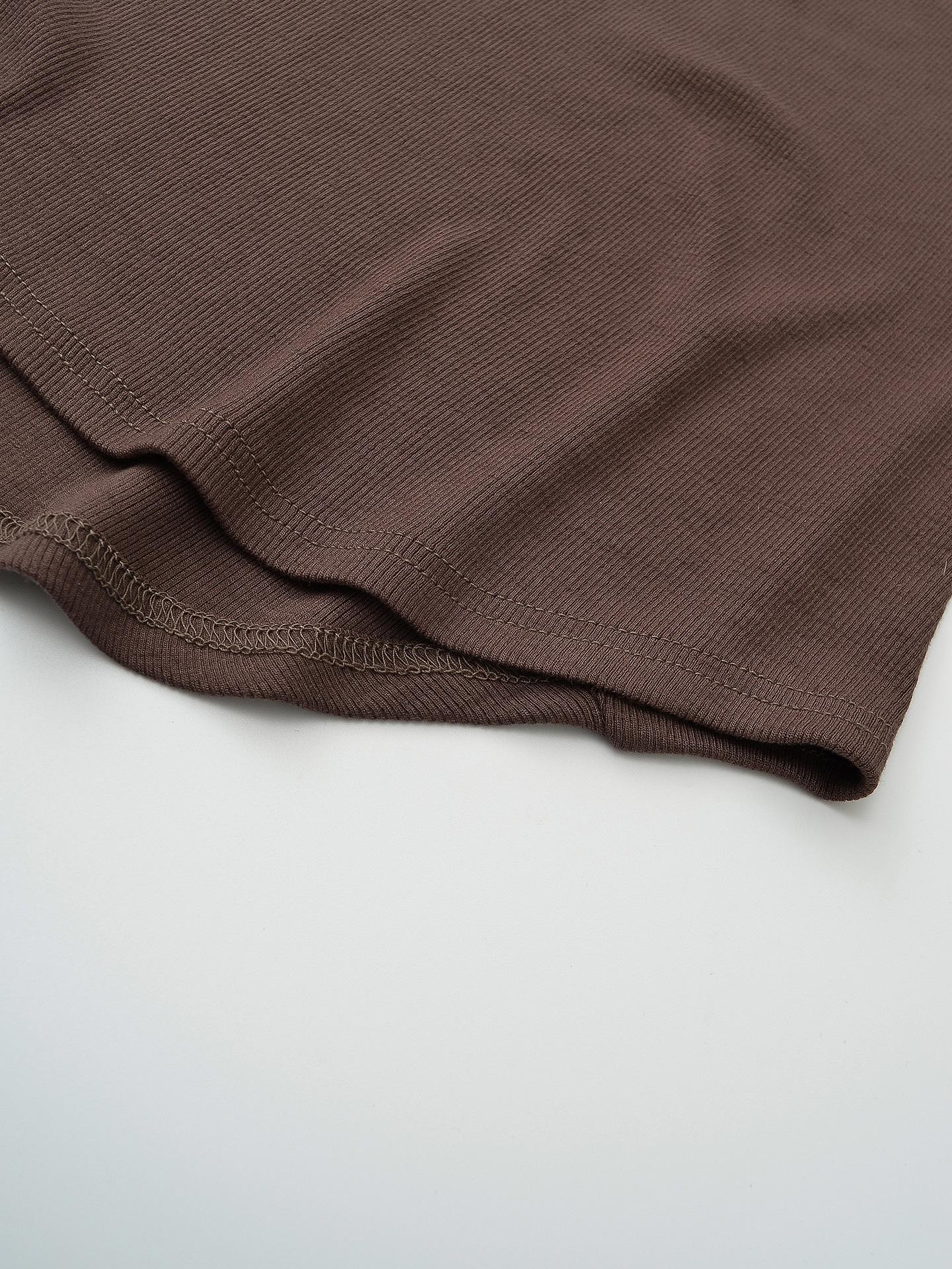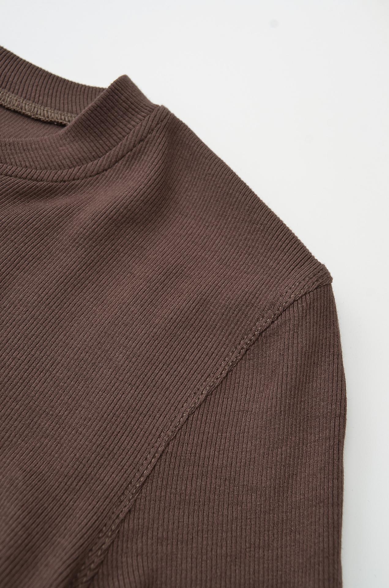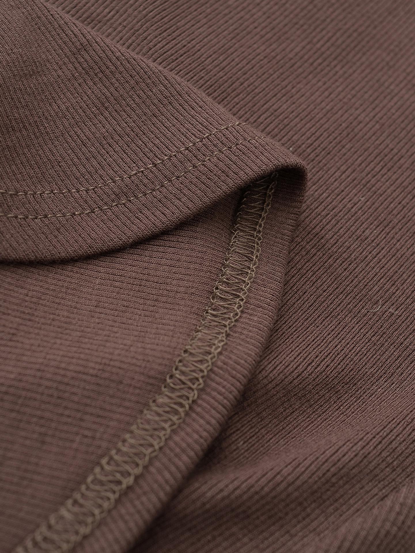 Playera de Manga Larga con Botones y Cuello Redondo de Color Sólido para Mujer Primavera y Otoño Nueva Ajuste Slim Asimétrica Camiseta Básica con Top Corto Interior