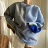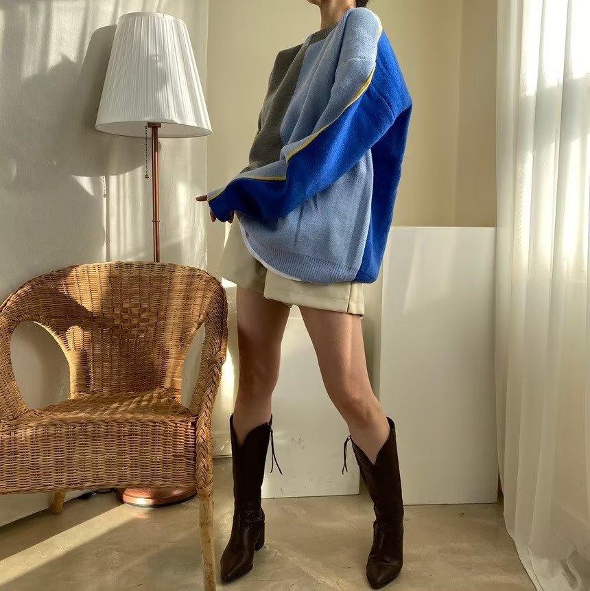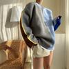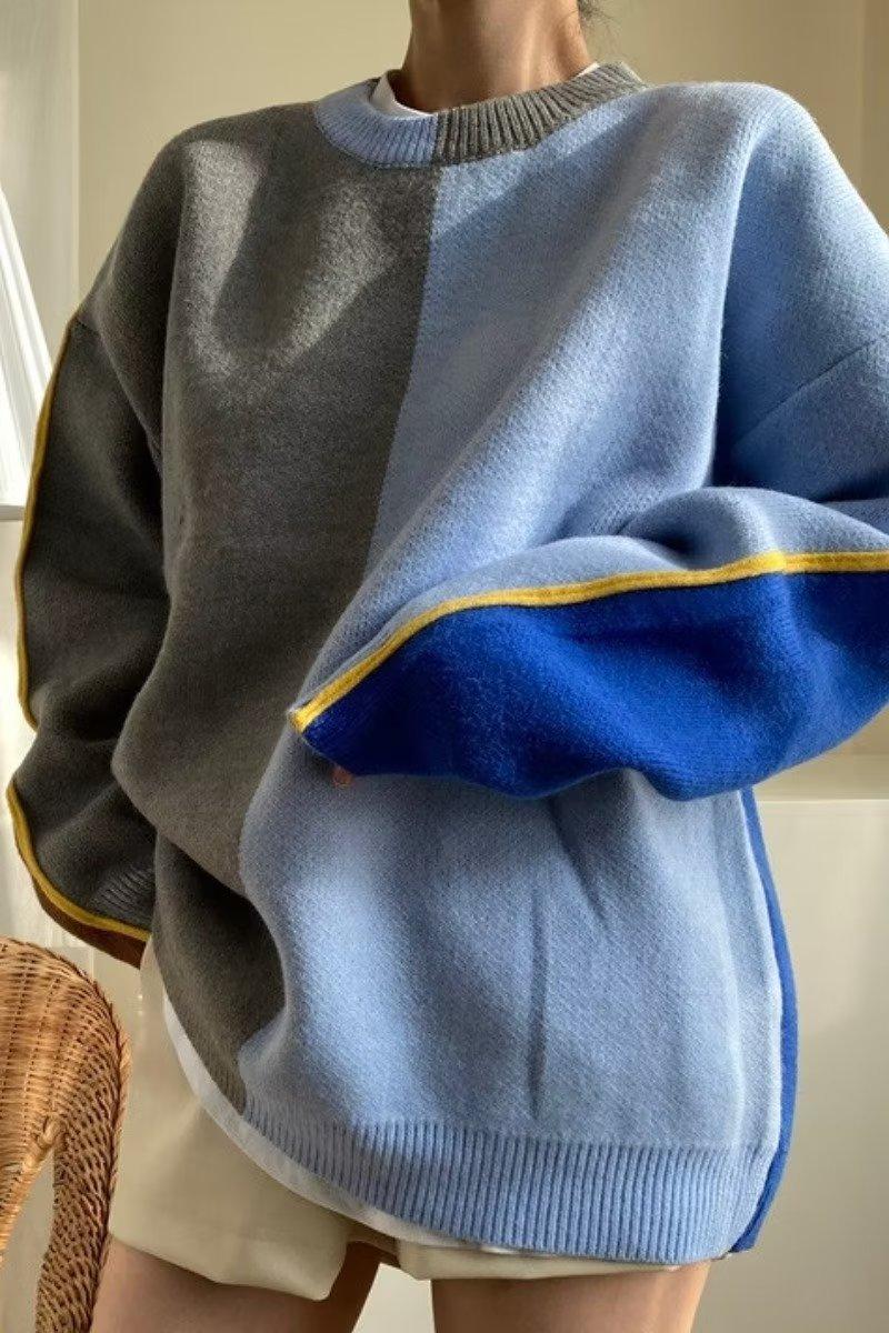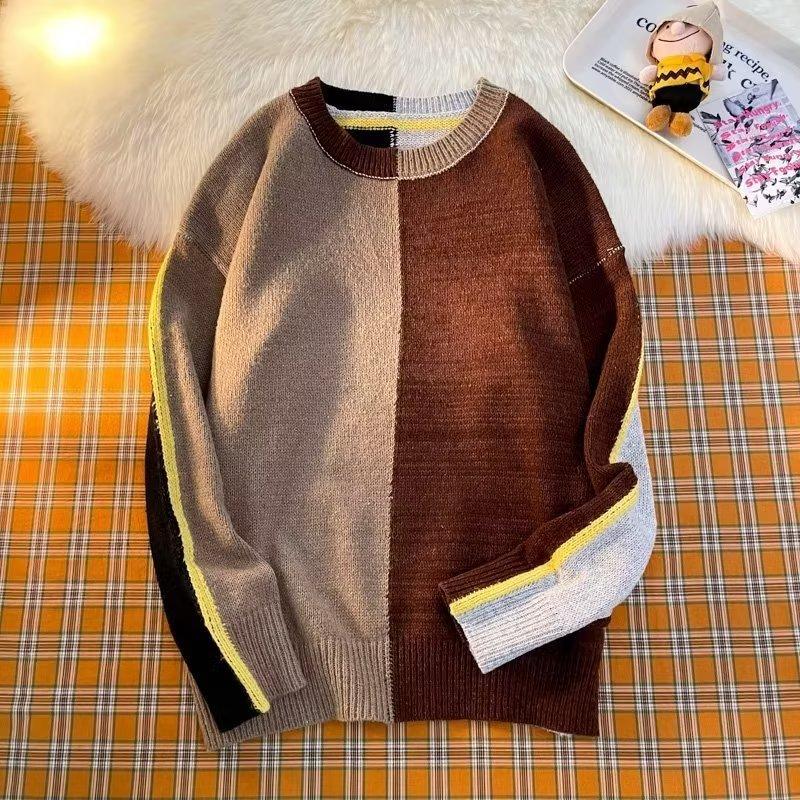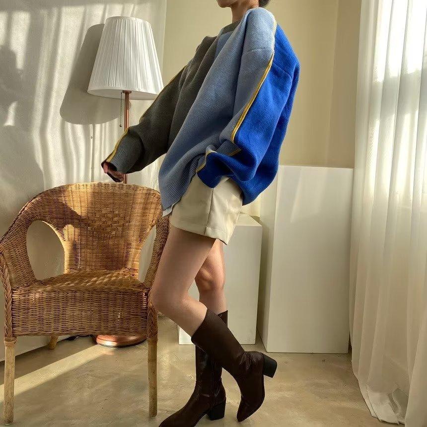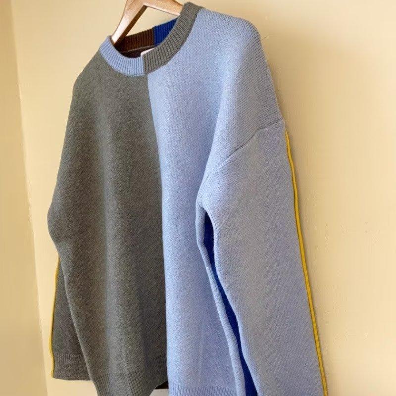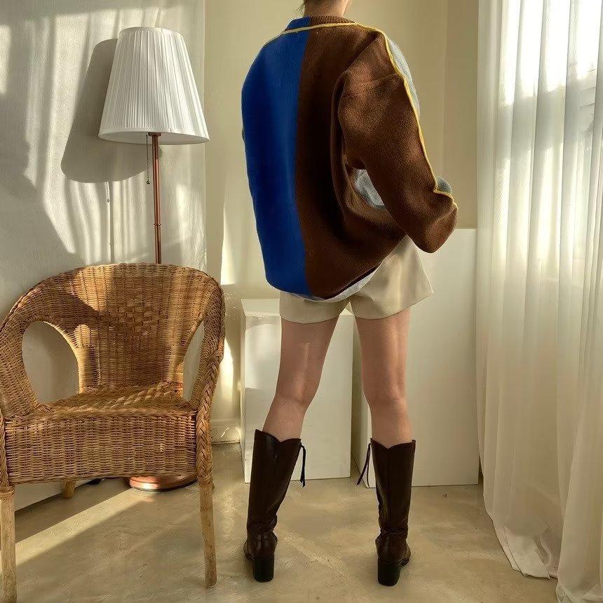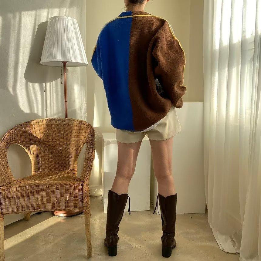 Suéter de otoño e invierno para mujer, nueva ropa de otoño 2023, con costuras de colores contrastantes, estilo holgado y perezoso, diseño de punto, nicho de sentido, abrigo