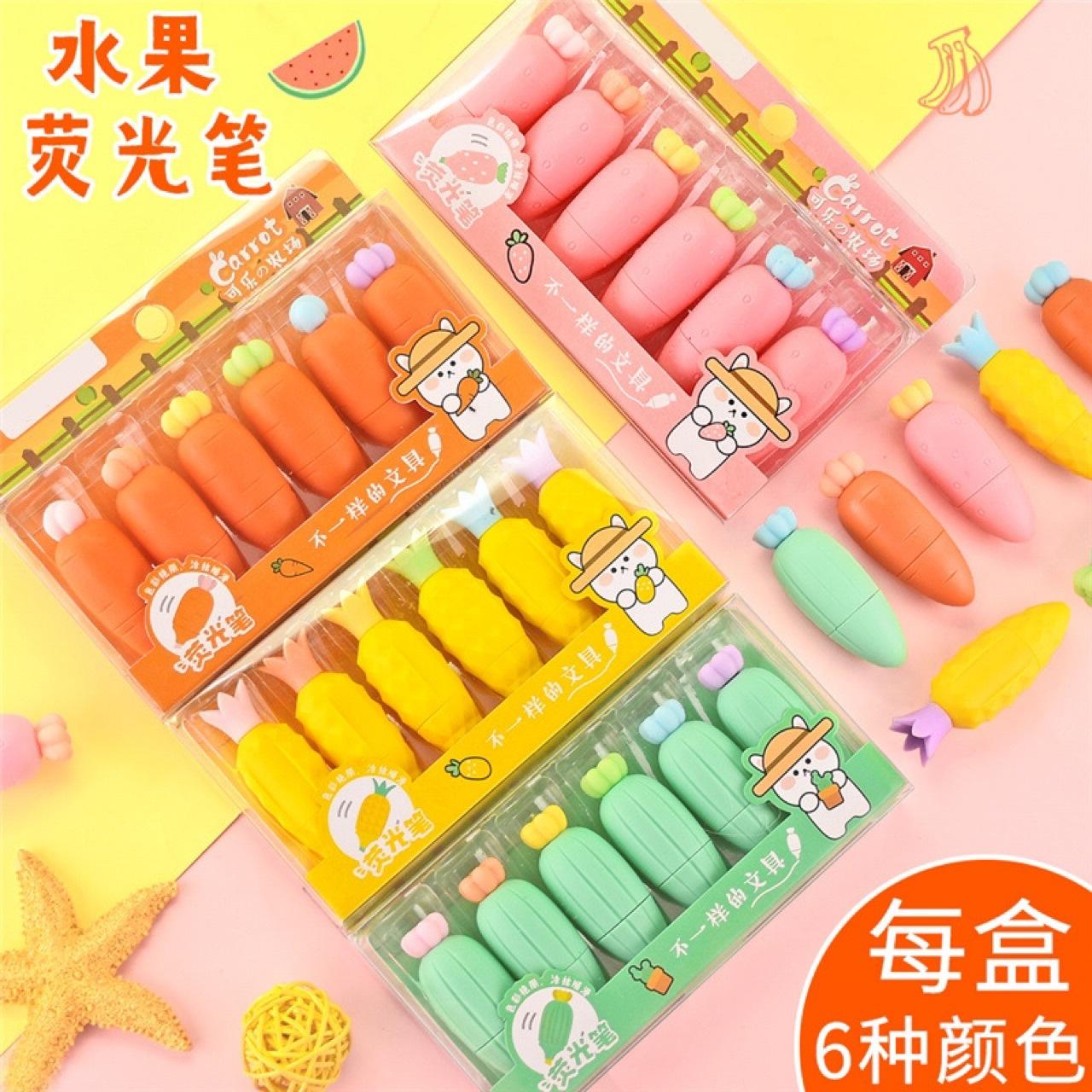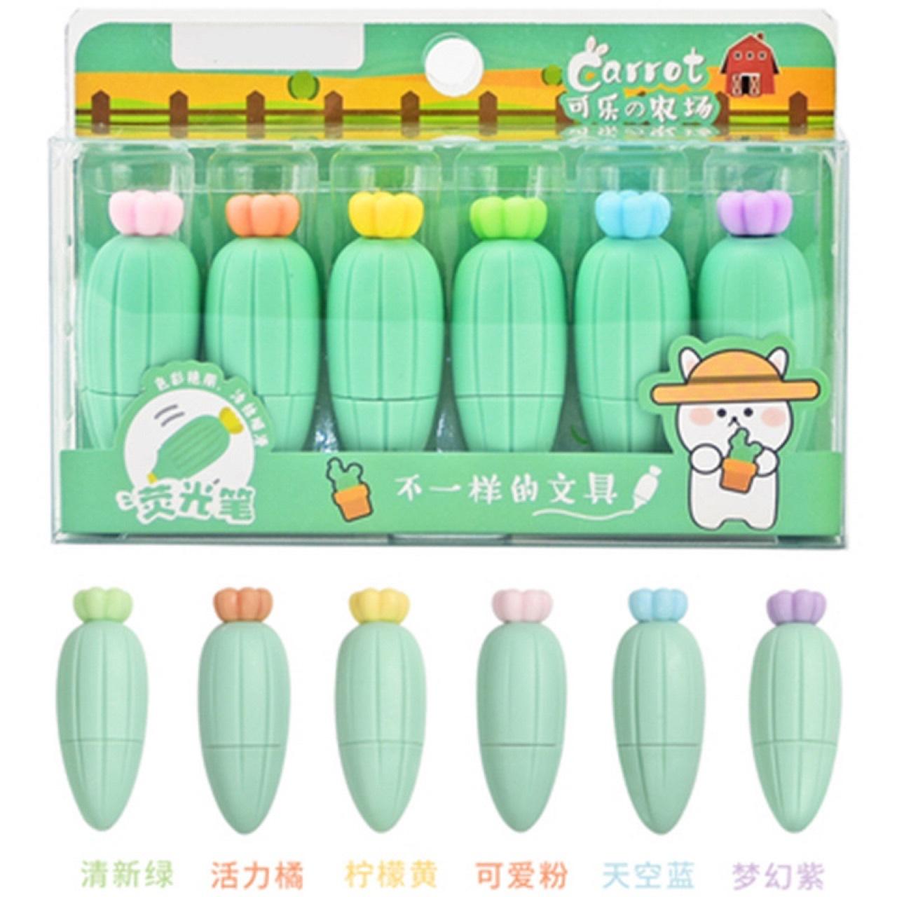 Marcador con forma de zanahoria, lindo y súper lindo, mini bolígrafo de color con dibujos animados, papelería para estudiantes.