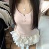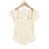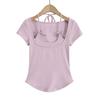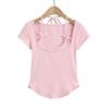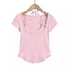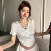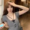 Camiseta de manga corta con lazo falso de verano 2024, de dos piezas, con cuello colgante y cordones, estilo Spice Girl, para mujer, corte ajustado, top corto curvo