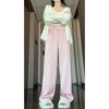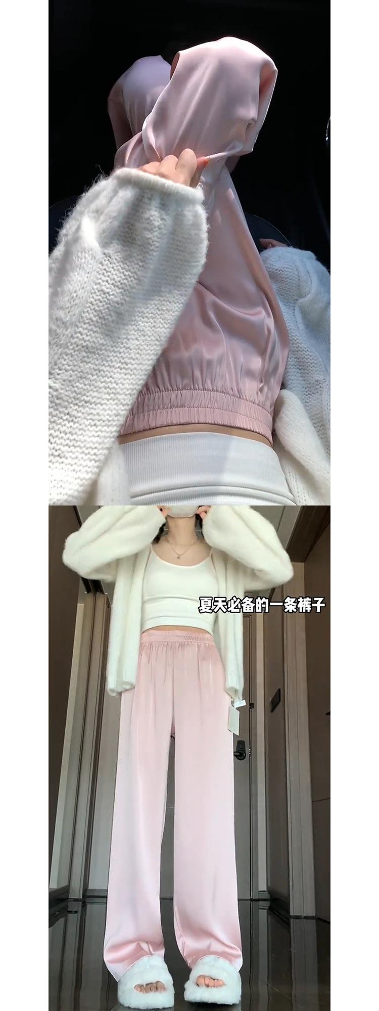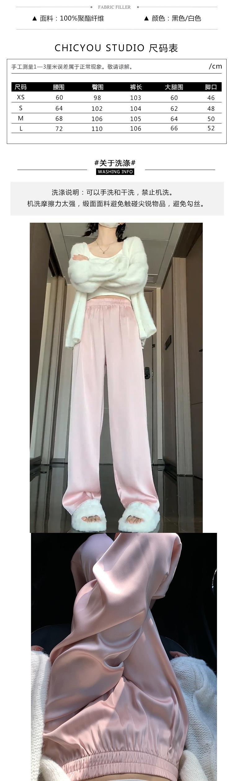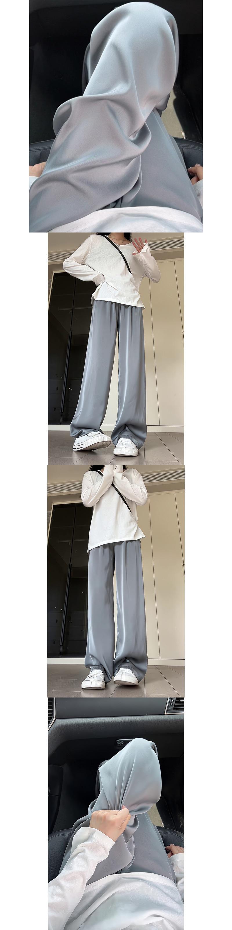 Verano 2023 tacto sedoso ácido acético no se arruga fácilmente cintura elástica pantalones de satén de pierna ancha casuales sueltos