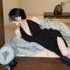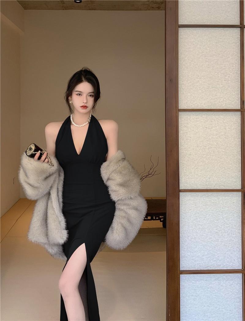 Vestido de Fiesta de Cumpleaños, Vestido Largo Único, Vestido Bodycon Sexy con Tirantes Halter y Abertura para Mujer, Elegante para el Verano