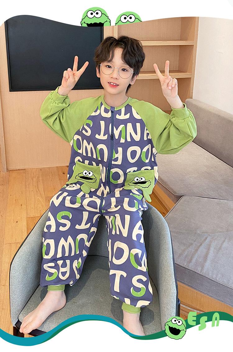 Pijama de una pieza para niños antifrío, pijama de algodón puro para niñas y niños, otoño e invierno 2024, nuevo saco de dormir para niños grandes