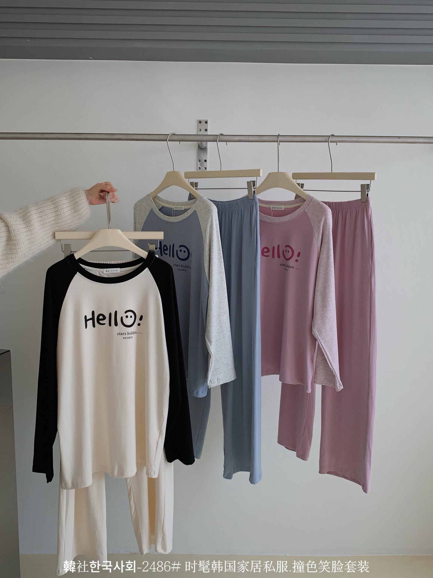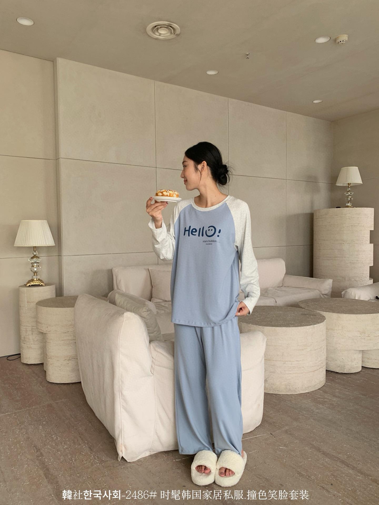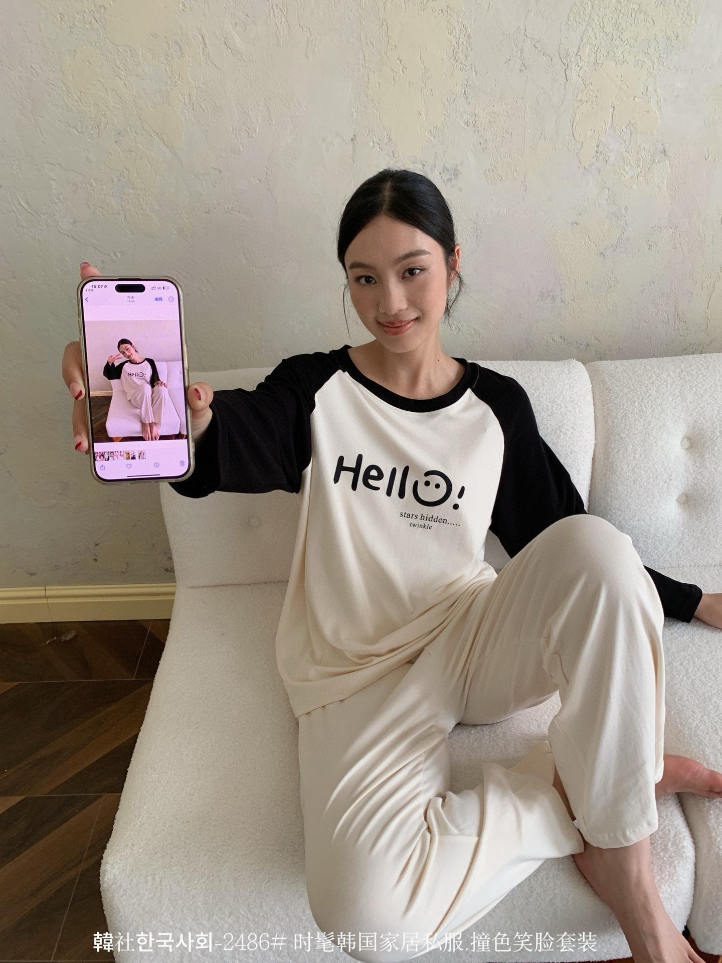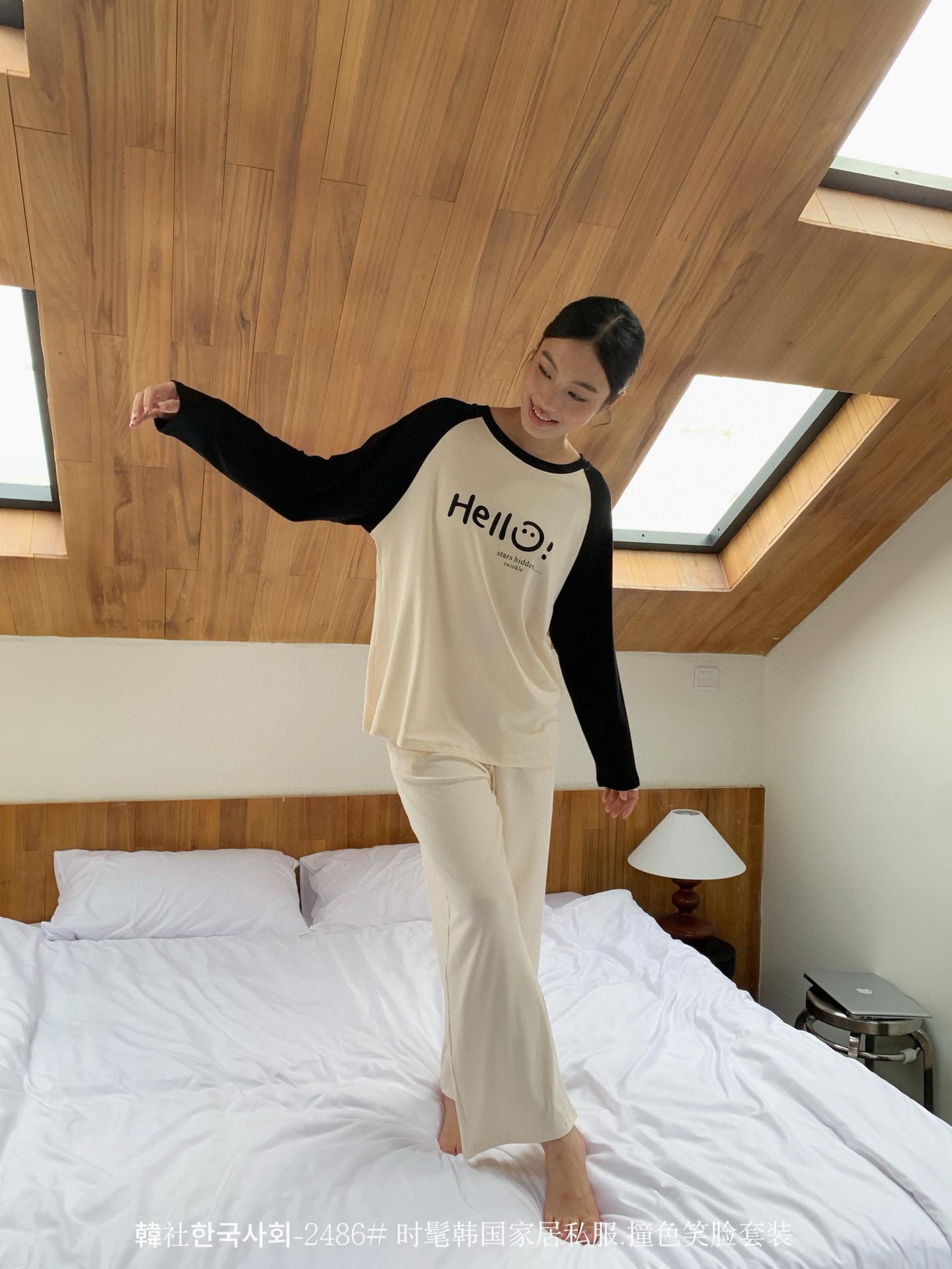 Agencia de Noticias Coreana 2486# Traje de Casa de Moda Corea del Sur Traje de Contraste Cara Sonriente Pijamas Se Puede Usar Nuevo Traje de Casa Mujer