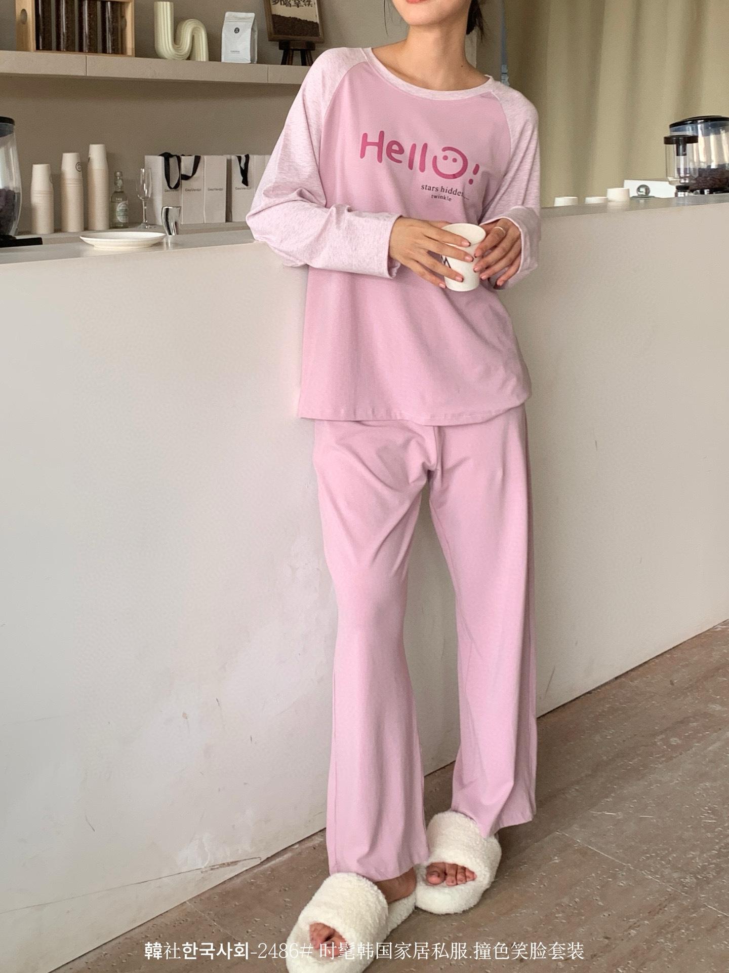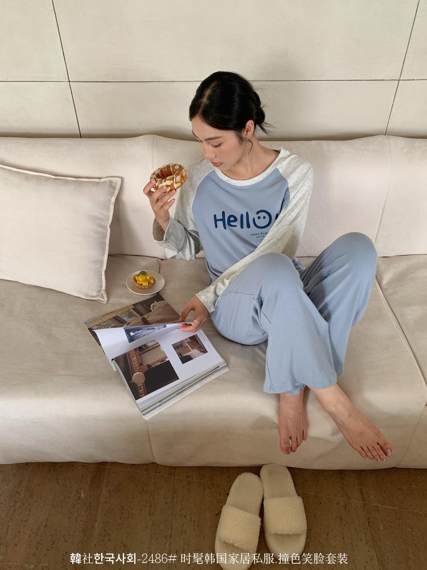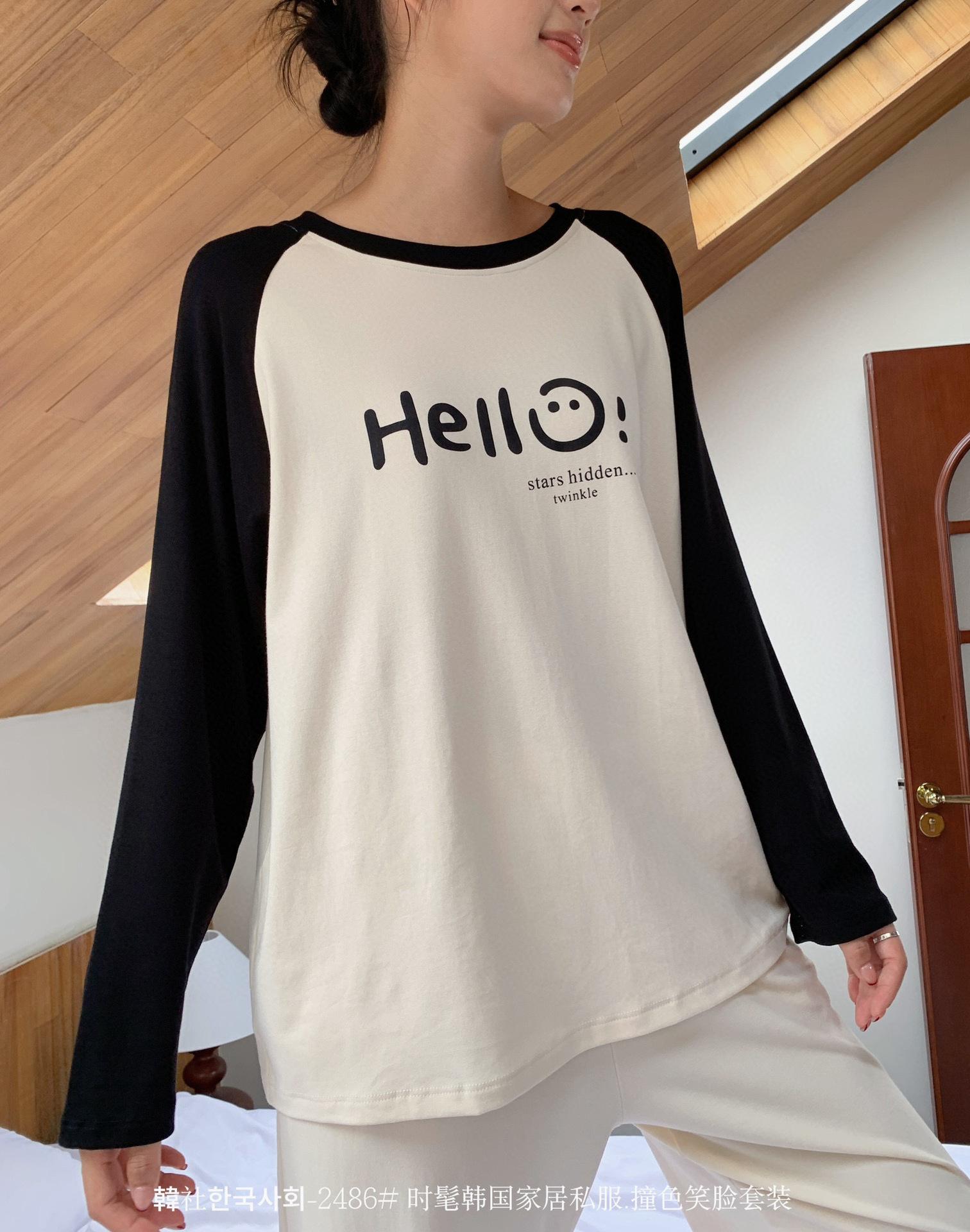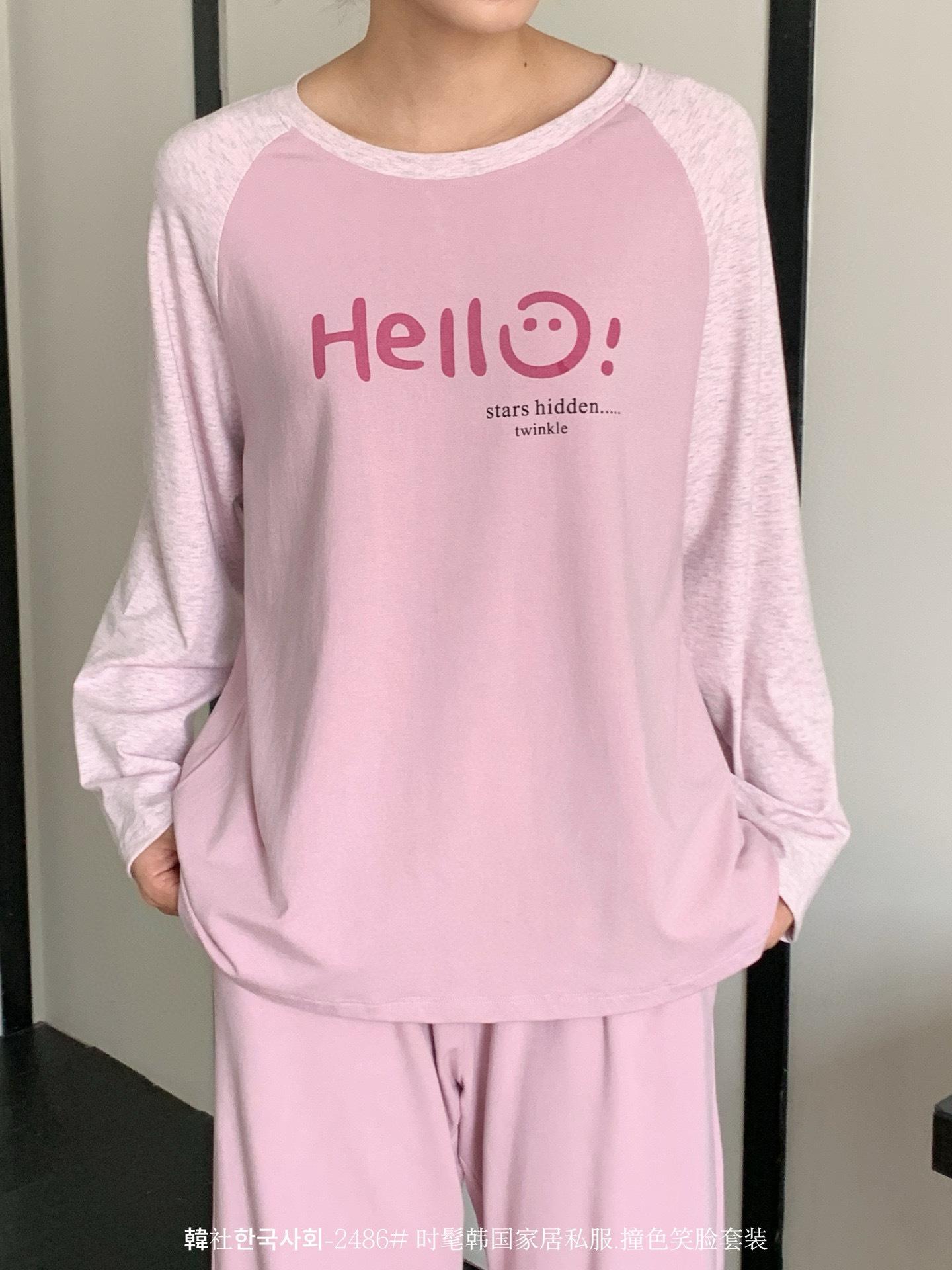 Agencia de Noticias Coreana 2486# Traje de Casa de Moda Corea del Sur Traje de Contraste Cara Sonriente Pijamas Se Puede Usar Nuevo Traje de Casa Mujer