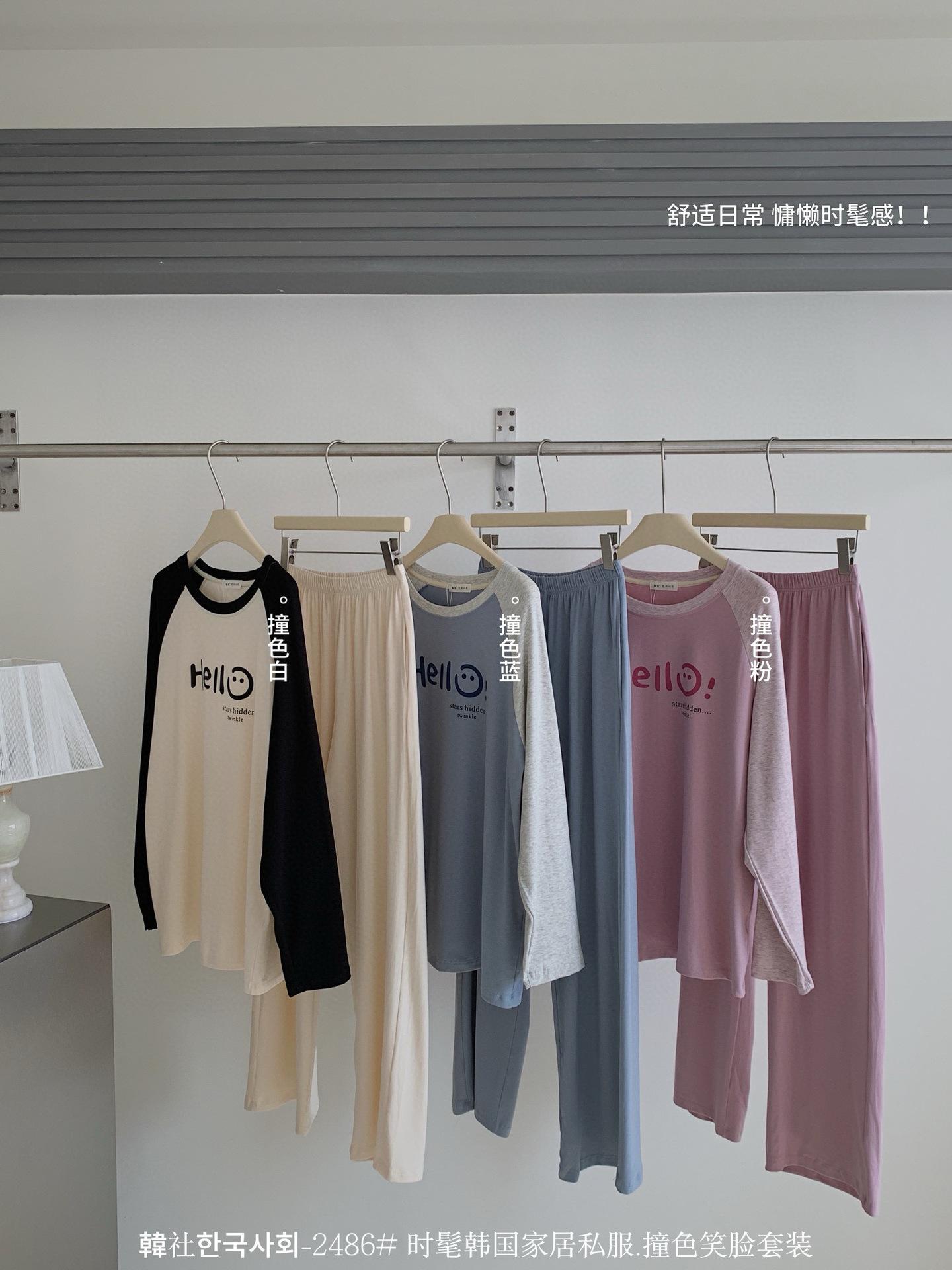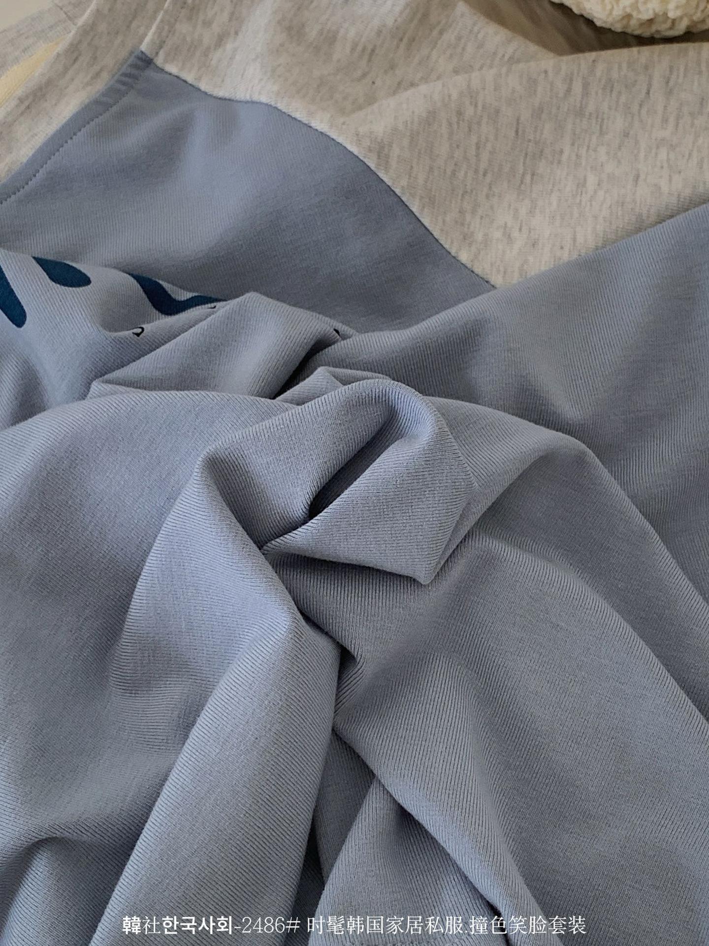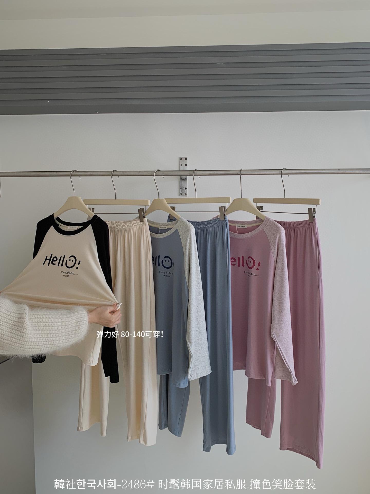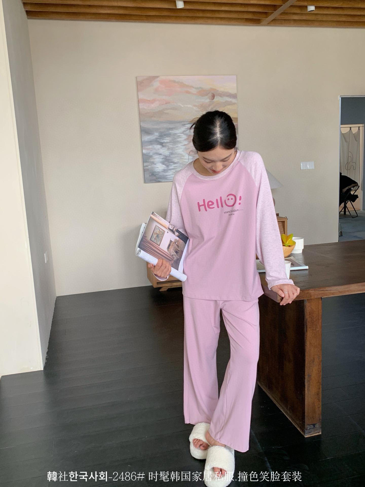 Agencia de Noticias Coreana 2486# Traje de Casa de Moda Corea del Sur Traje de Contraste Cara Sonriente Pijamas Se Puede Usar Nuevo Traje de Casa Mujer
