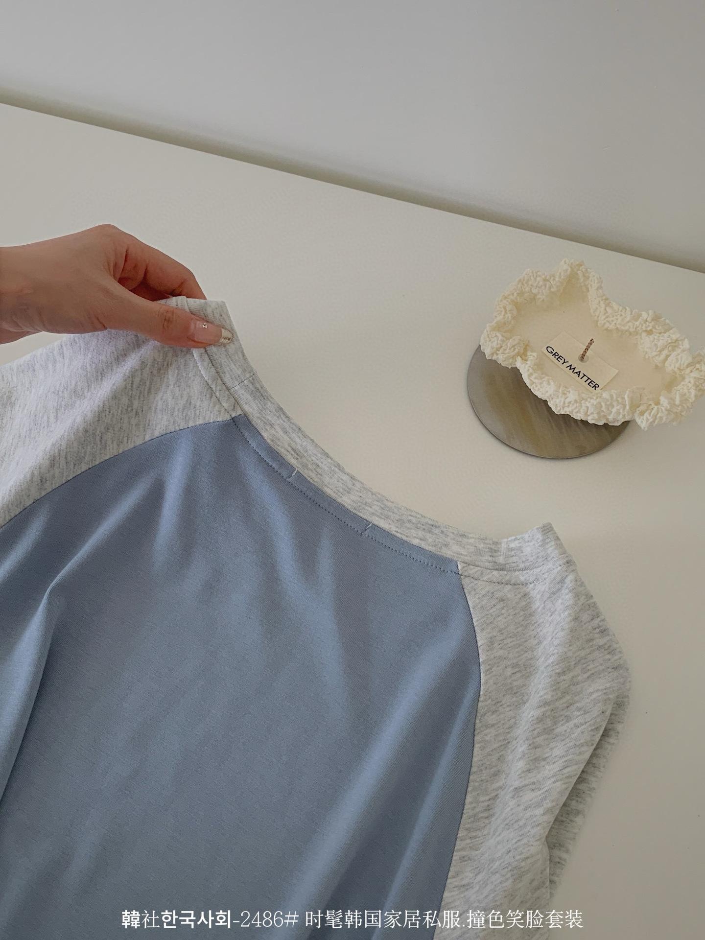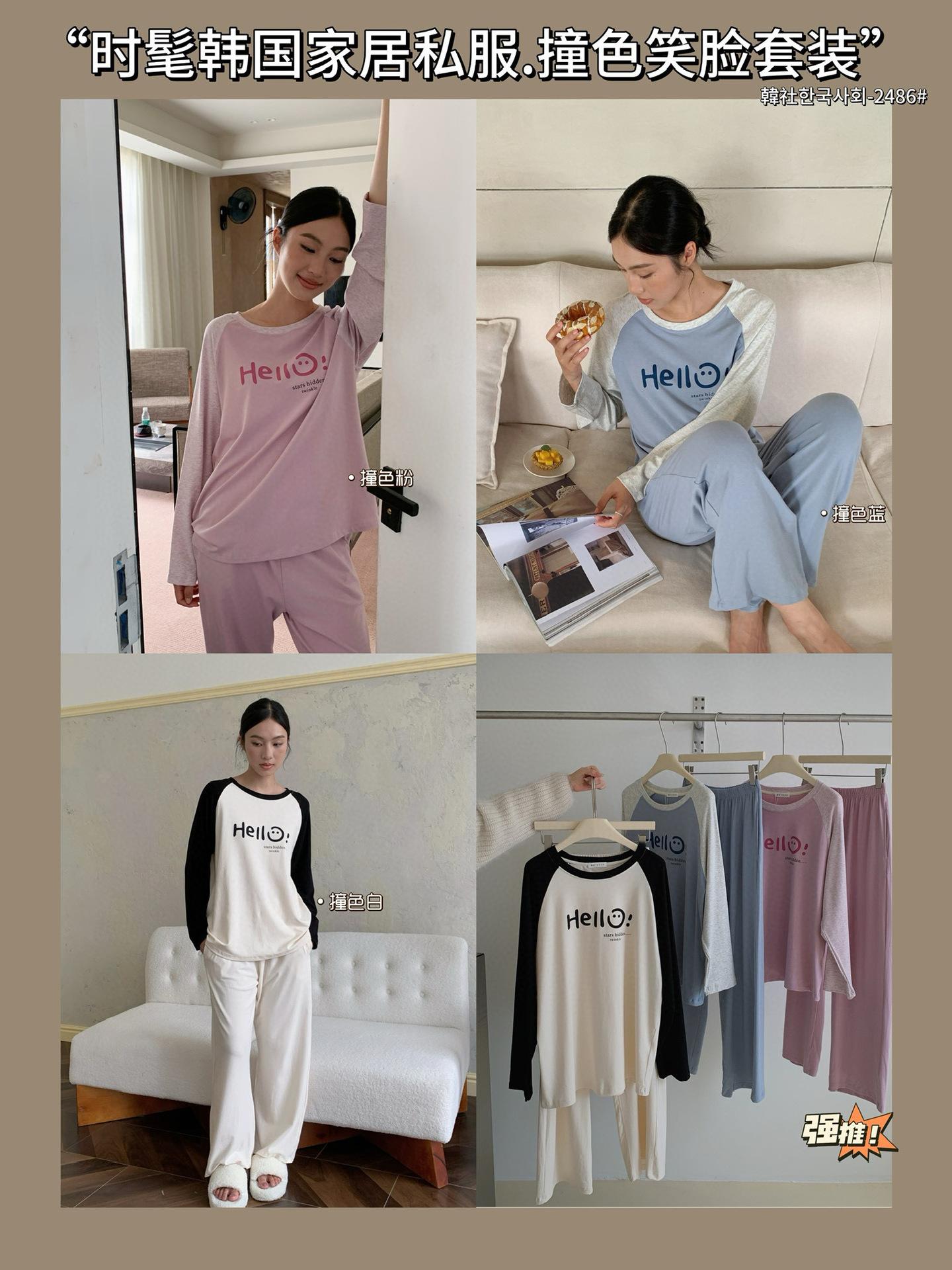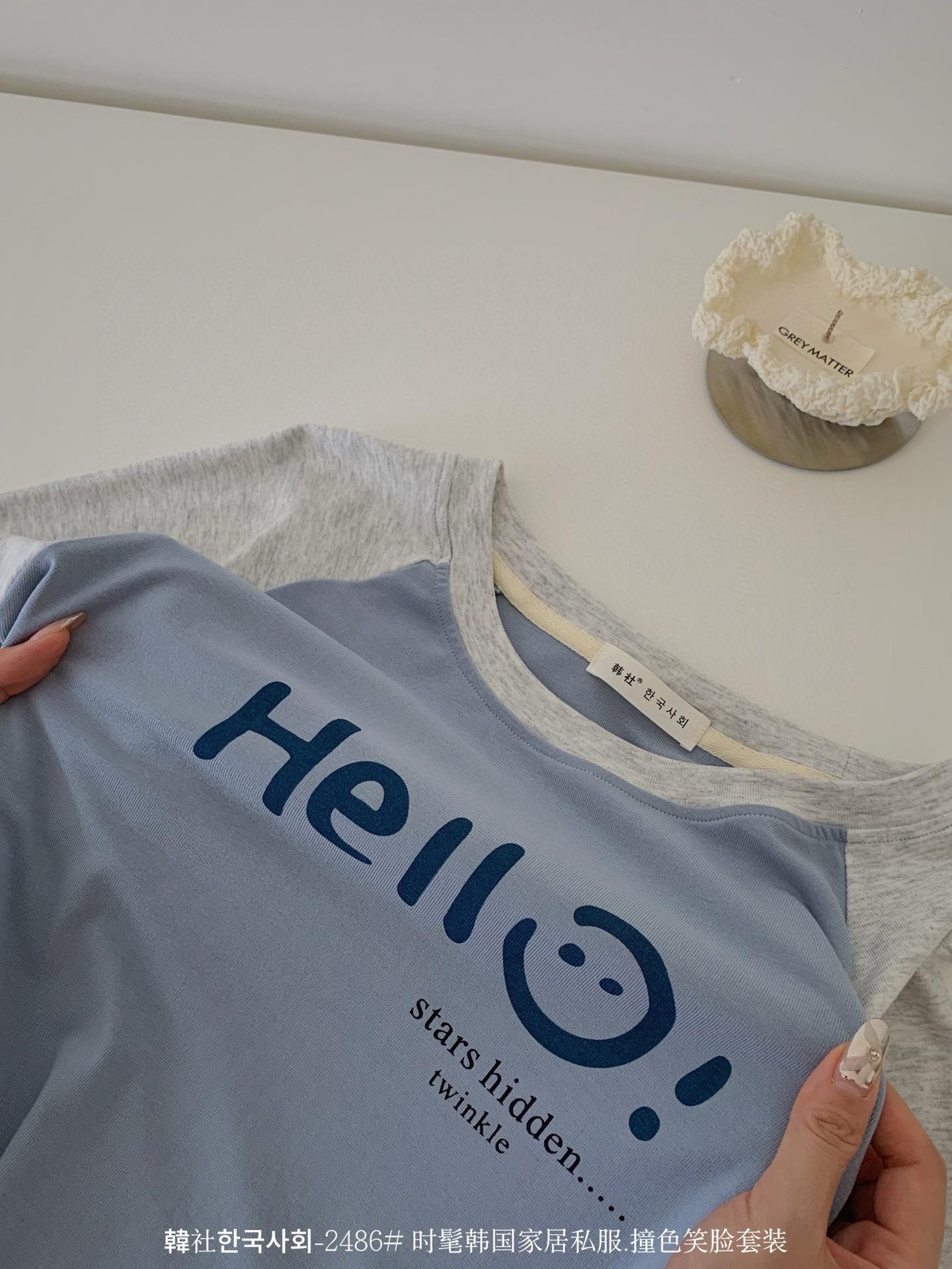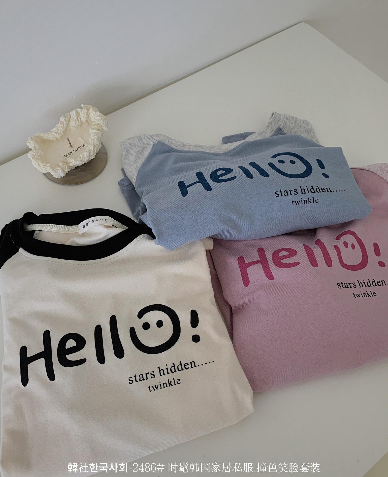 Agencia de Noticias Coreana 2486# Traje de Casa de Moda Corea del Sur Traje de Contraste Cara Sonriente Pijamas Se Puede Usar Nuevo Traje de Casa Mujer