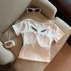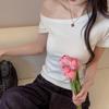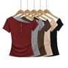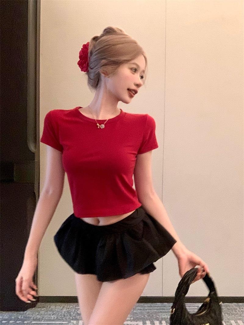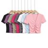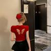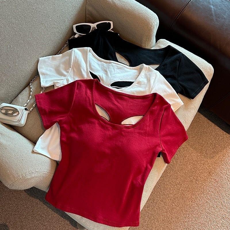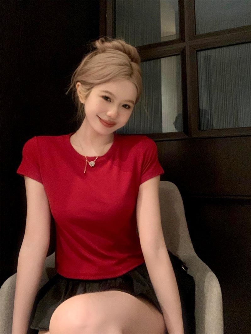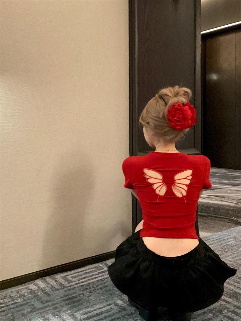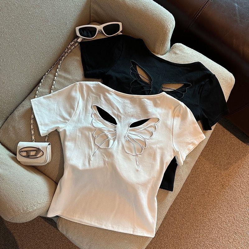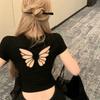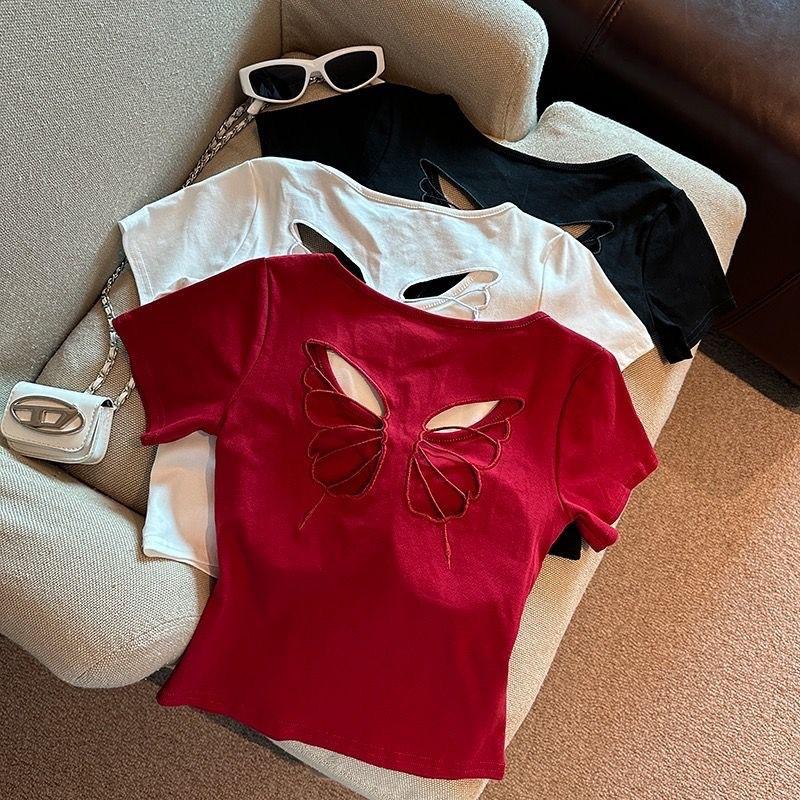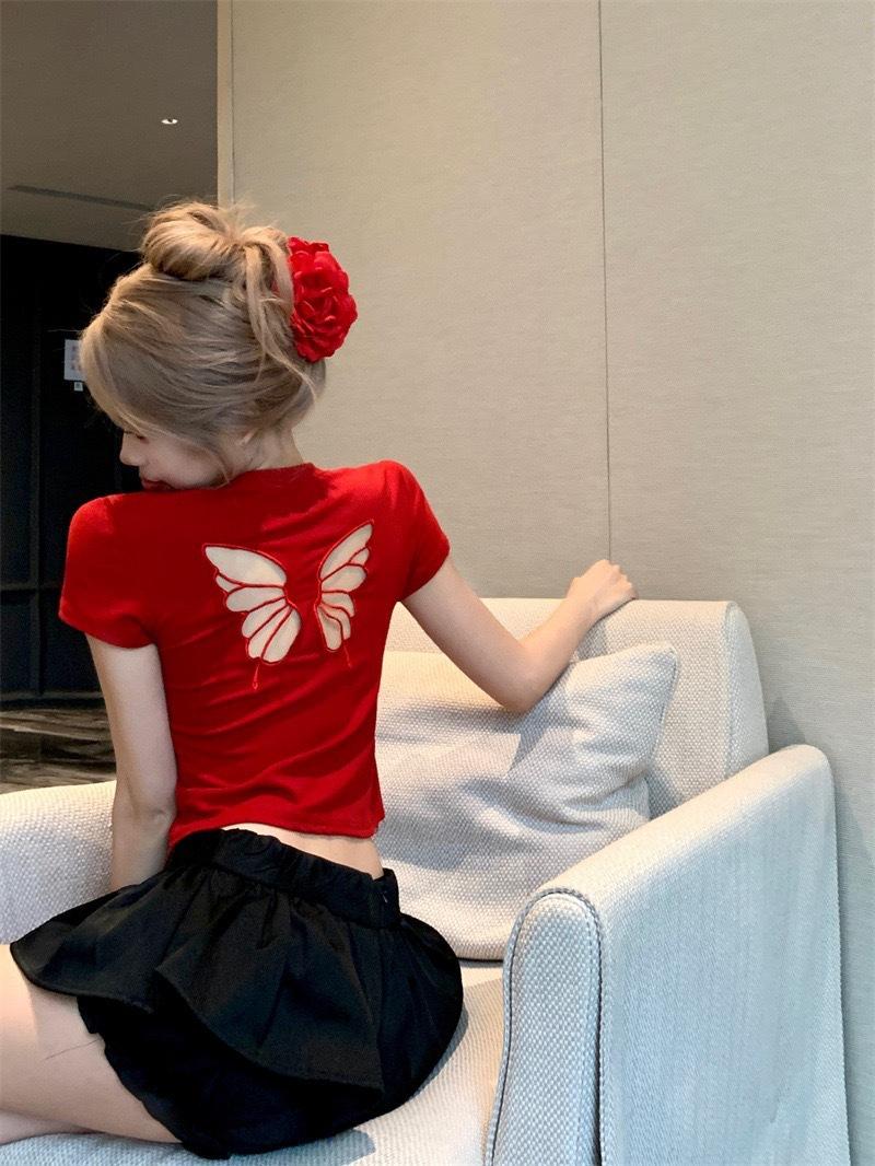 Camiseta de manga corta con cuello redondo, bordada con mariposas y diseño sexy de Spice Girl para mujer, corte ajustado y estilo veraniego.