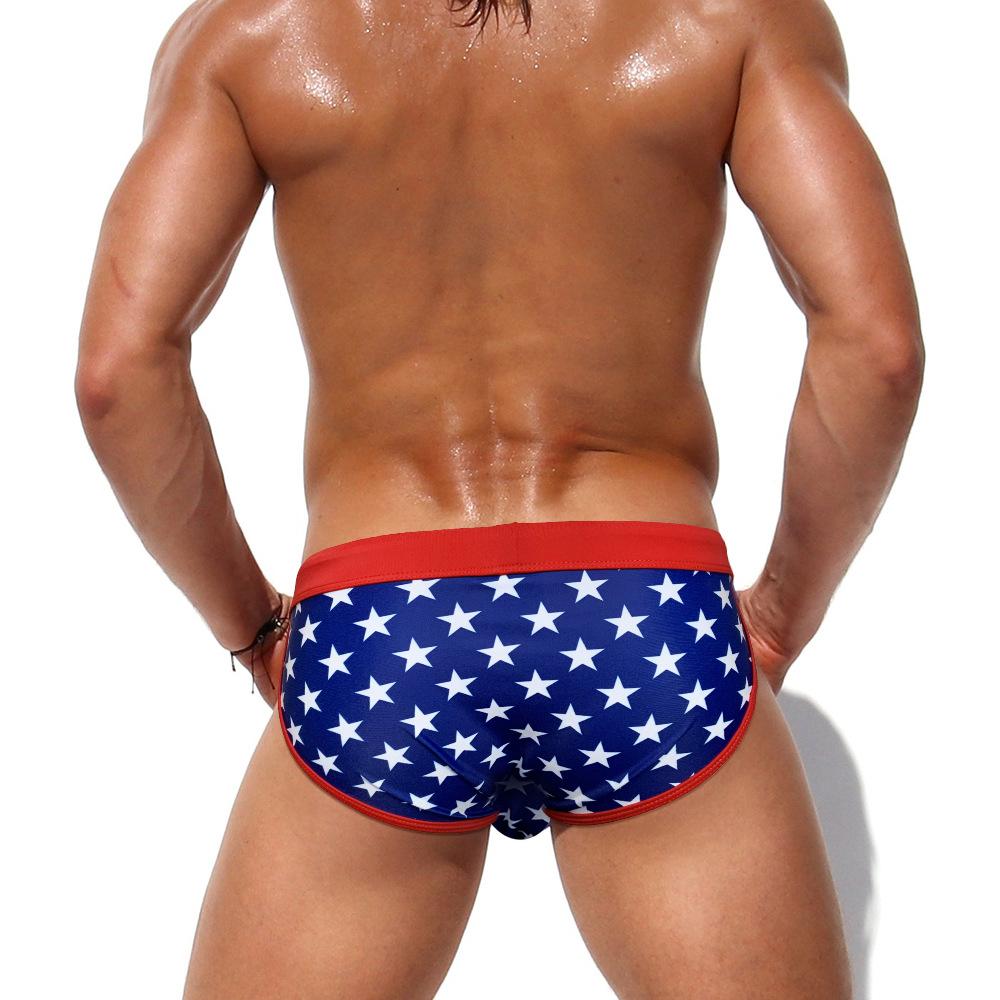 JESSBORN traje de baño de tiro alto para hombre, calzoncillos sexys de moda estrella, ocio, playa, aguas termales, bikini, marea