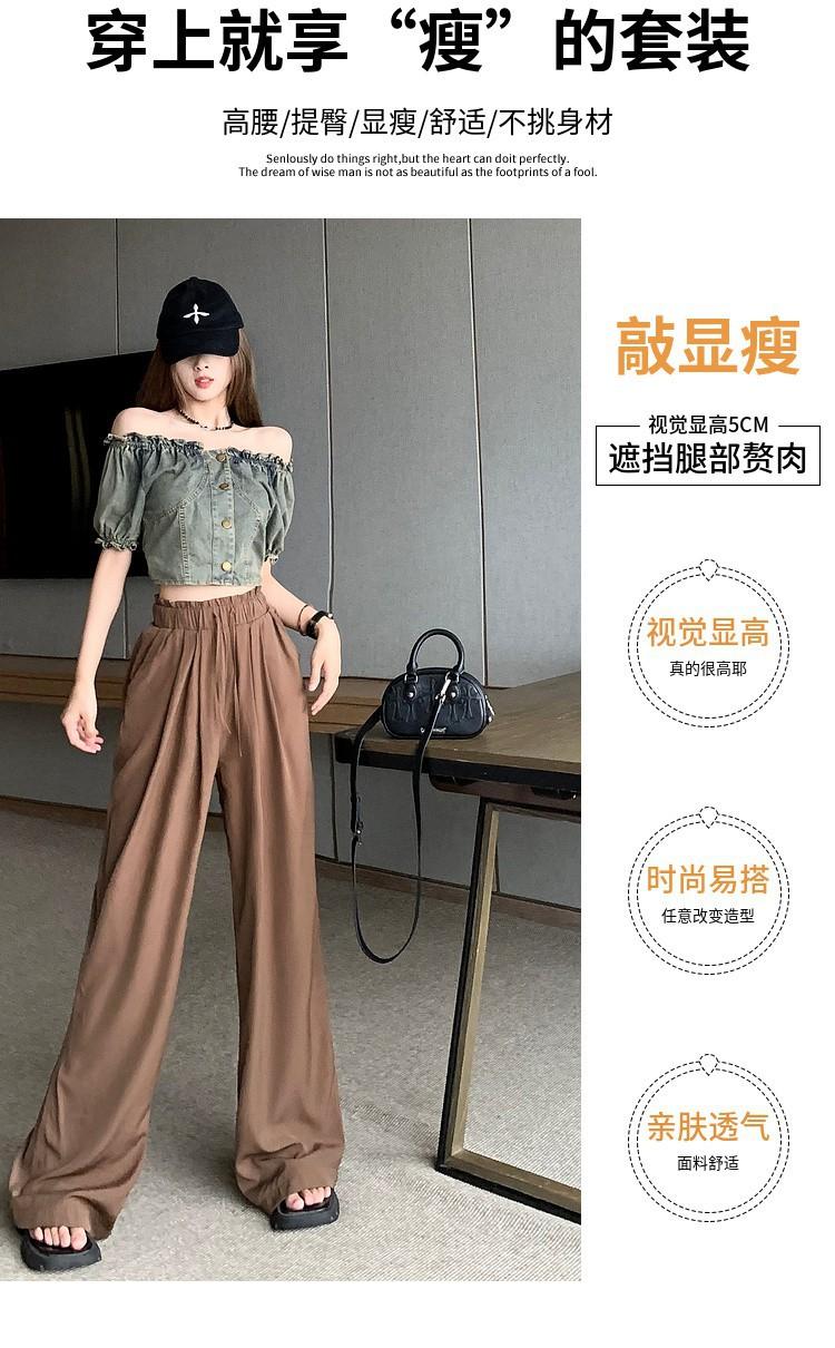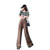 Conjunto de camisa vaquera retro francesa con hombros cortos y pantalones casuales adelgazantes de cintura alta con efecto entallado