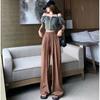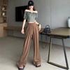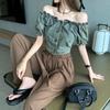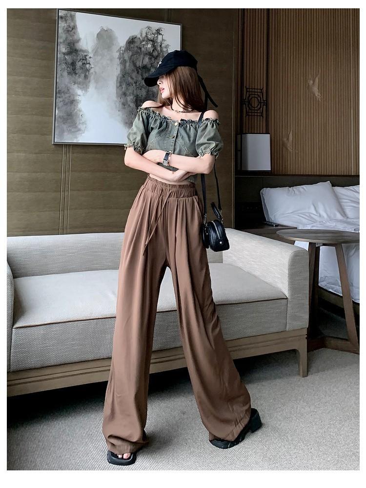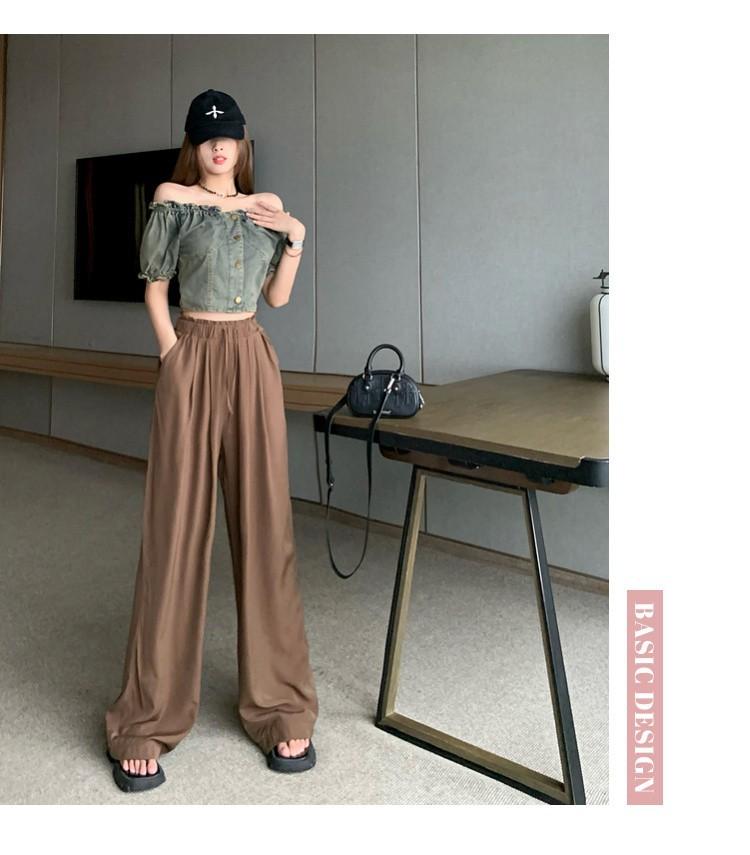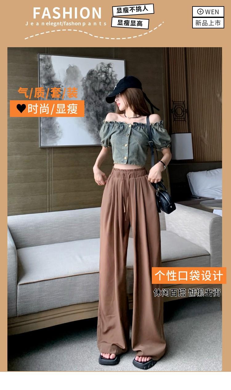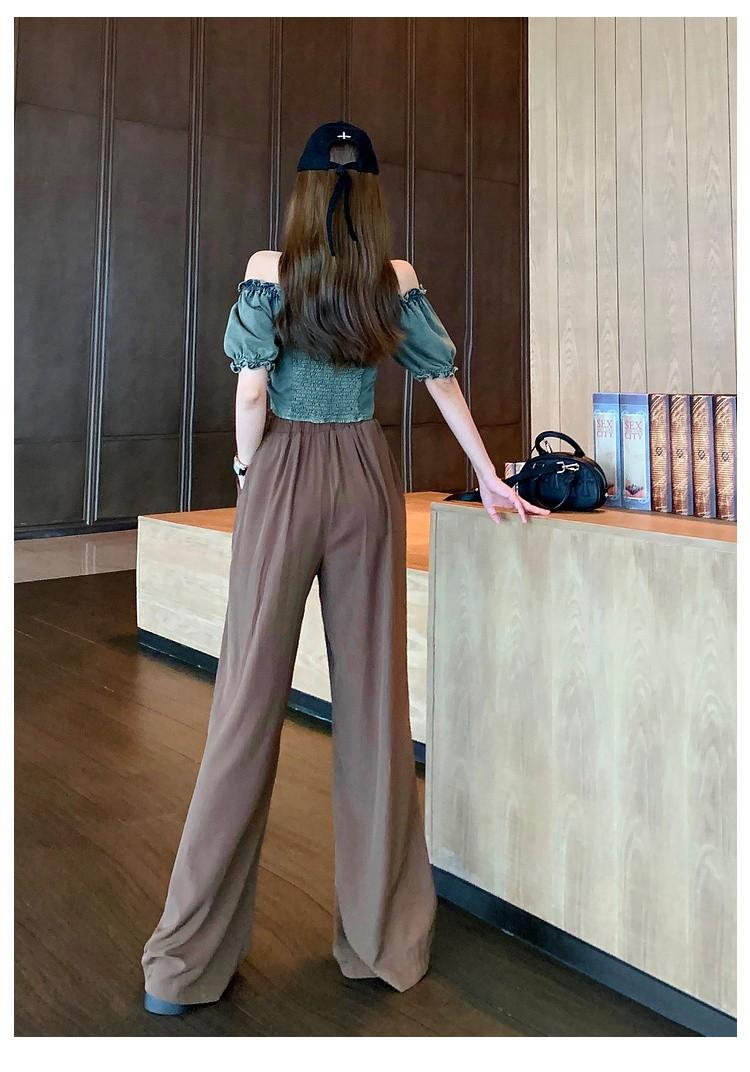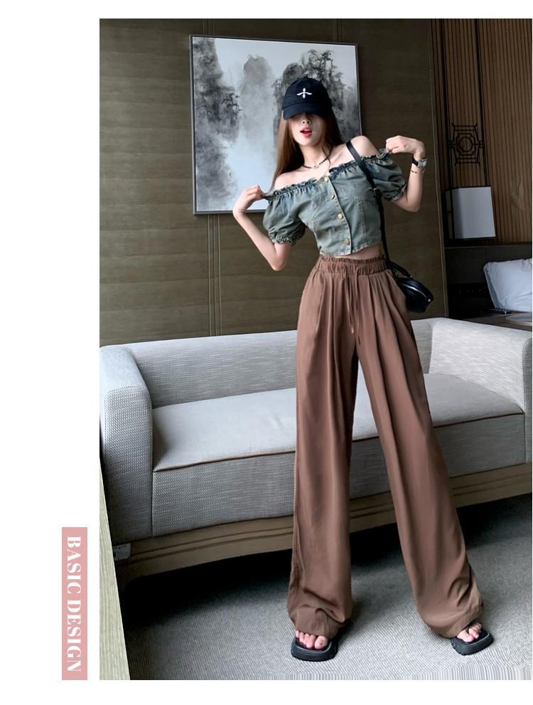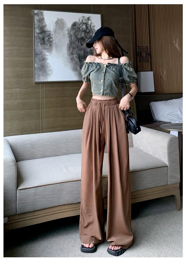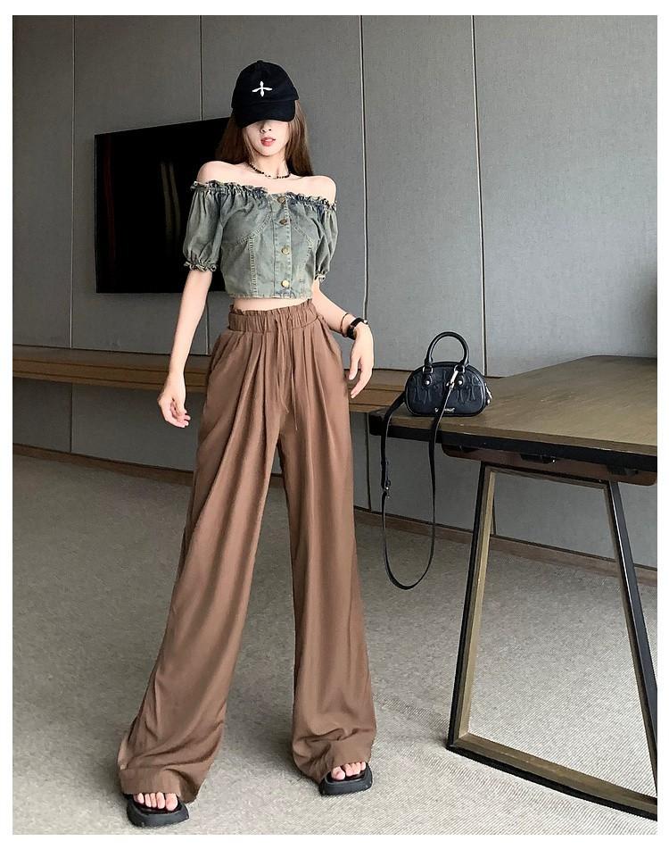 Retro Denim Shoulder Top, Curry Casual Pants, Vintage Shoulder Suit