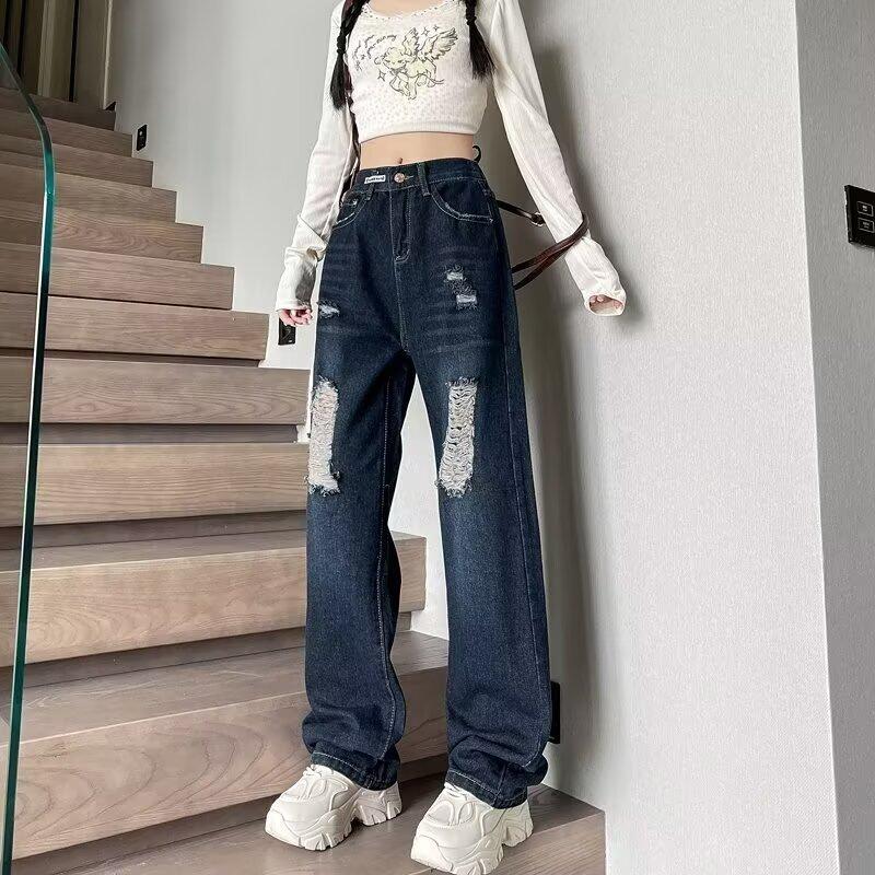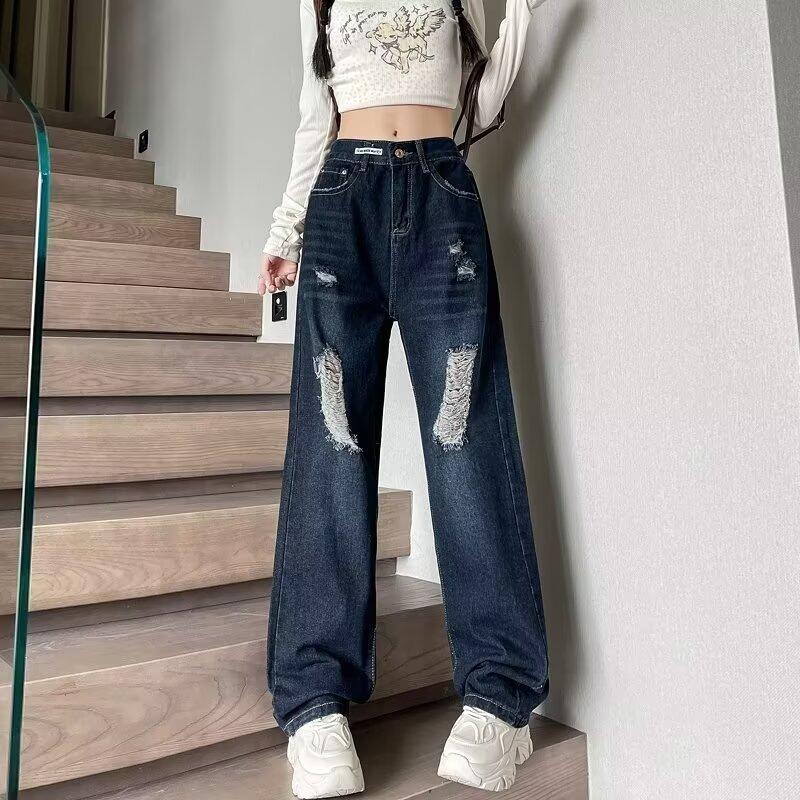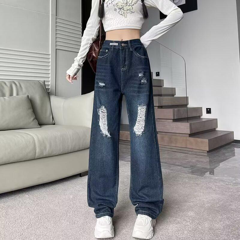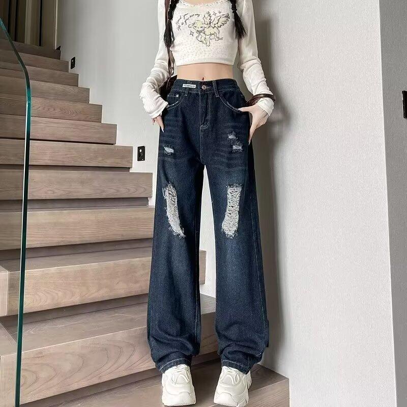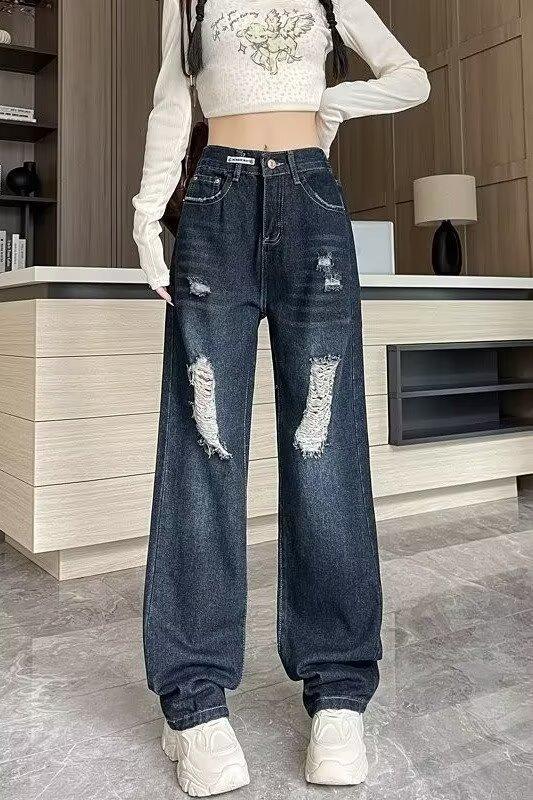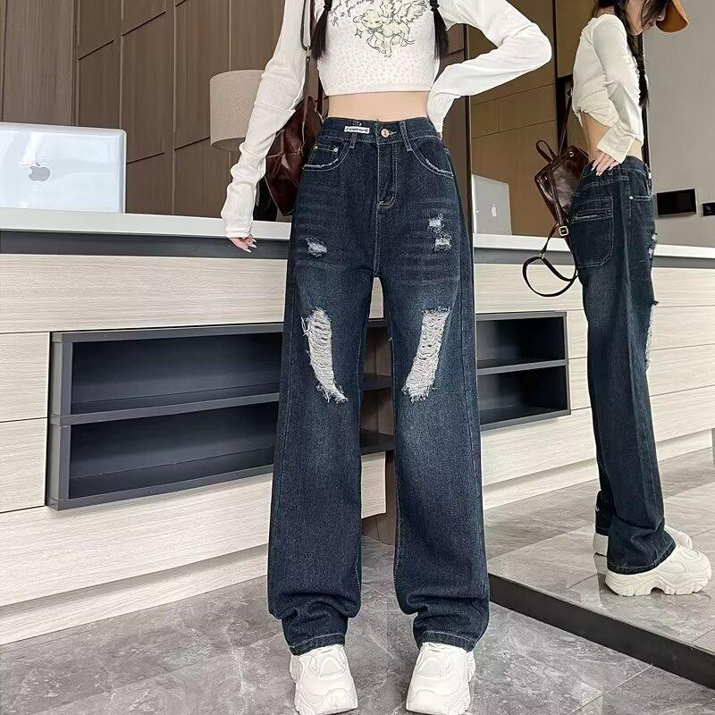 Jeans Vintage de Pierna Ancha Rotos para Mujer Otoño e Invierno 2024 Nuevo talla grande chica gordita Sueltos Slim Rectos
