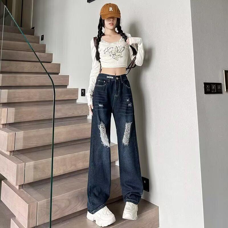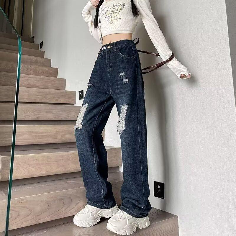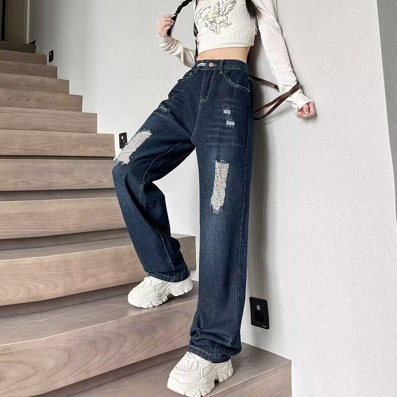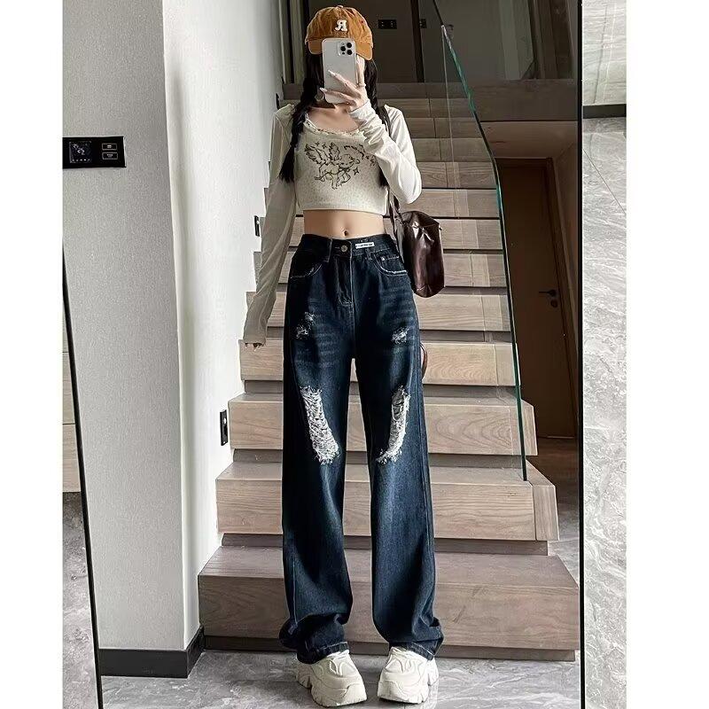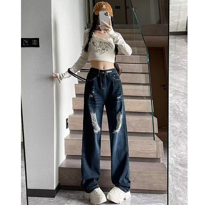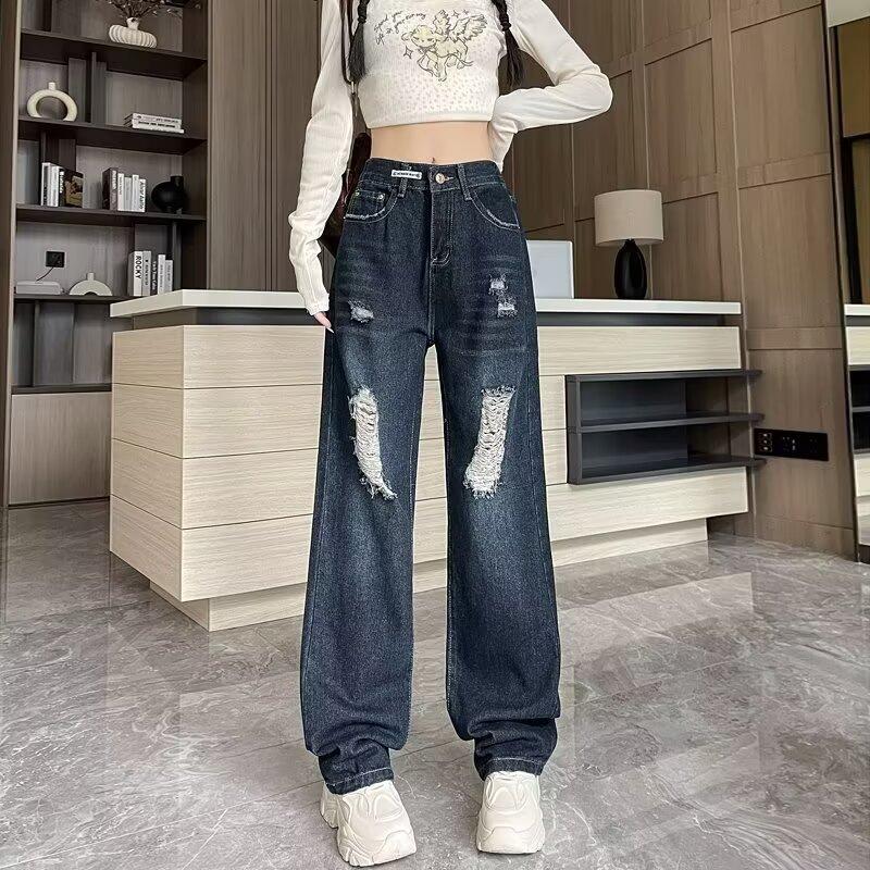 Jeans Vintage de Pierna Ancha Rotos para Mujer Otoño e Invierno 2024 Nuevo talla grande chica gordita Sueltos Slim Rectos