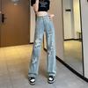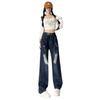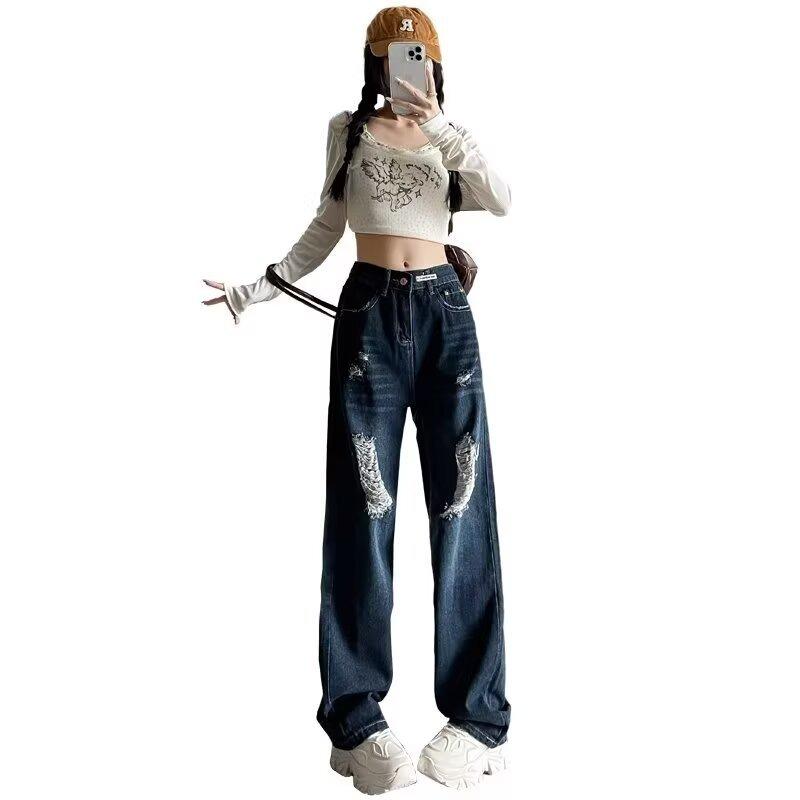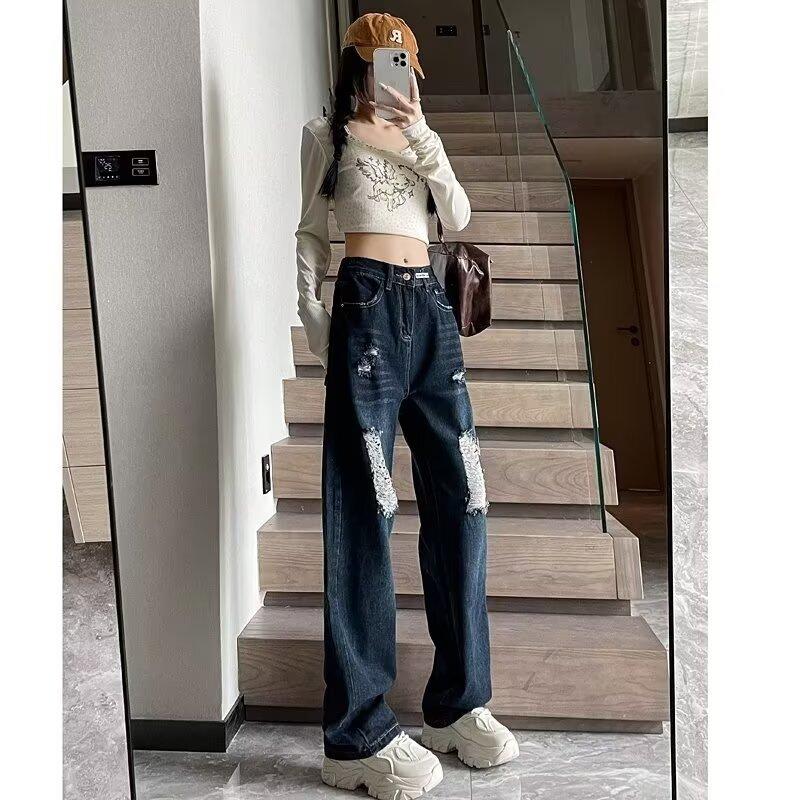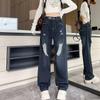 Jeans de diseñador de talla grande lavados rasgados de pierna ancha para mujer otoño ligeramente gorda chica caliente americana callejera pantalones rectos sueltos