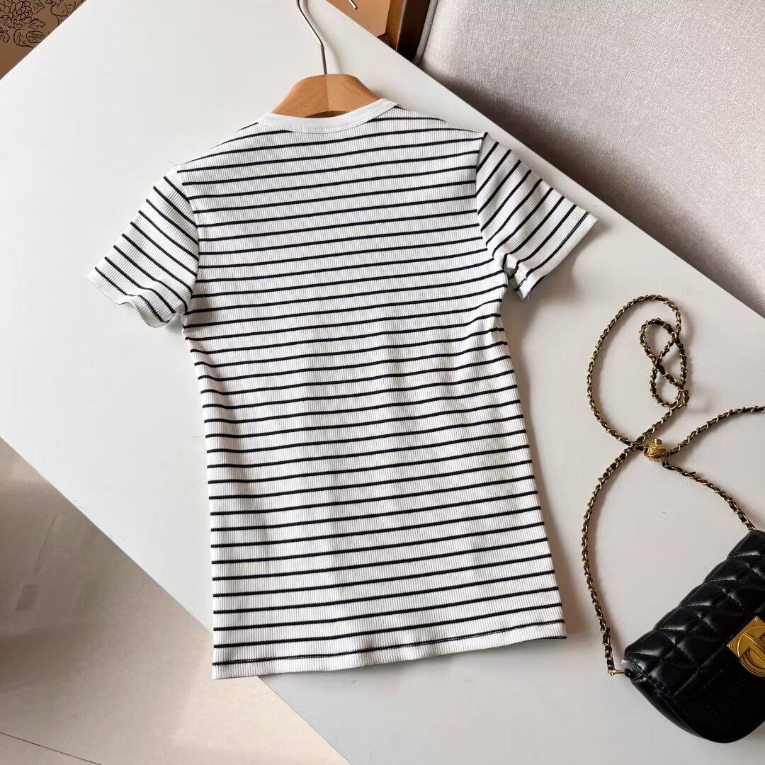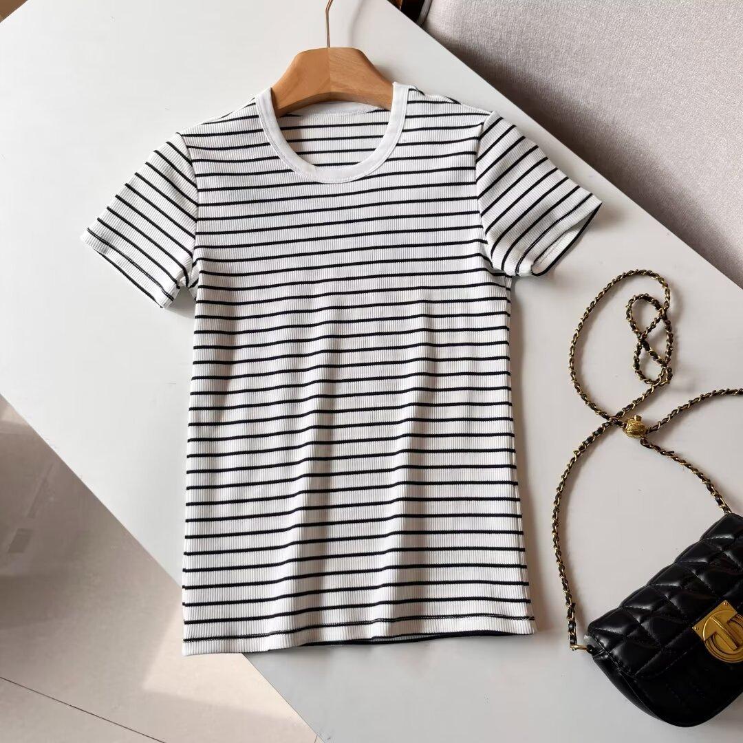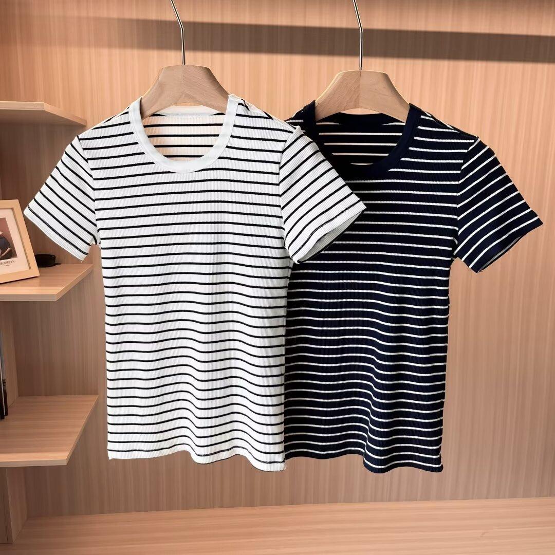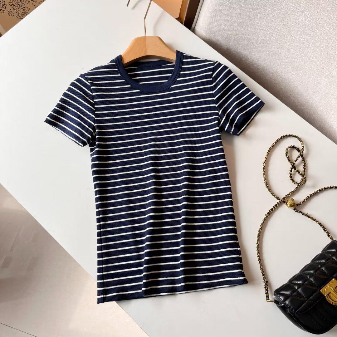 Camiseta japonesa de manga larga con cuello redondo de canalé suave, nueva de primavera 2024, base a rayas 467363