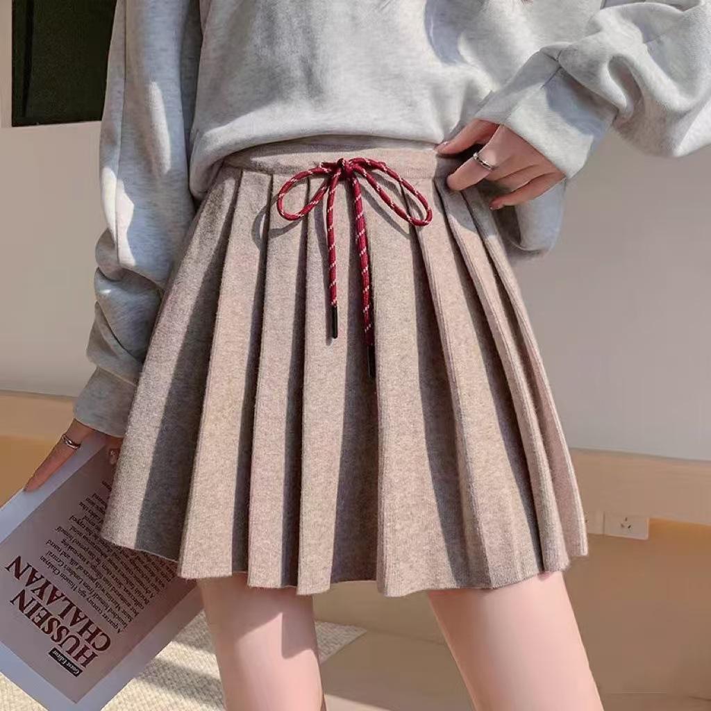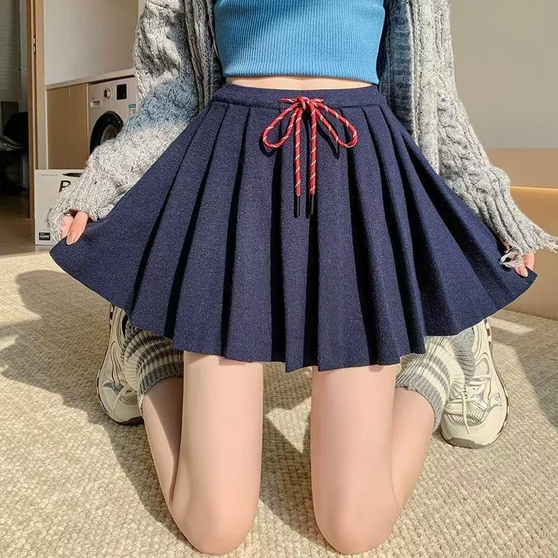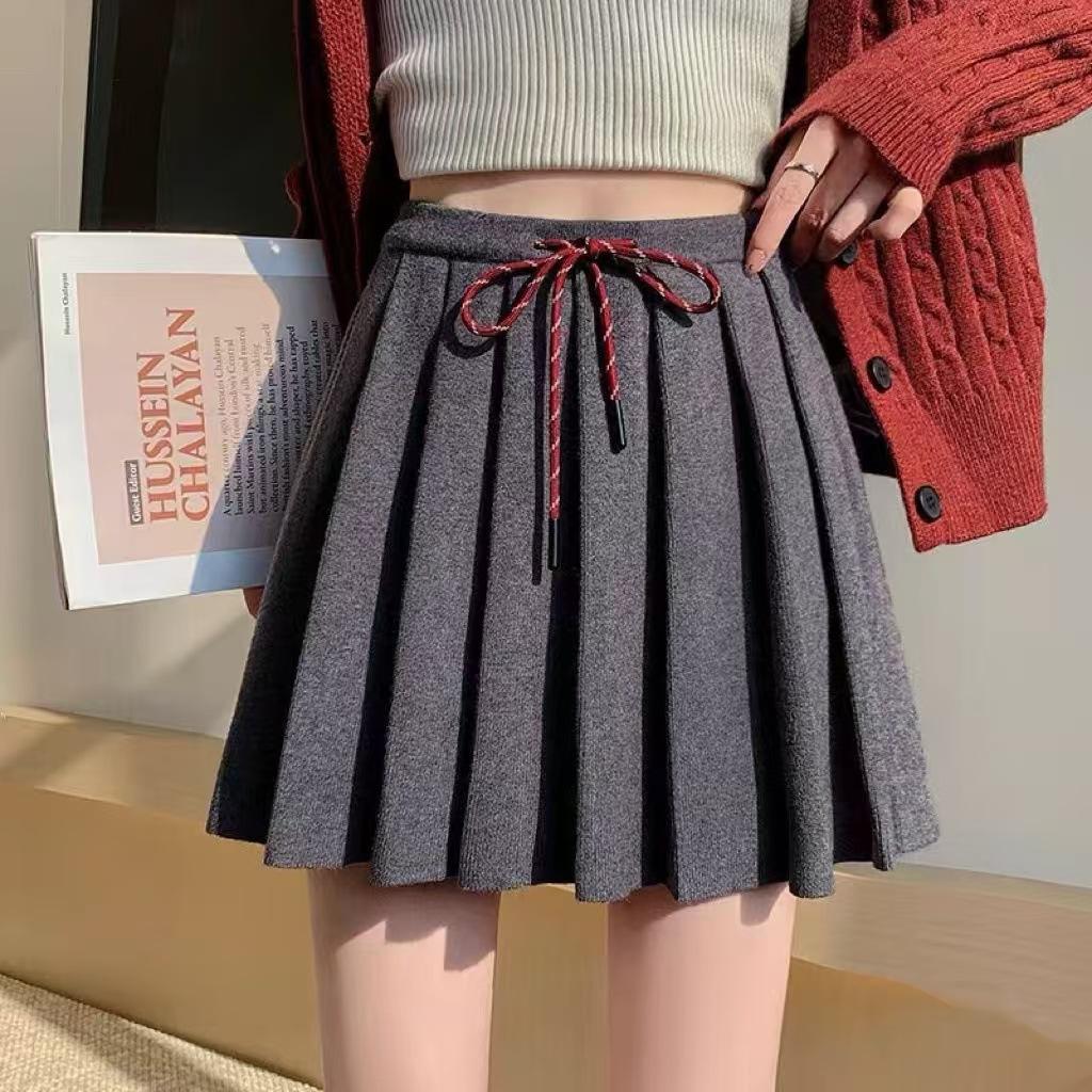 Falda Plisada con Cordón para Mujer Otoño e Invierno Nueva Falda Línea A de Cintura Alta Estilo Preppy Falda Plisada de Punto Falda Dulce y Picante para Mujer